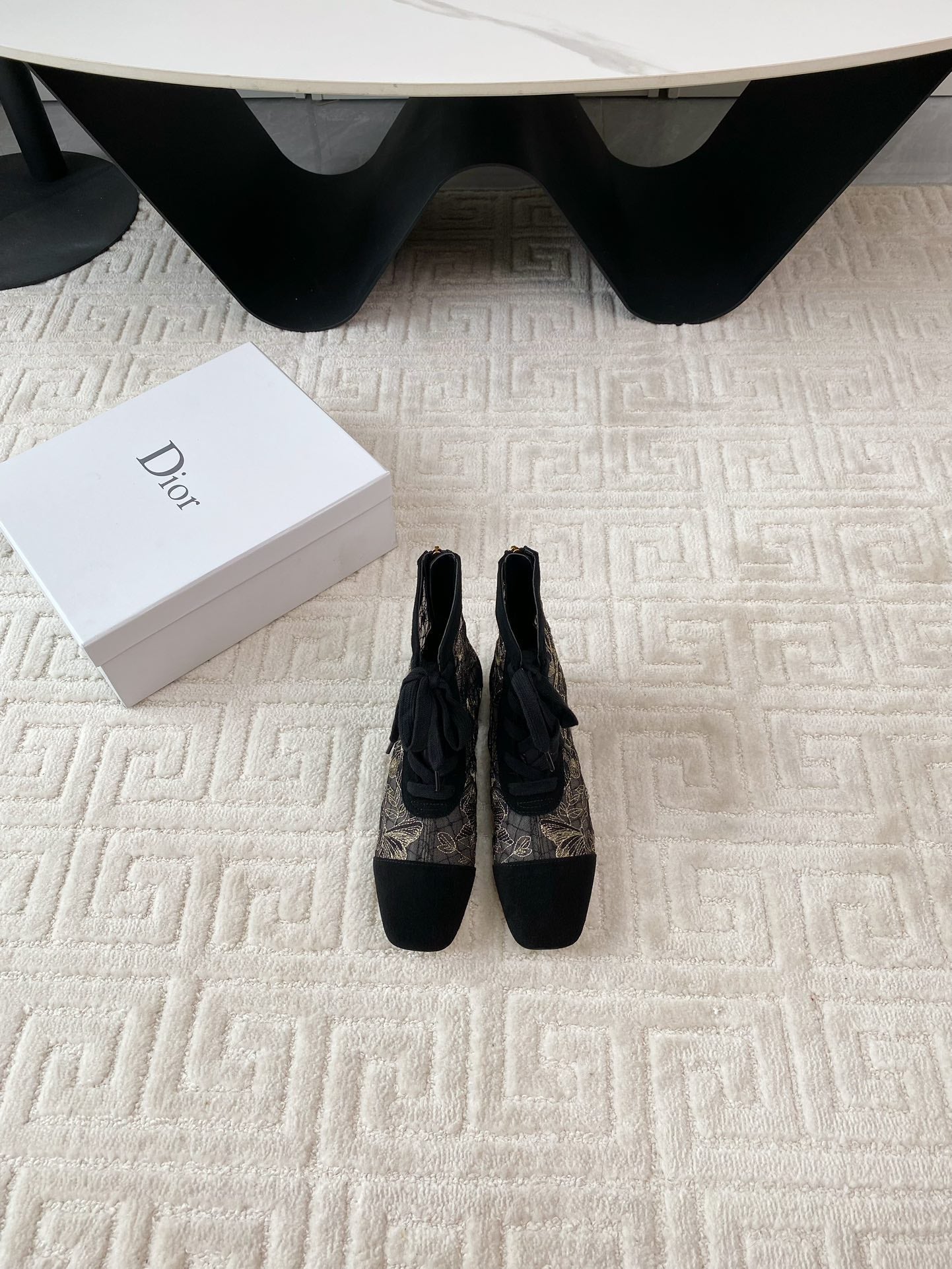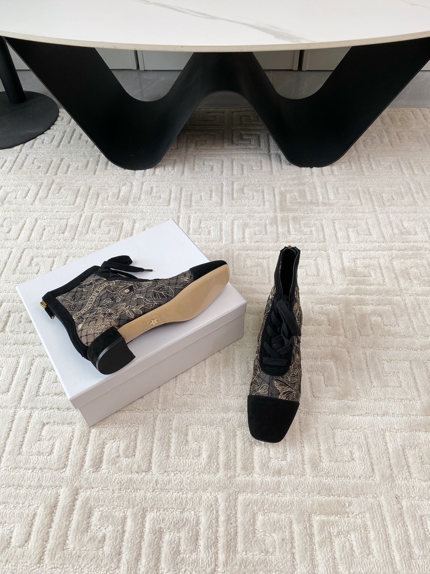 CD Naughtily-D Heeled Ankle Boot Black Transparent Mesh Butterfly And Suede