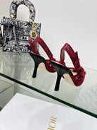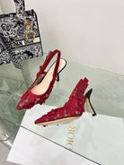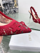 J'Adior Slingback Pump 95mm In Red Floral Embroidered Lace Fabric 100846