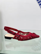J'Adior Slingback Pump In Red Floral Embroidered Lace Fabric 100844