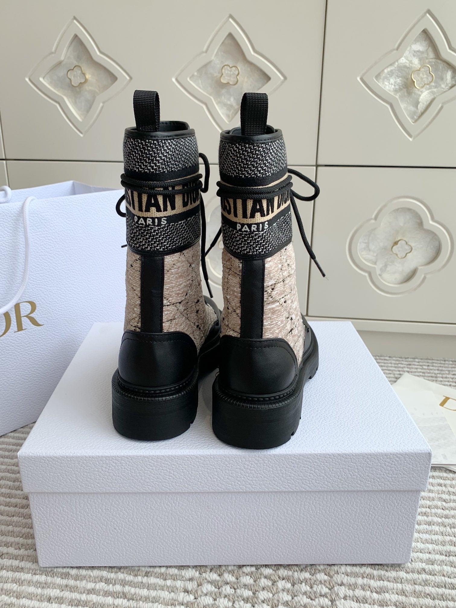 CD D-Major Ankle Boot In Dark Beige Mix Black Canvas With Fleece Lining 105072