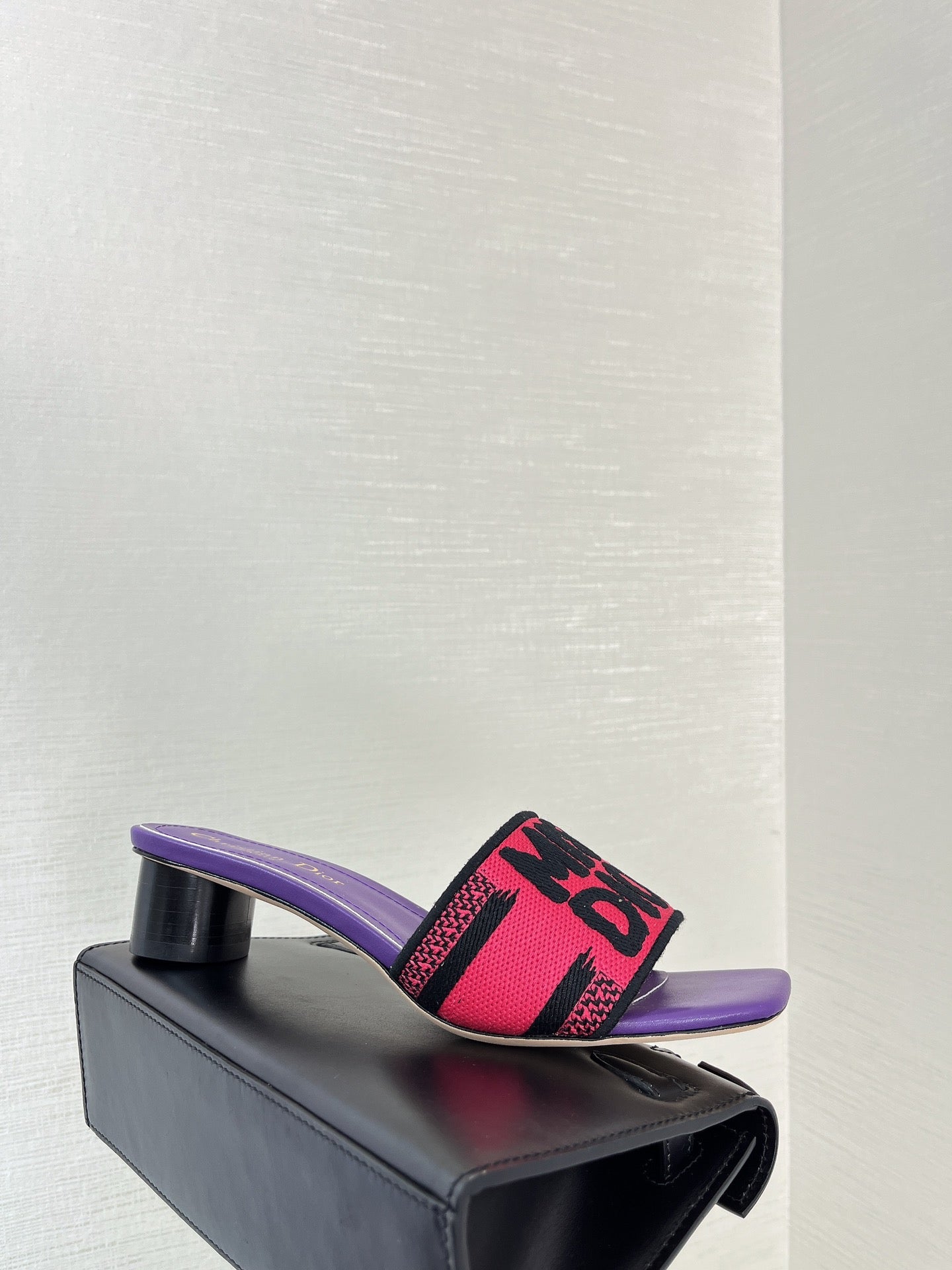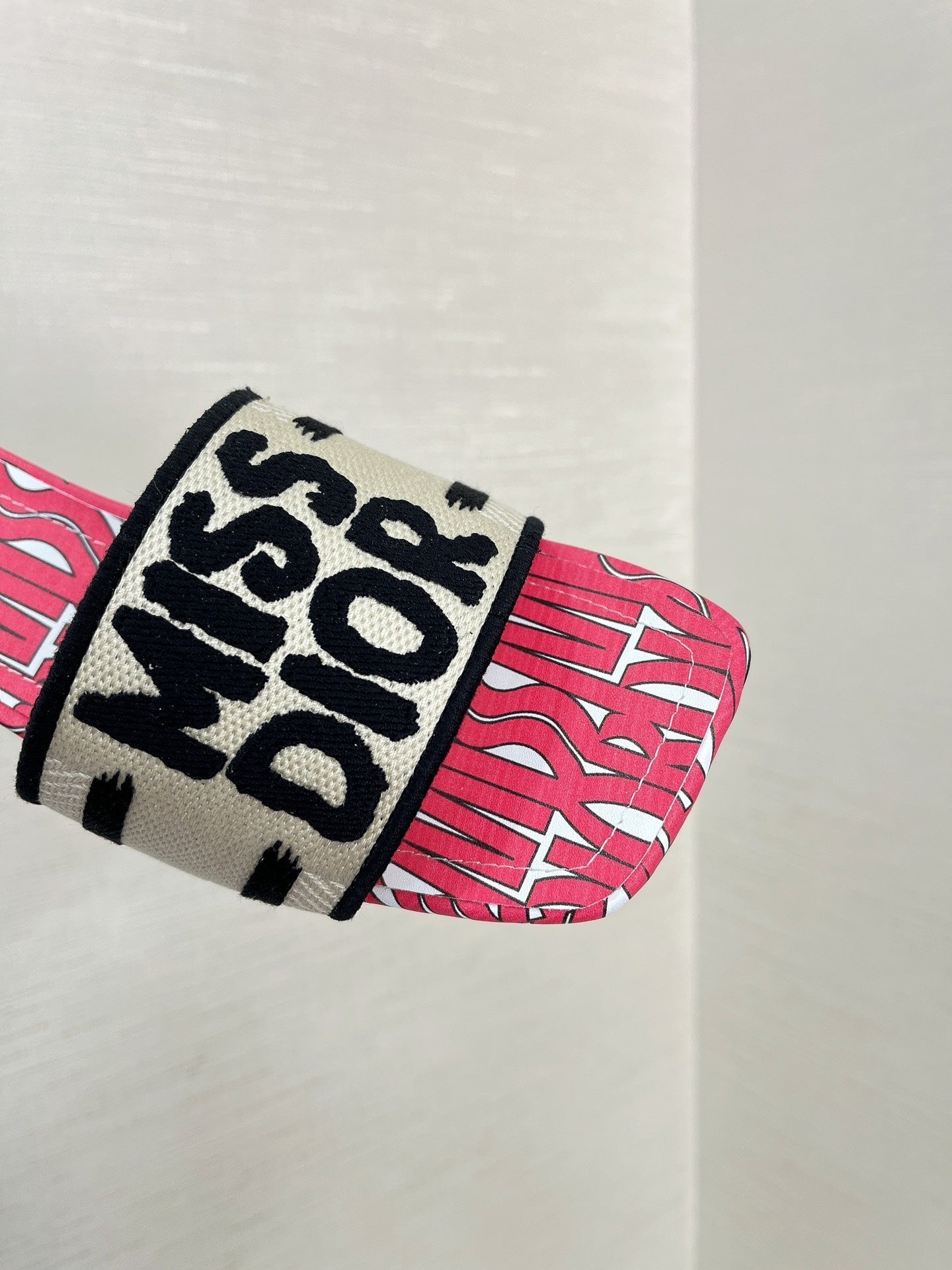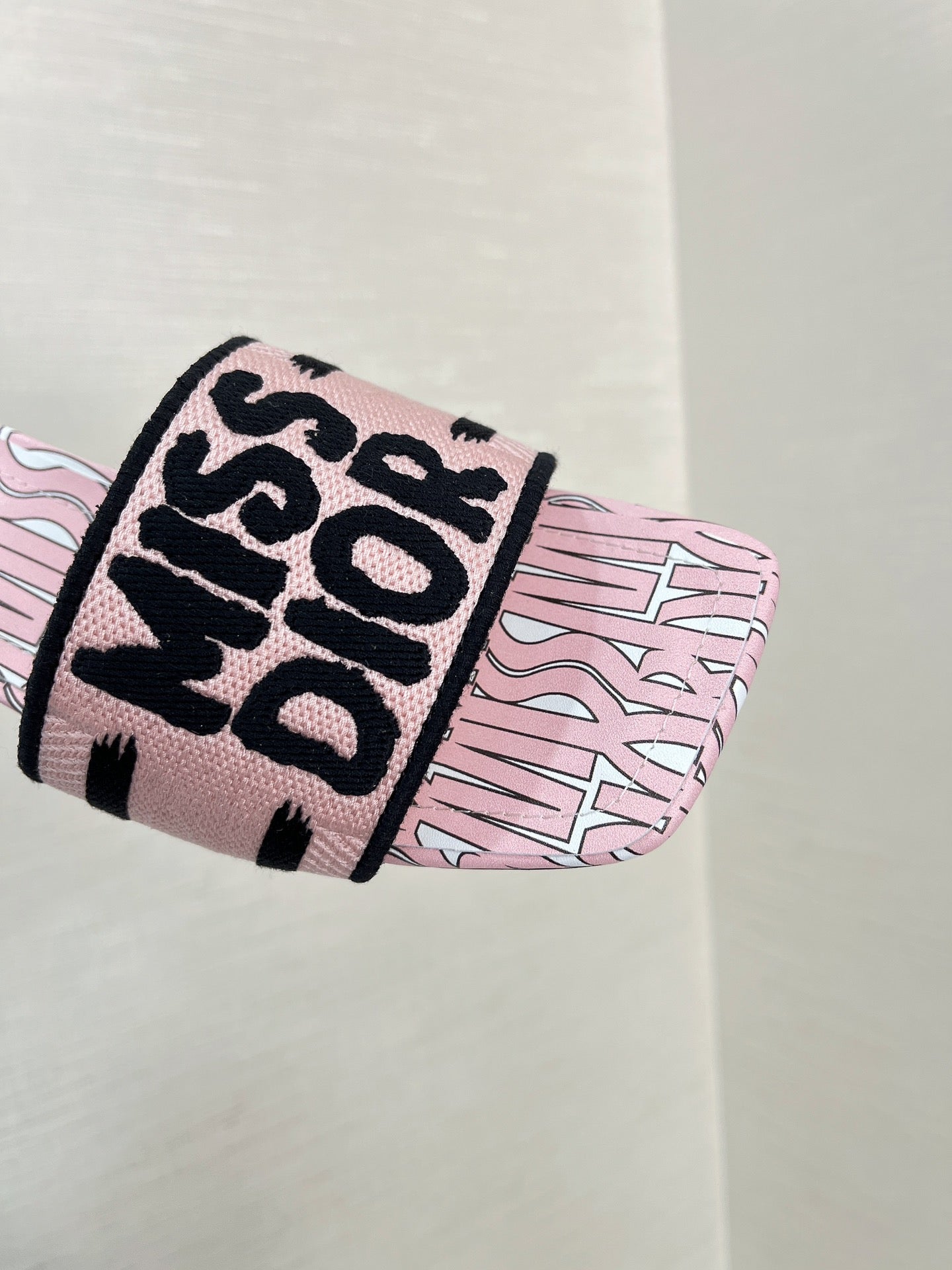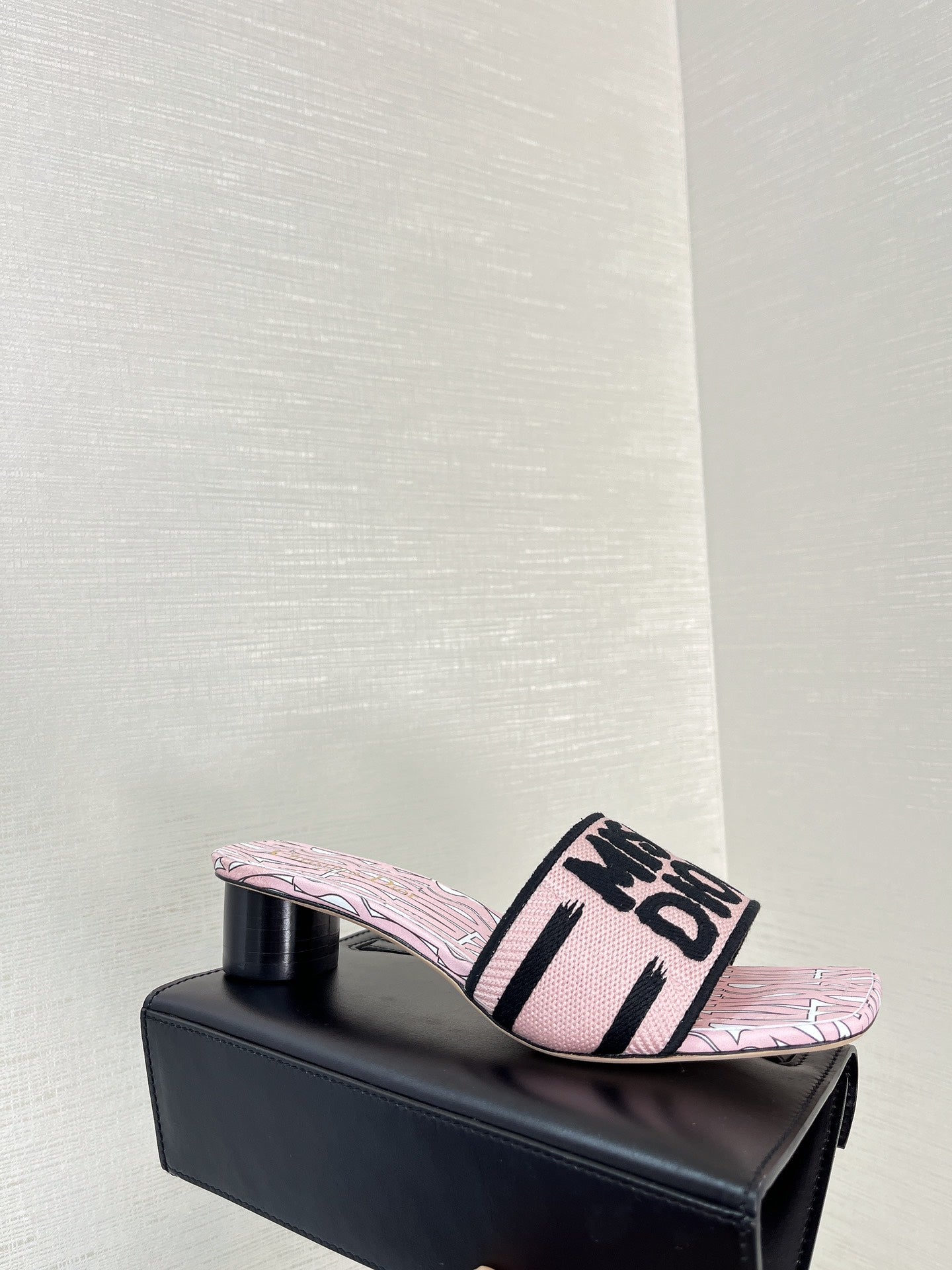 dway heeled slide 35 embroidered cotton pink miss cd alllover motif
