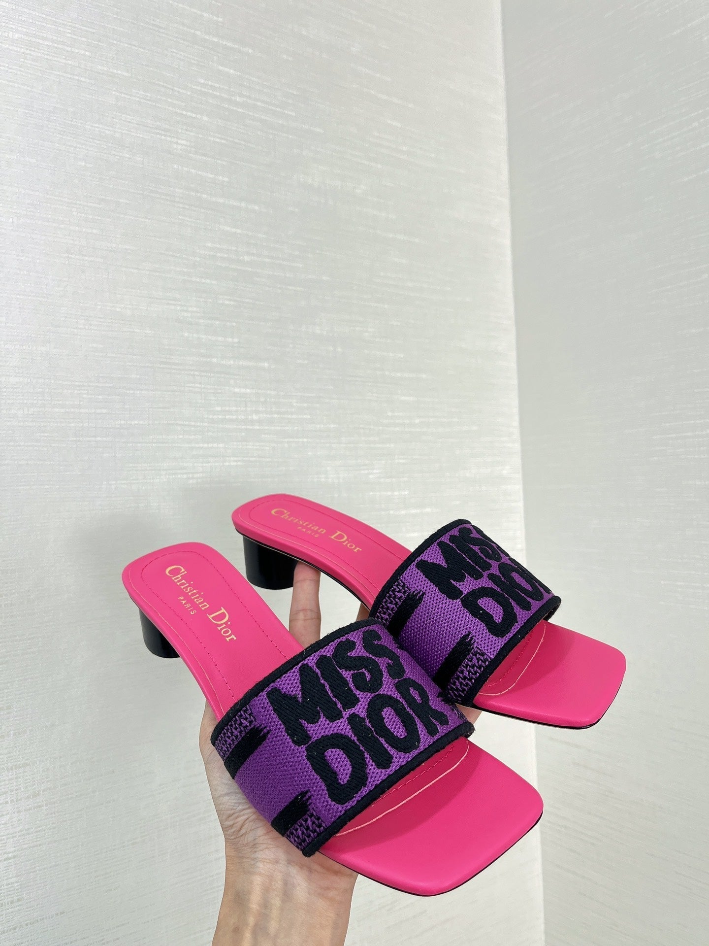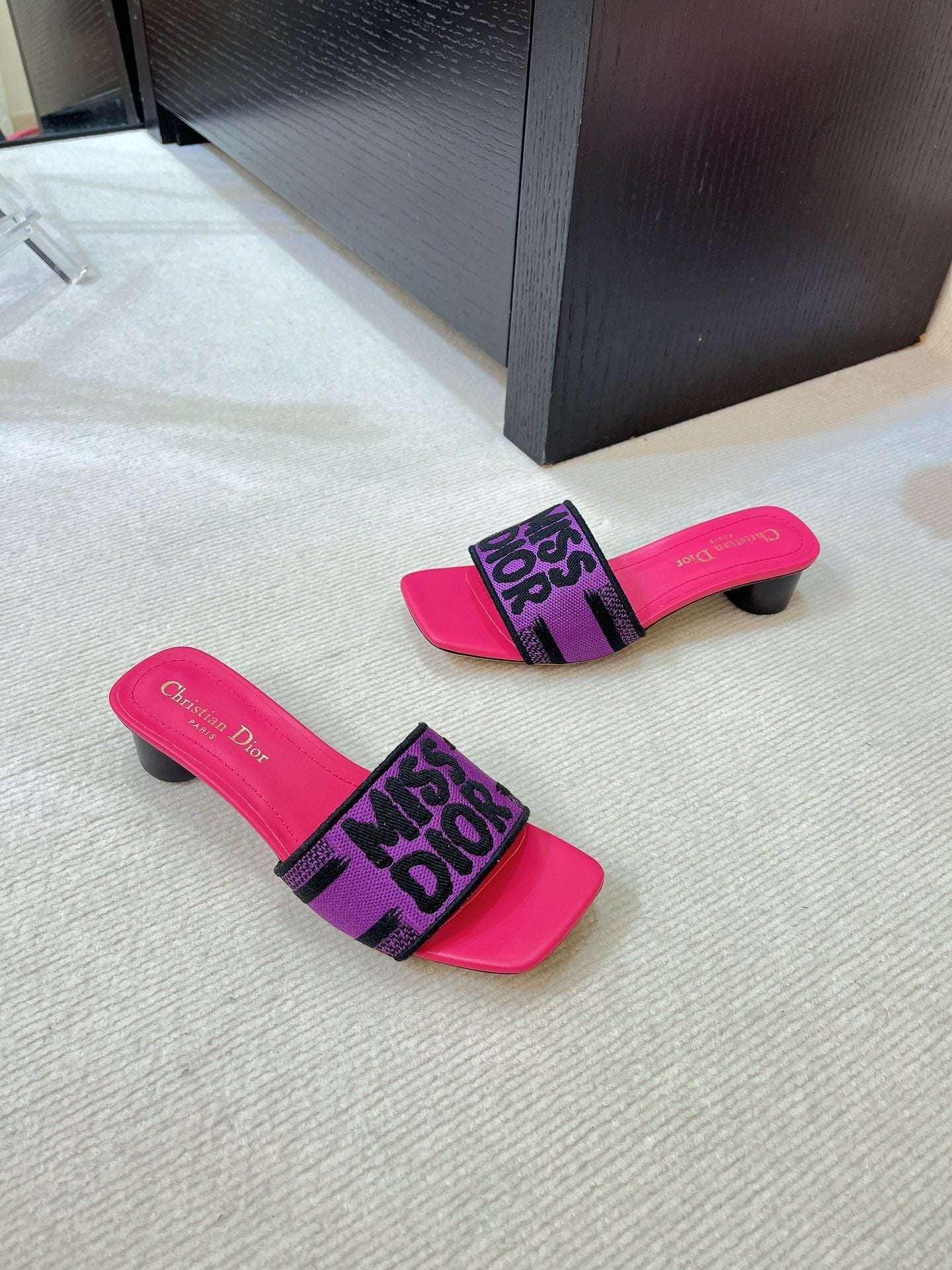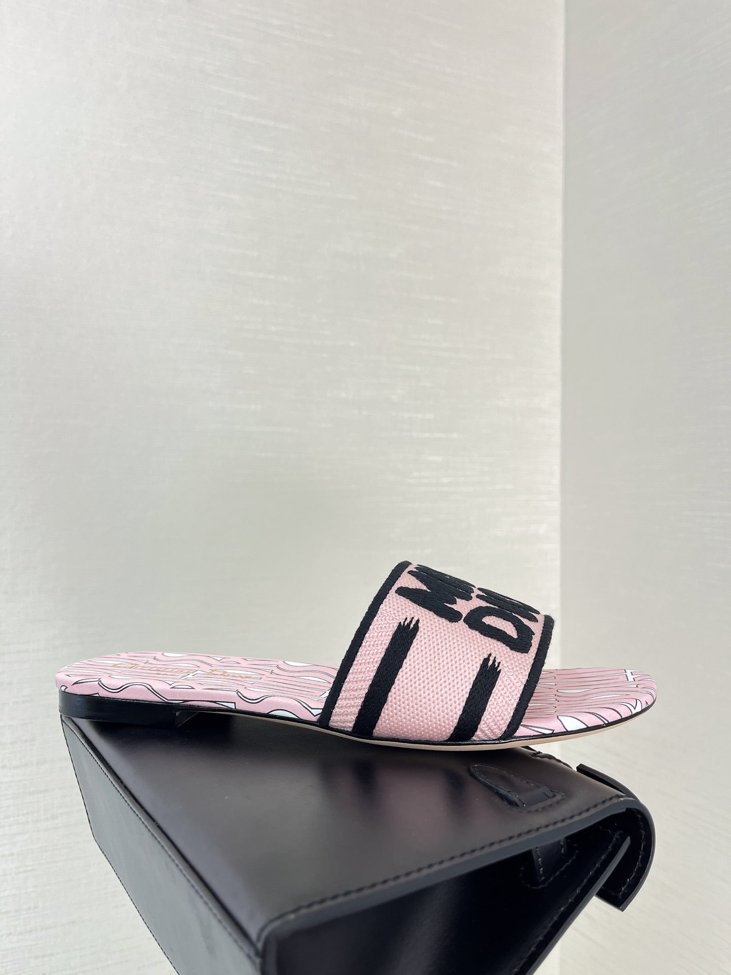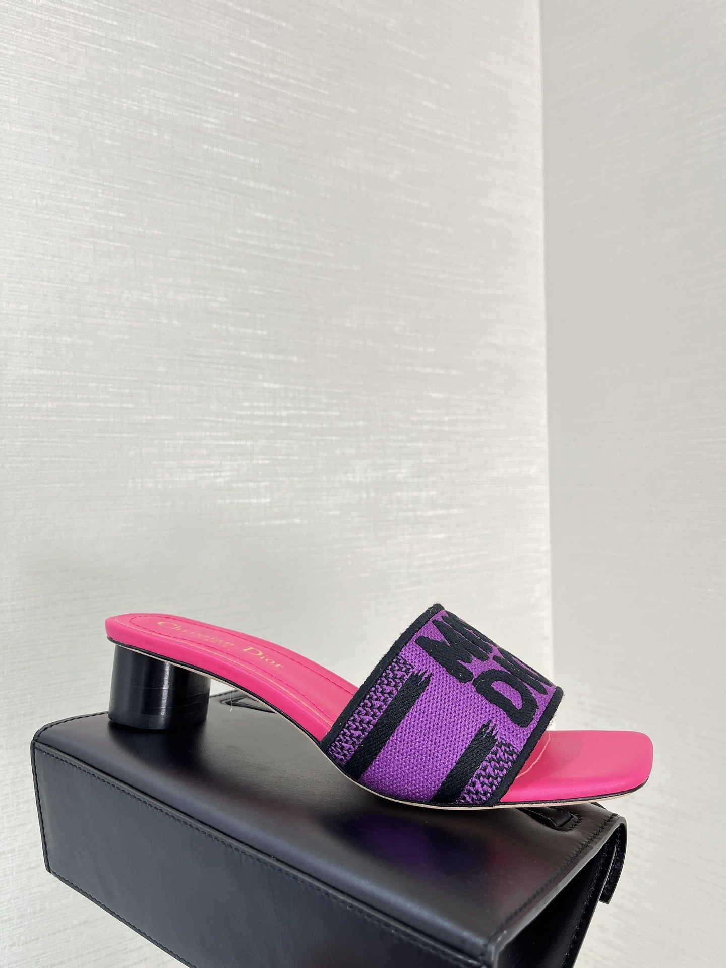 dway heeled slide 35 embroidered cotton pink miss cd alllover motif
