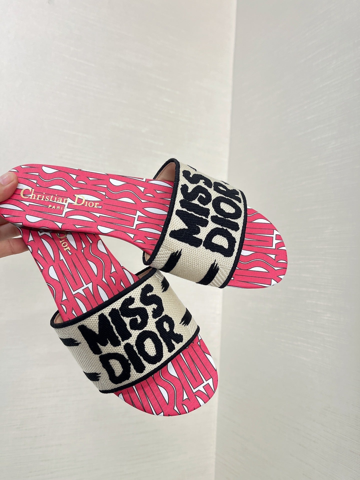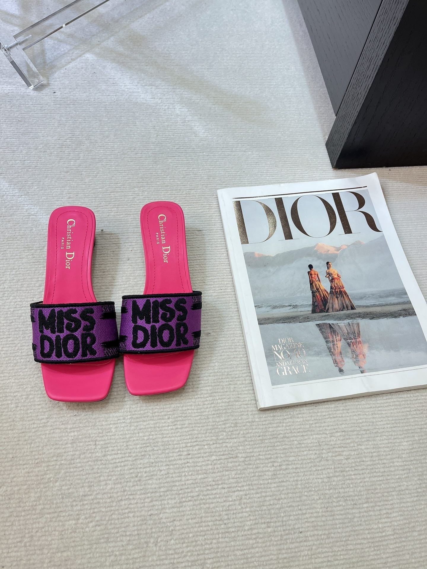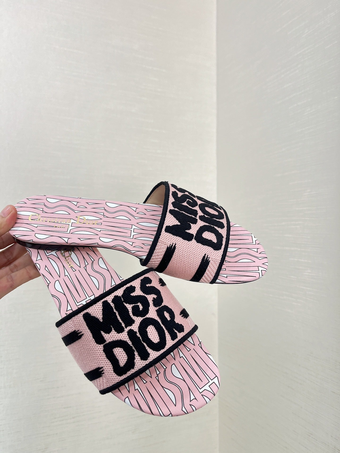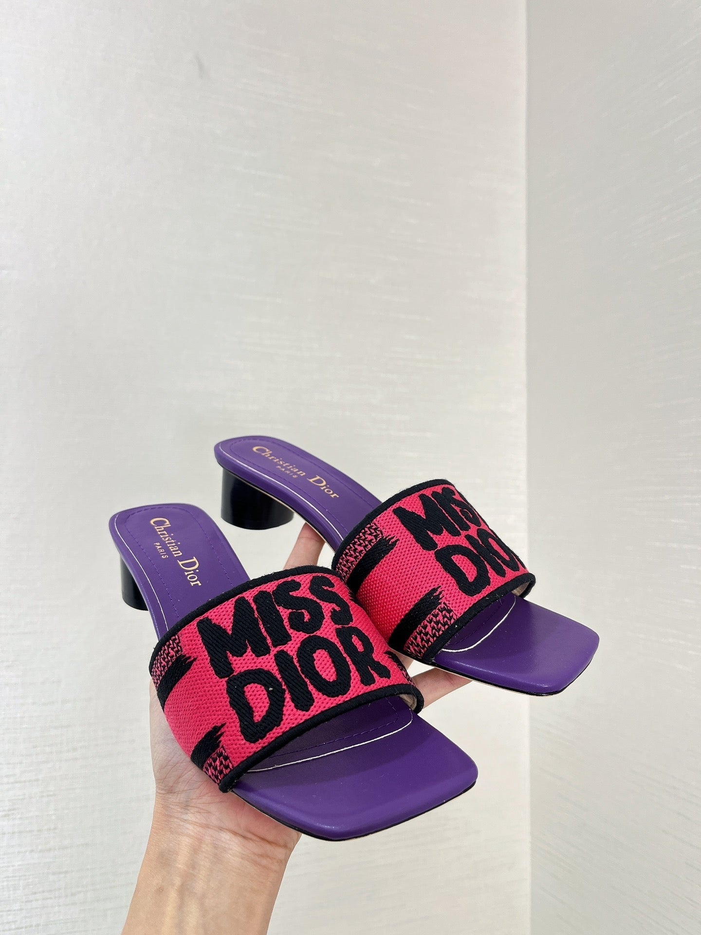 dway heeled slide 35 embroidered cotton pink miss cd alllover motif