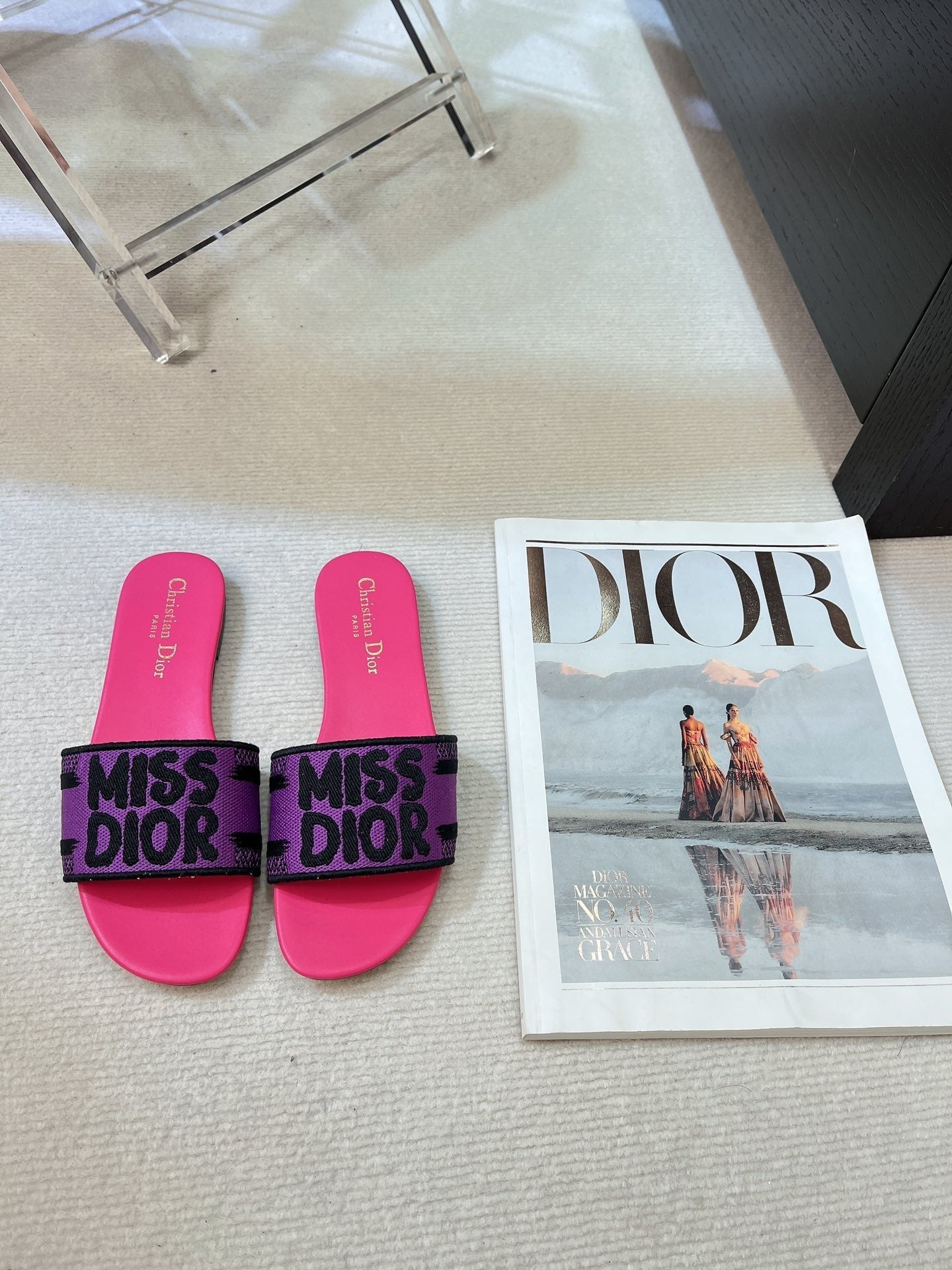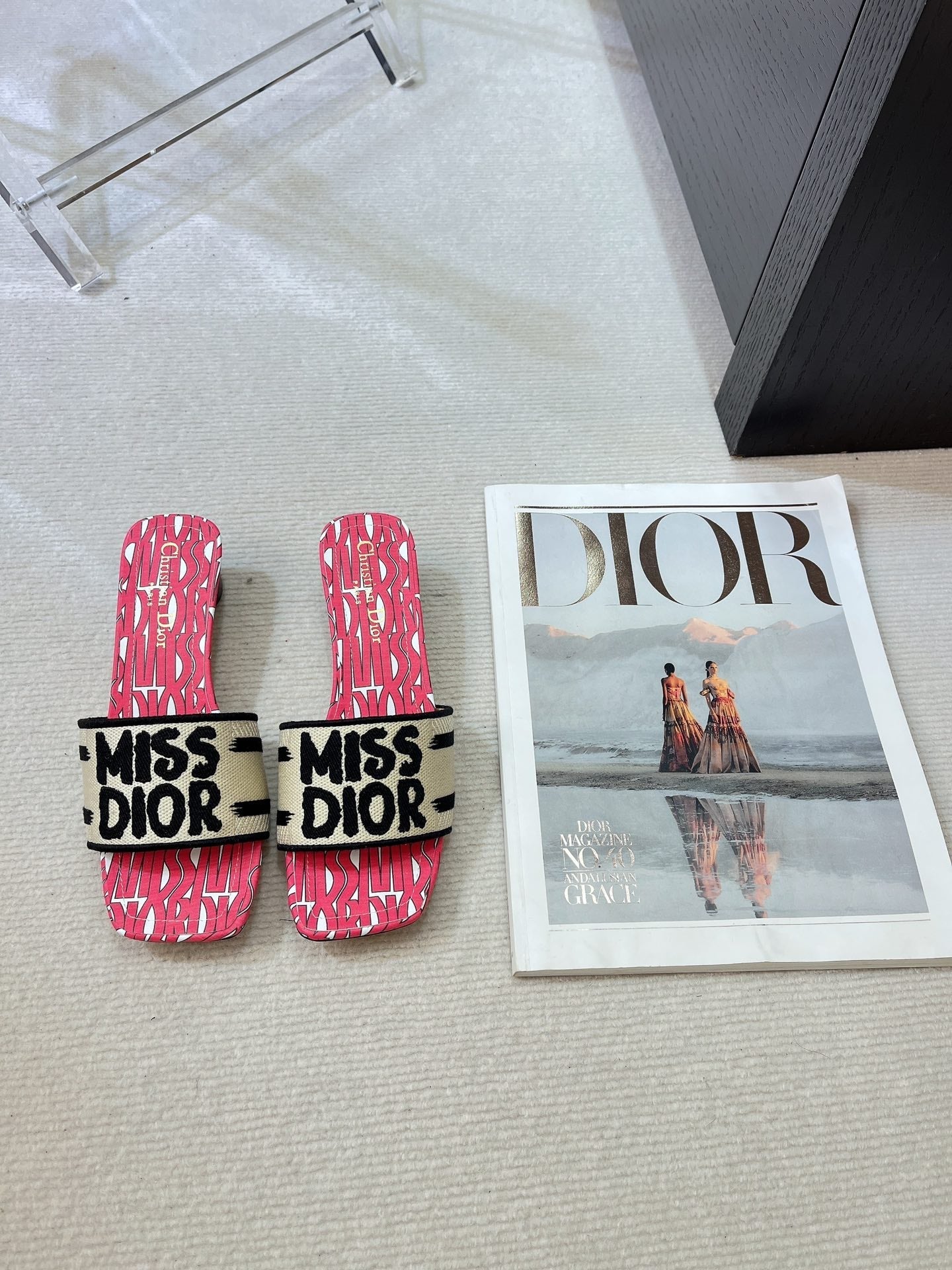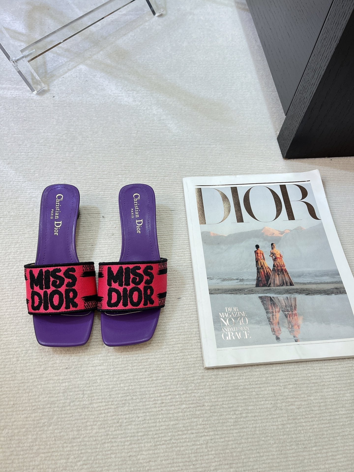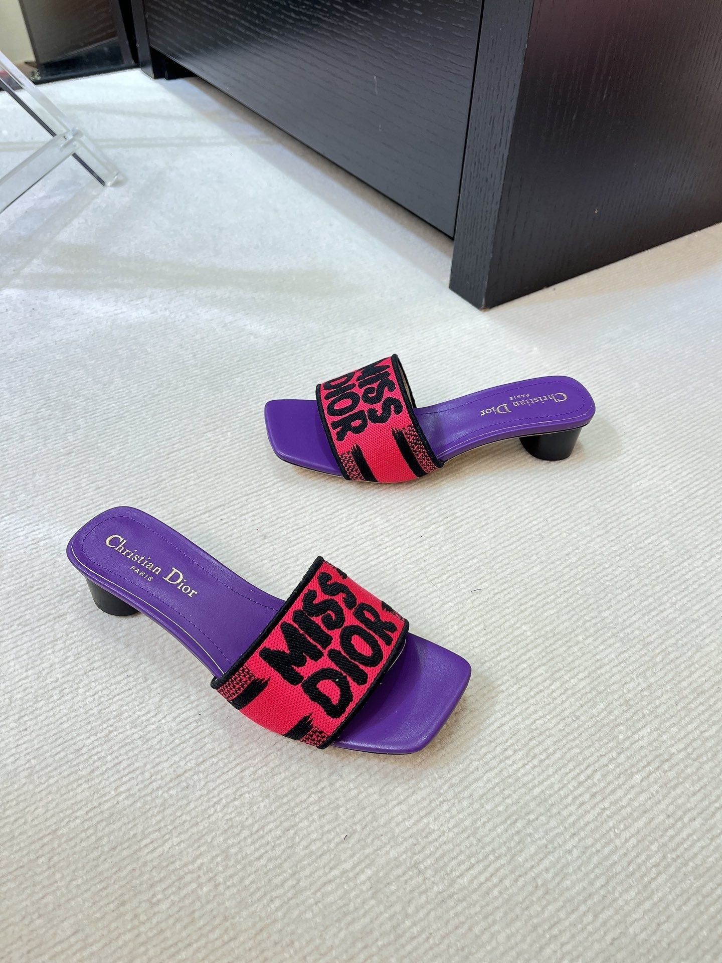 dway heeled slide 35 embroidered cotton pink miss cd alllover motif