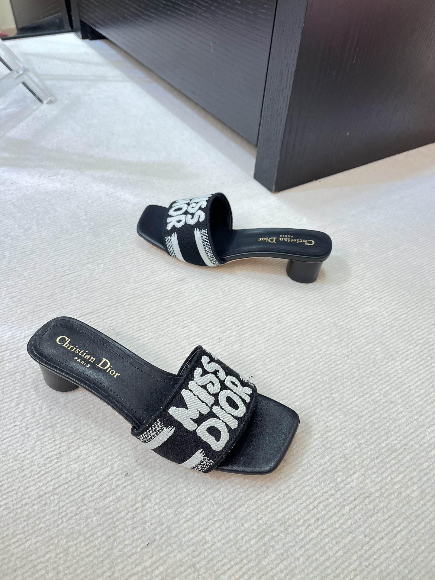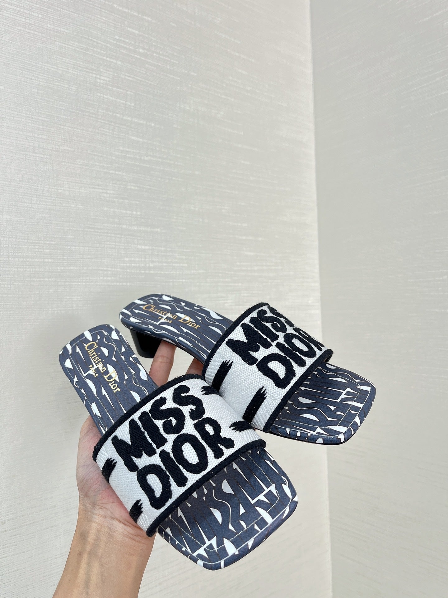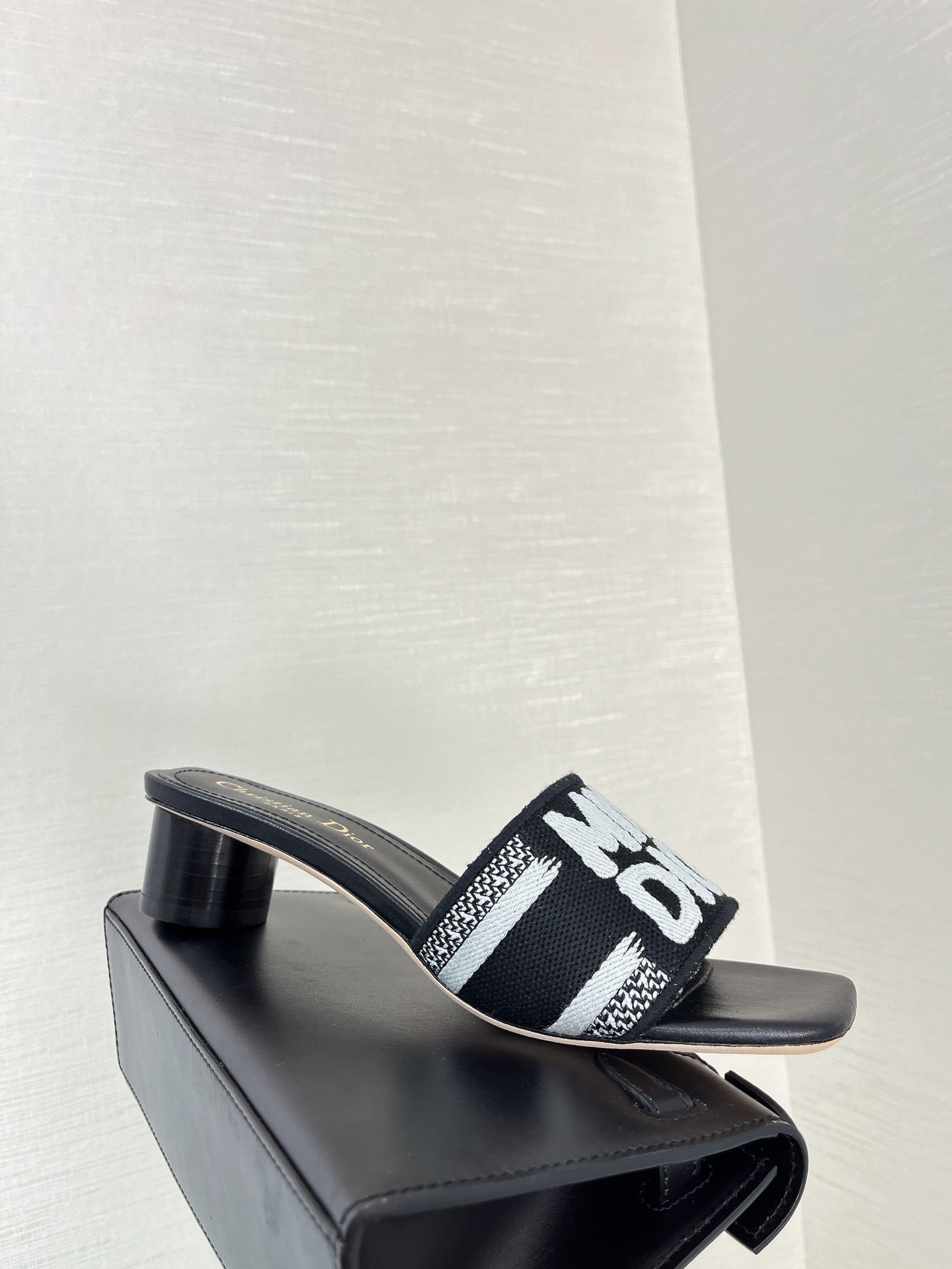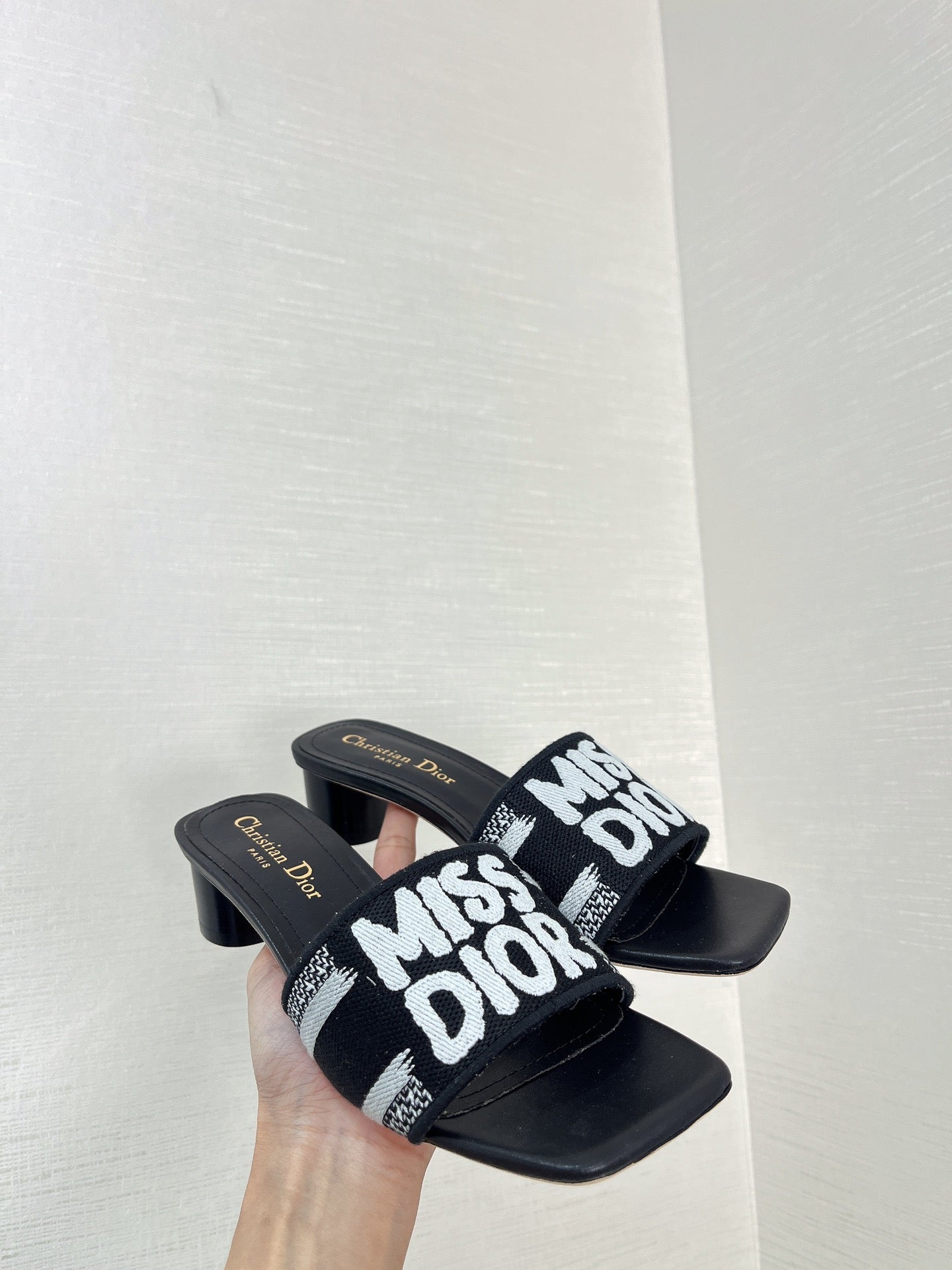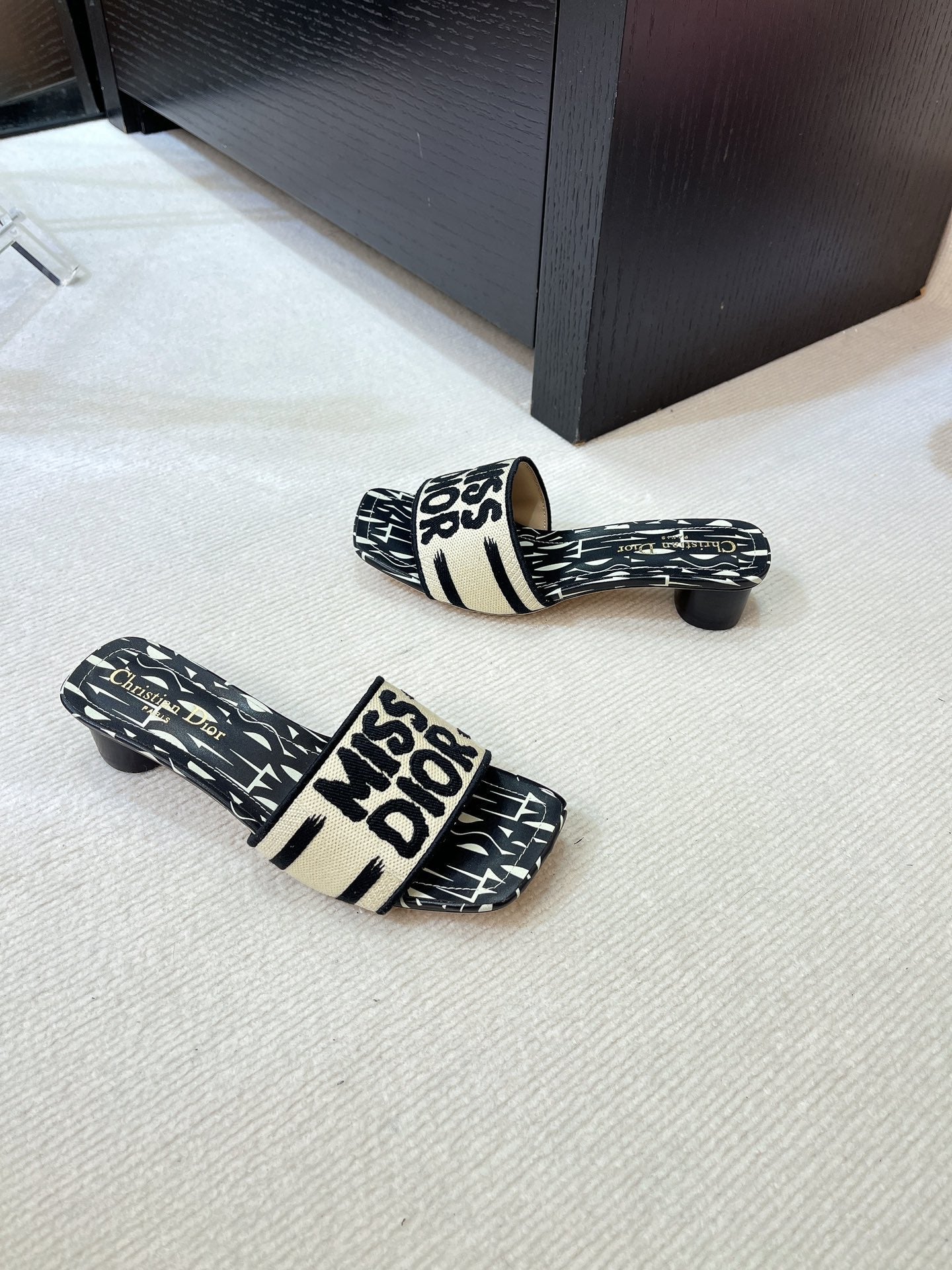dway heeled slide 35 embroidered cotton black miss cd alllover motif