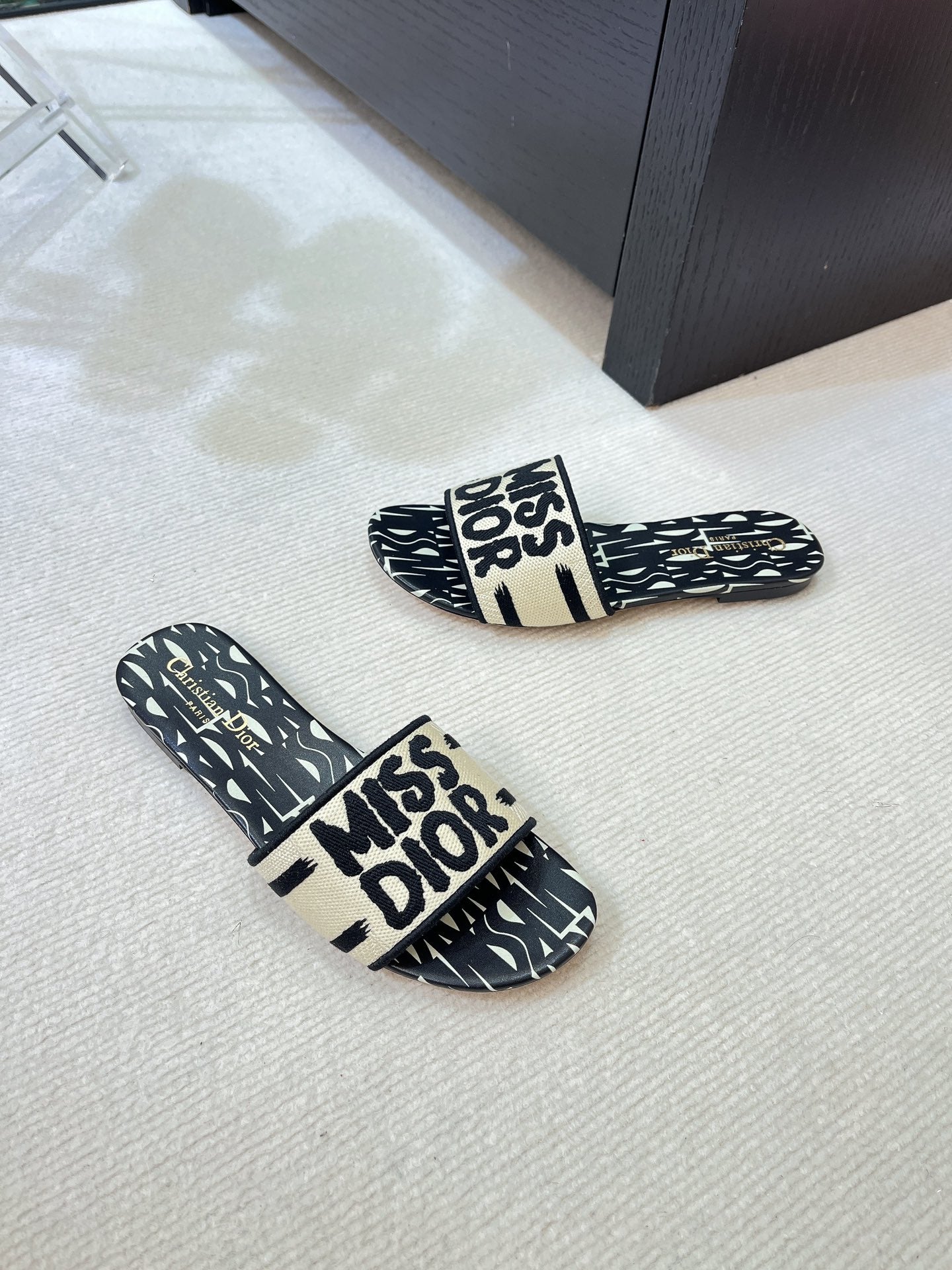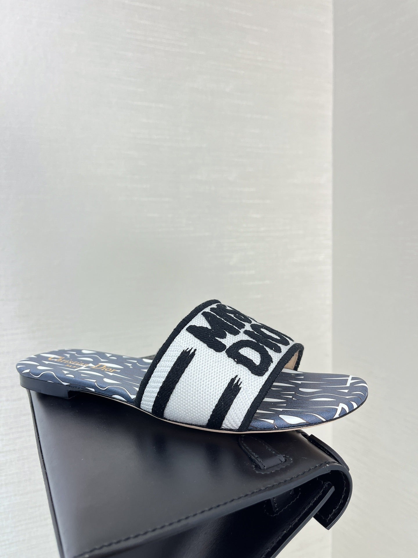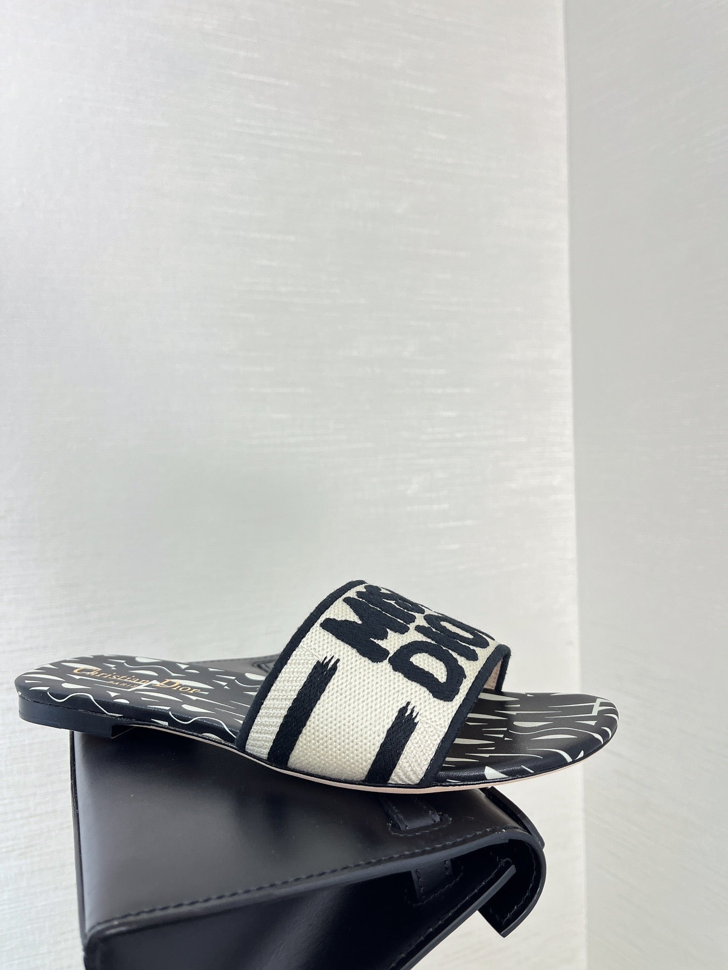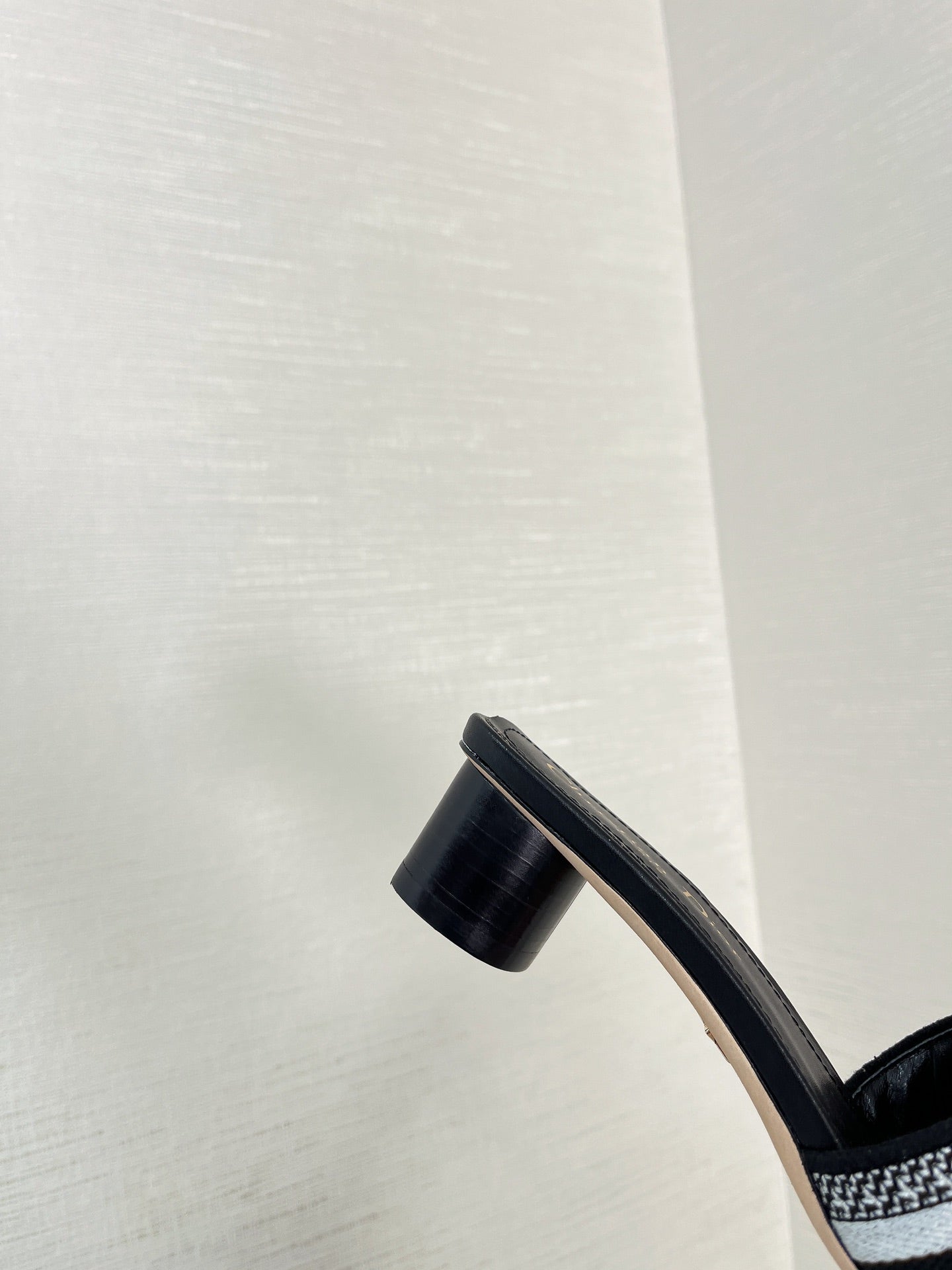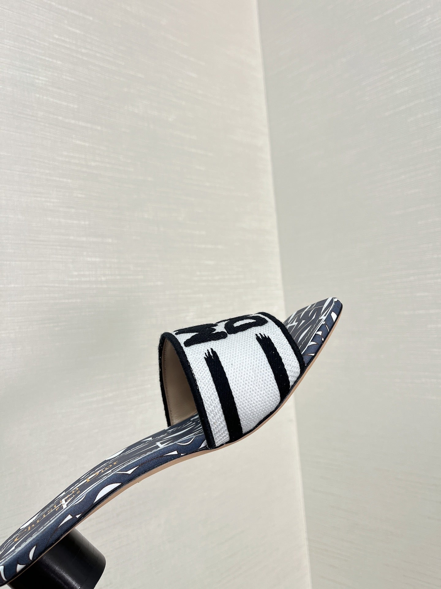 dway heeled slide 35 embroidered cotton black miss cd alllover motif