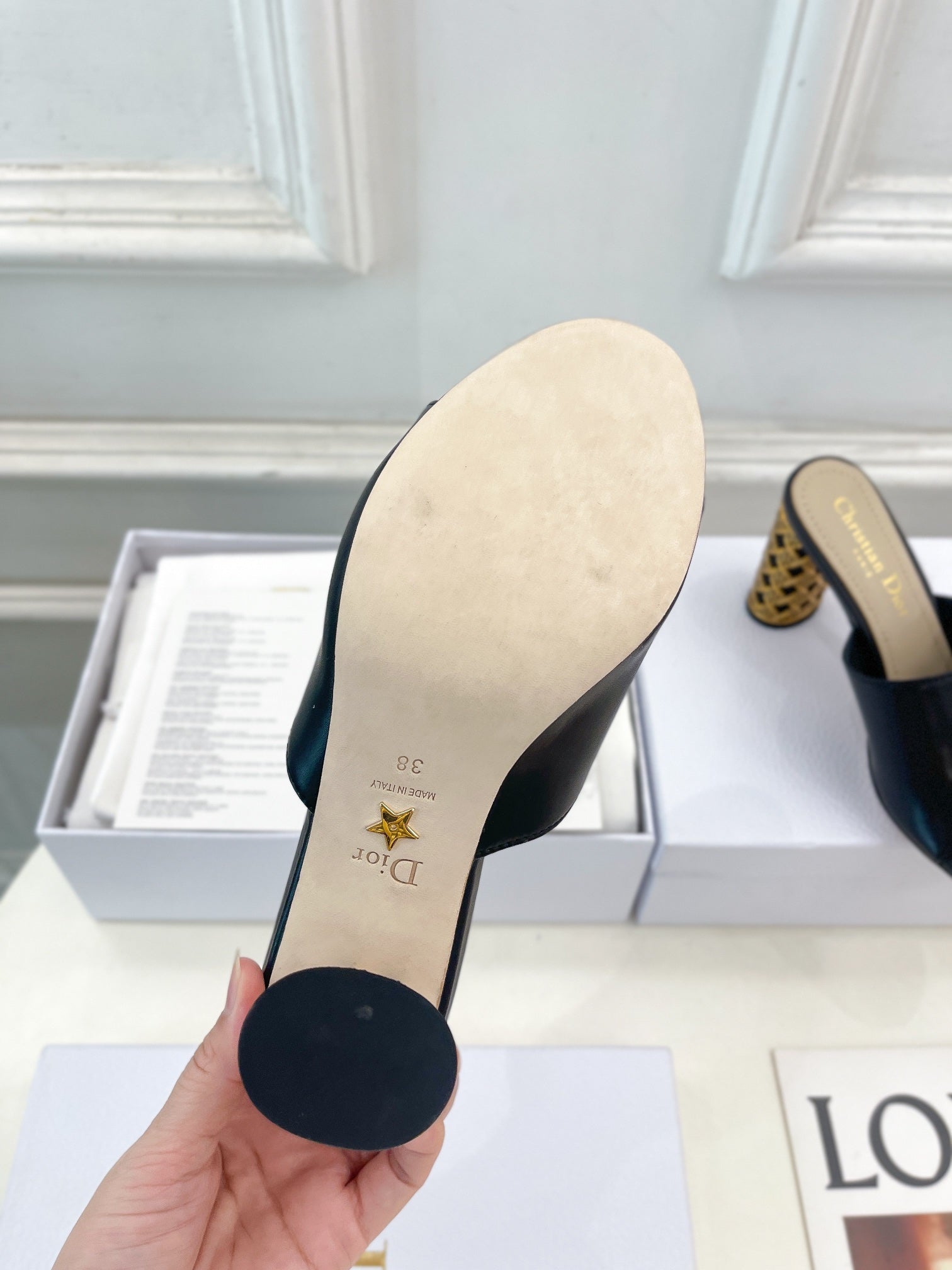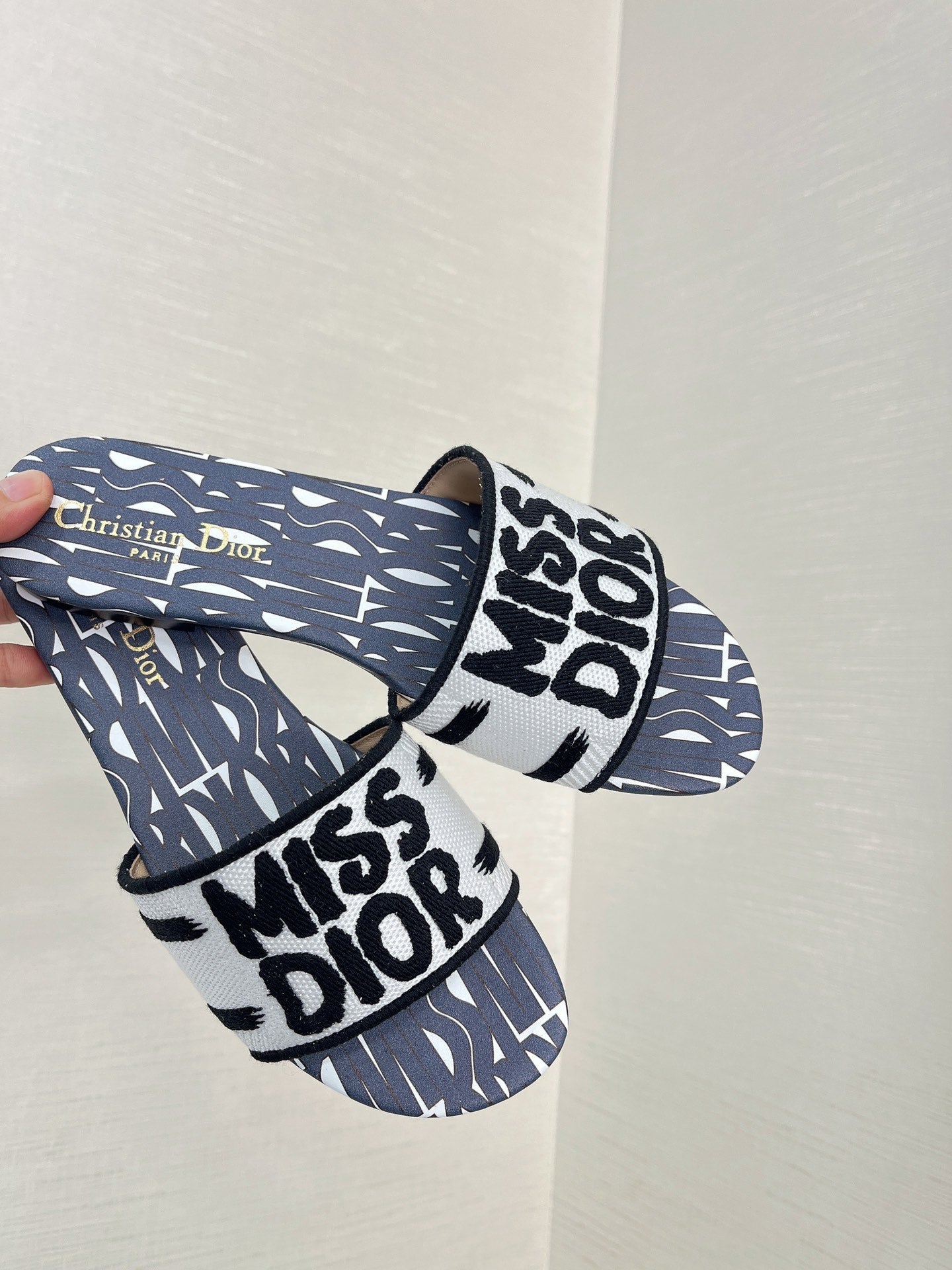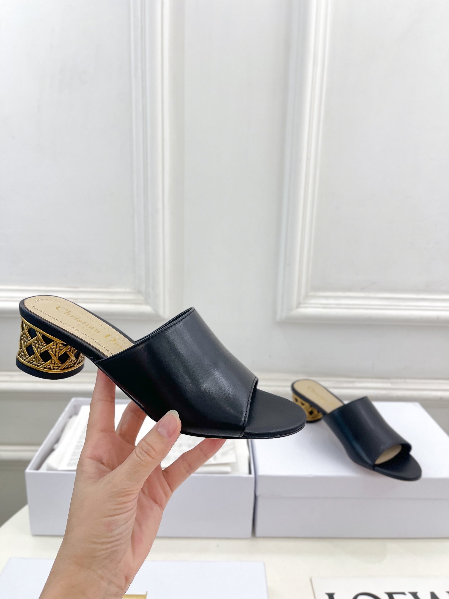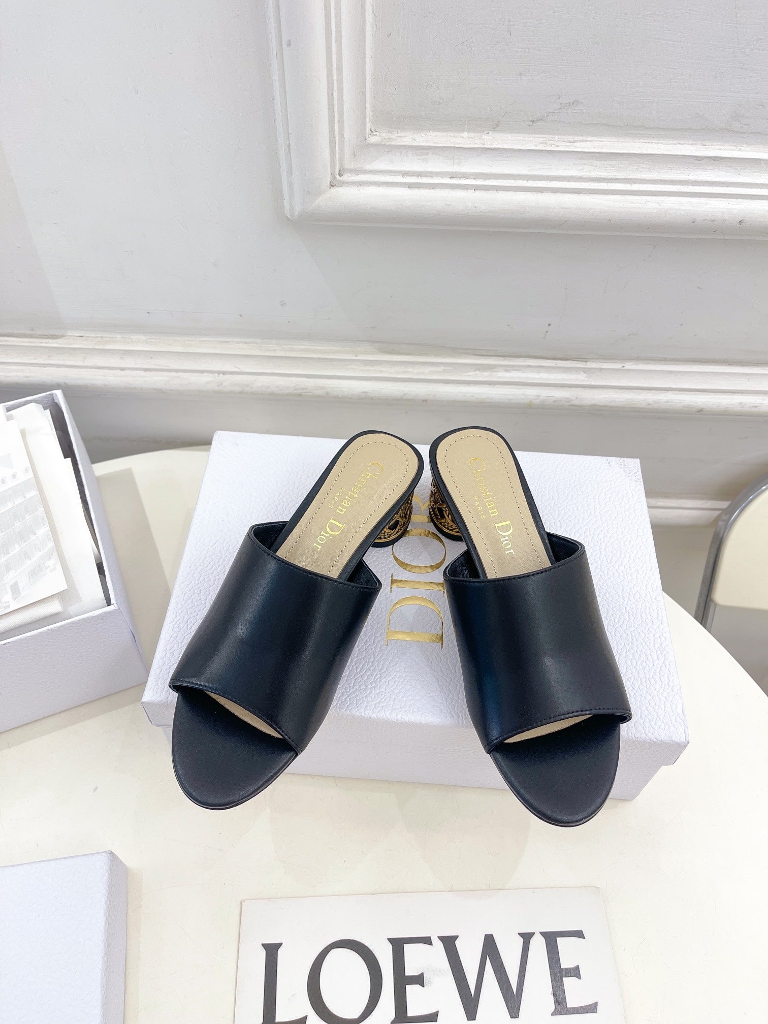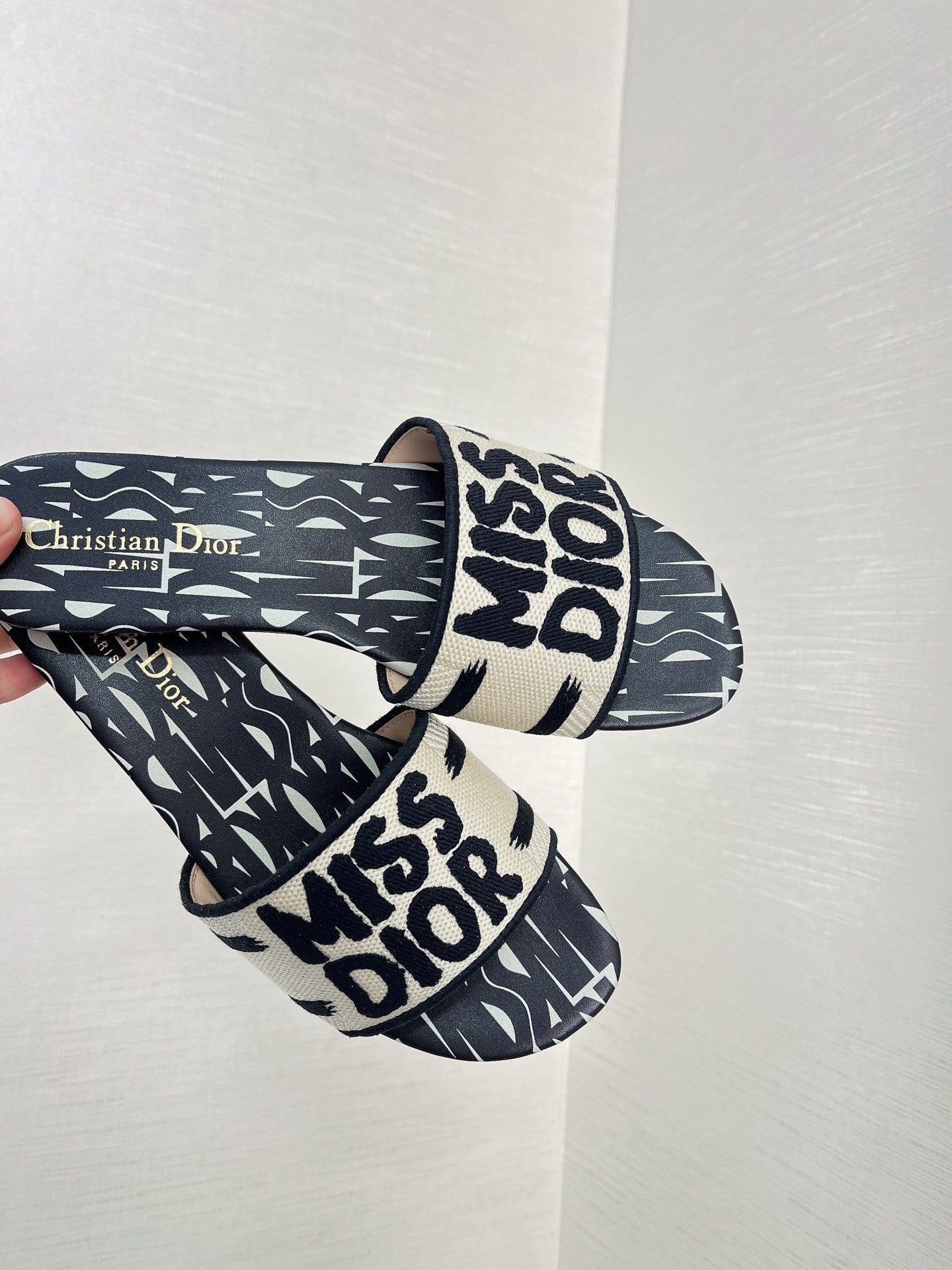 dway heeled slide 35 embroidered cotton black miss cd alllover motif