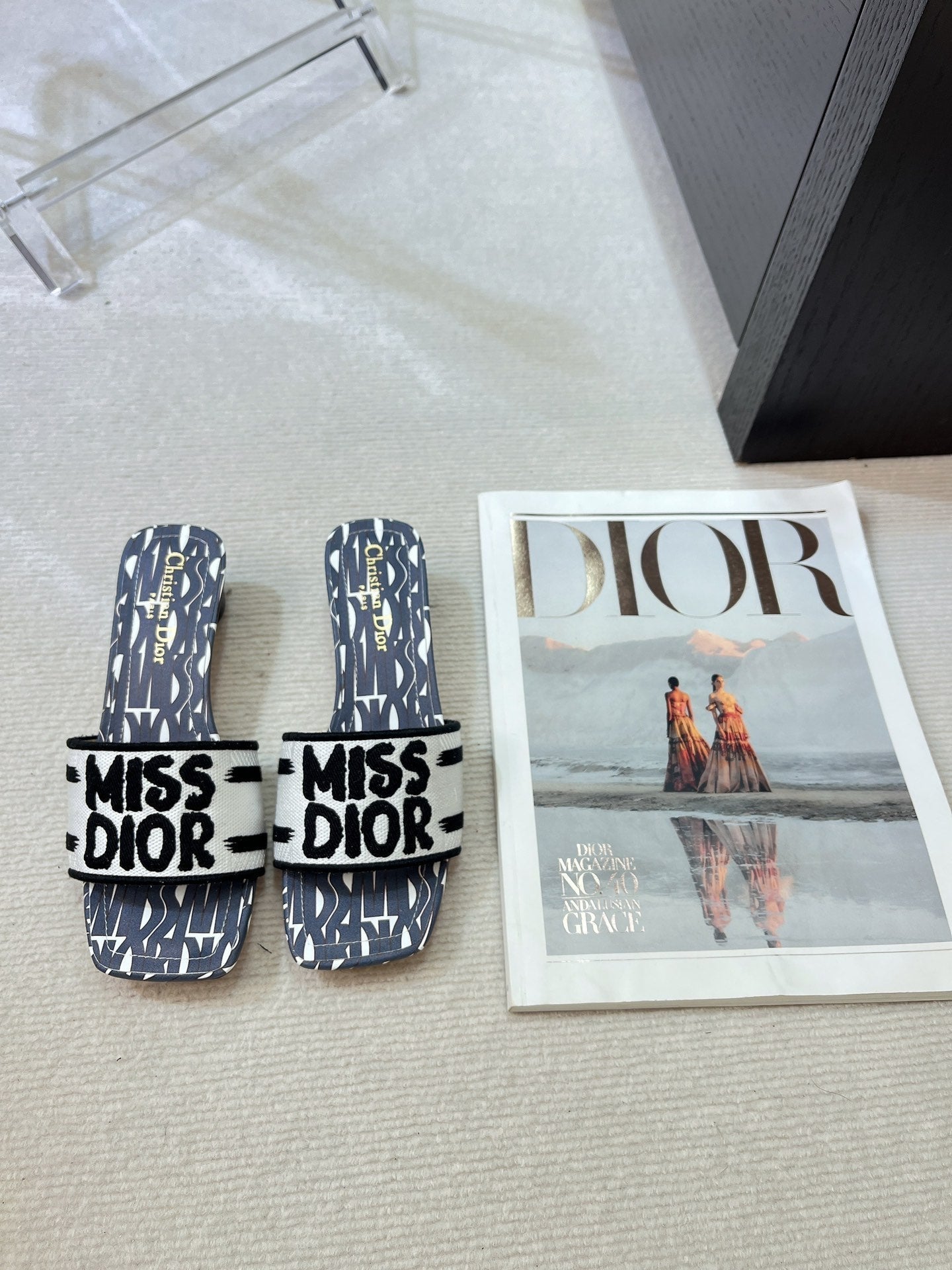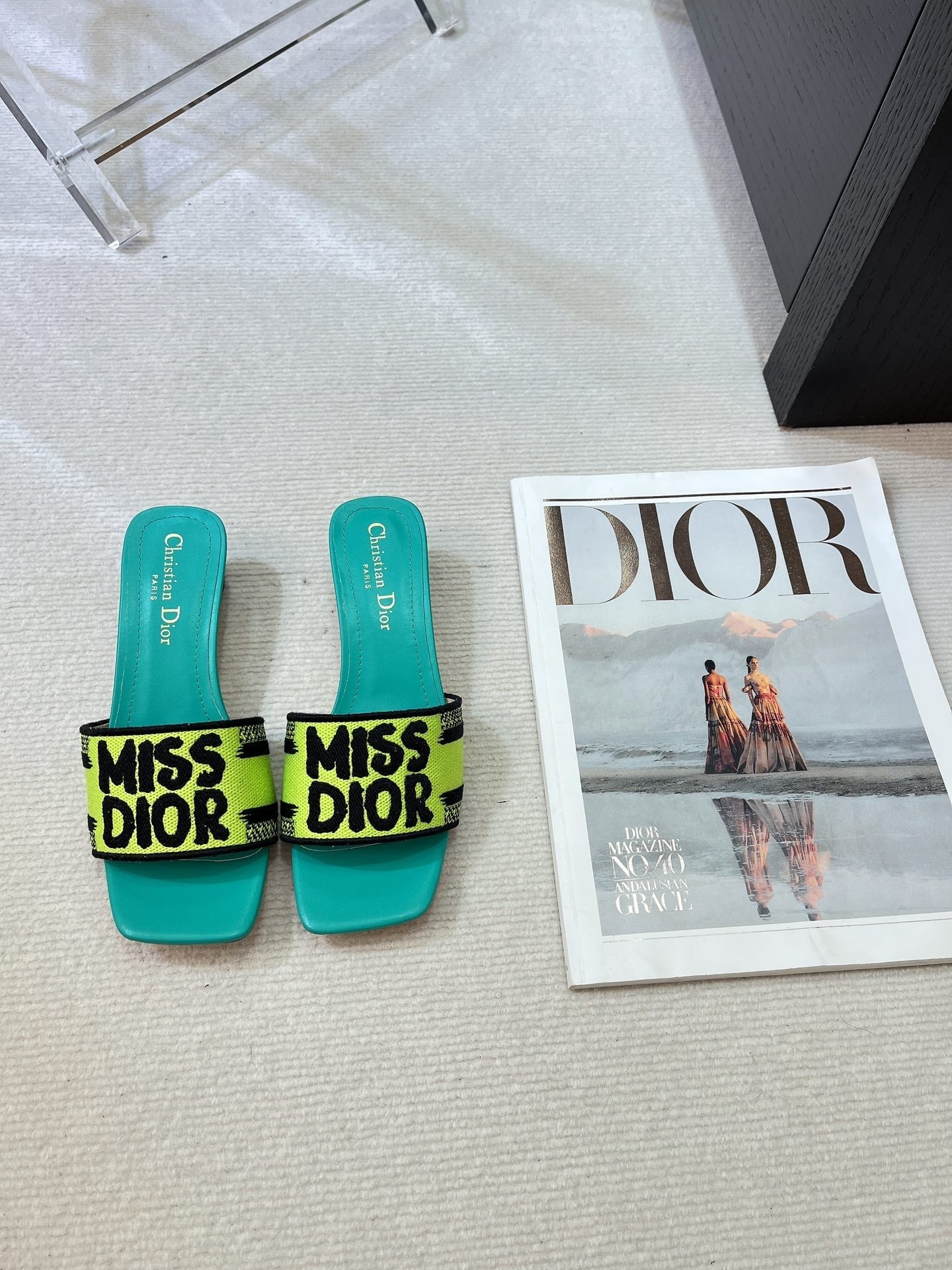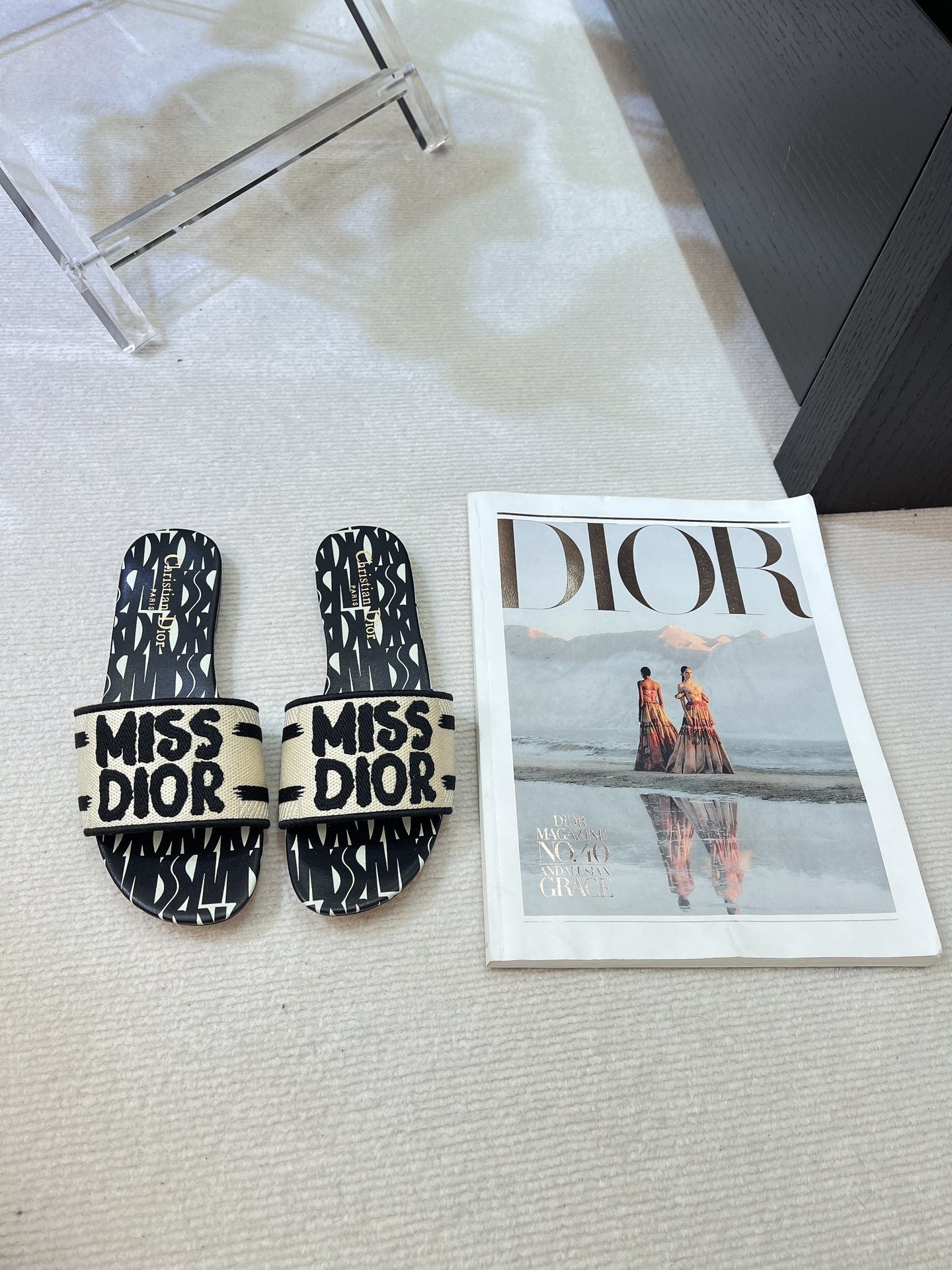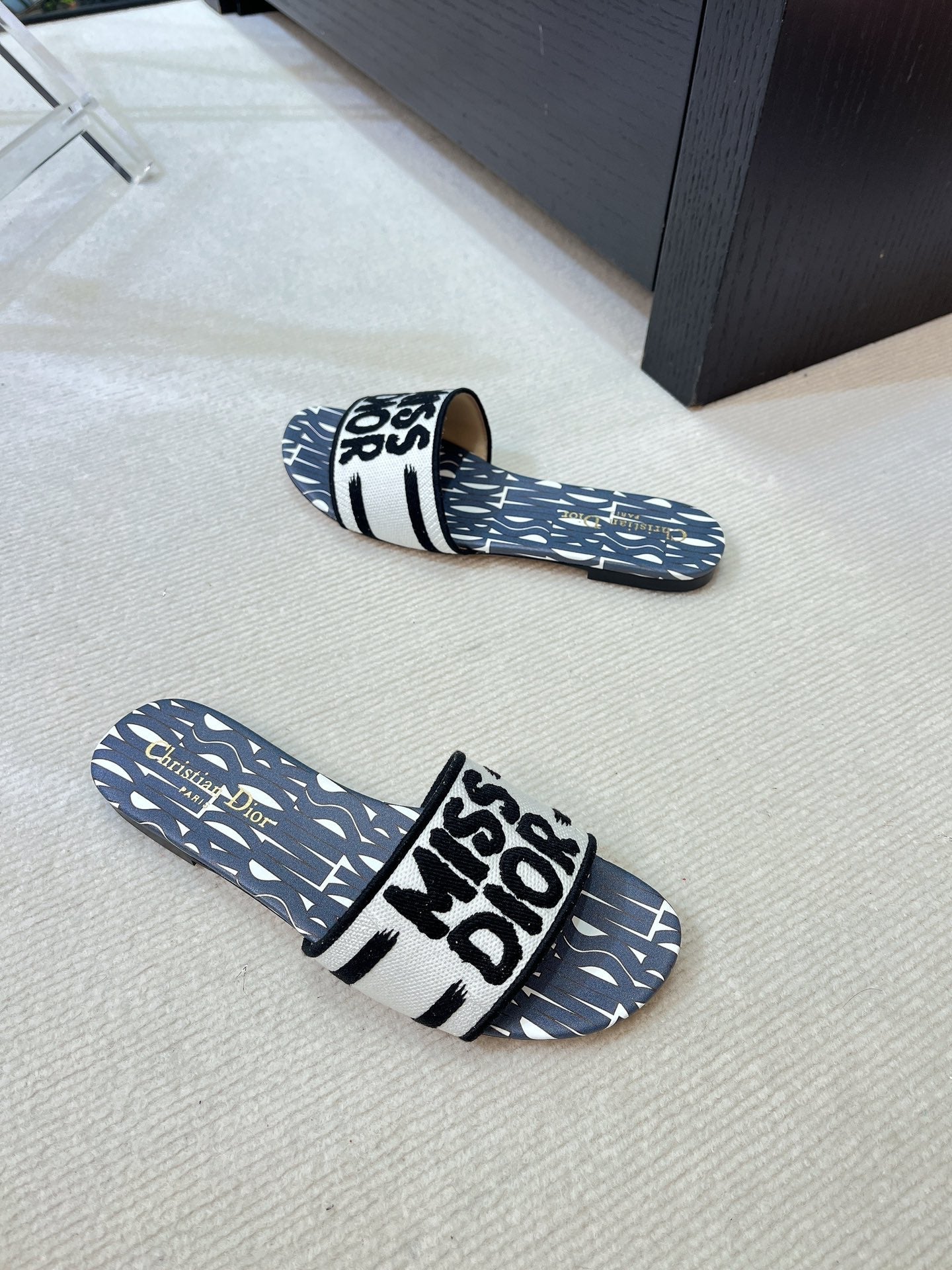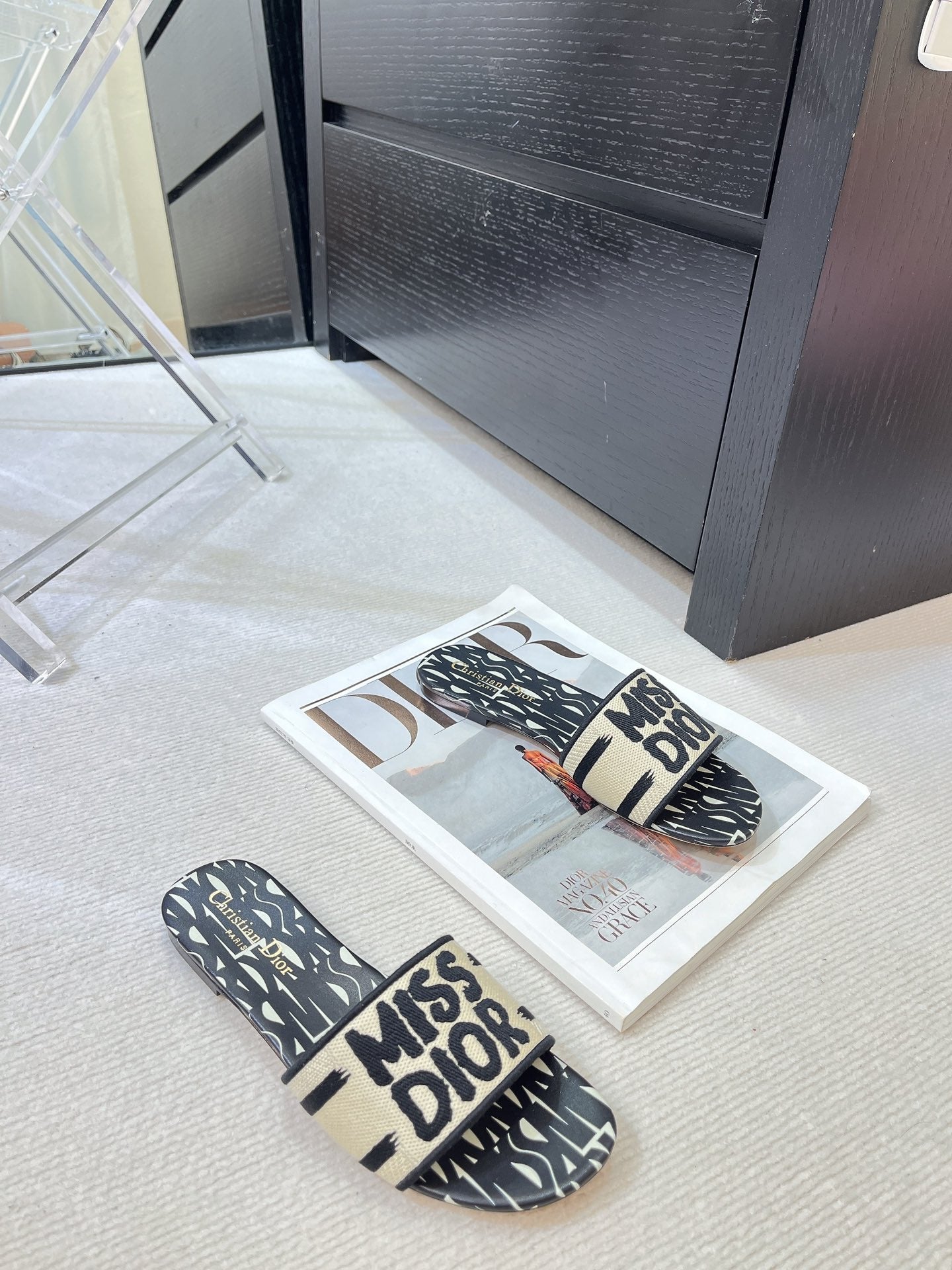 dway heeled slide 35 embroidered cotton black miss cd alllover motif