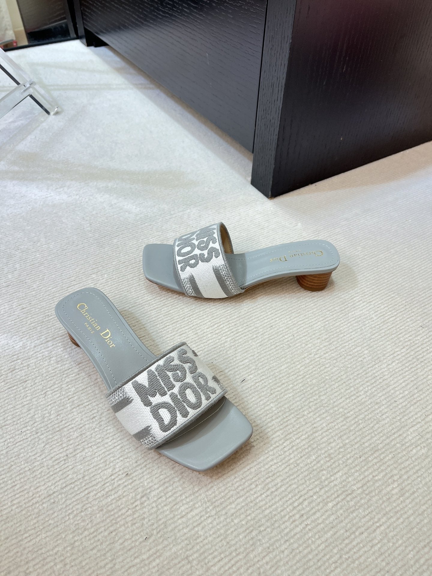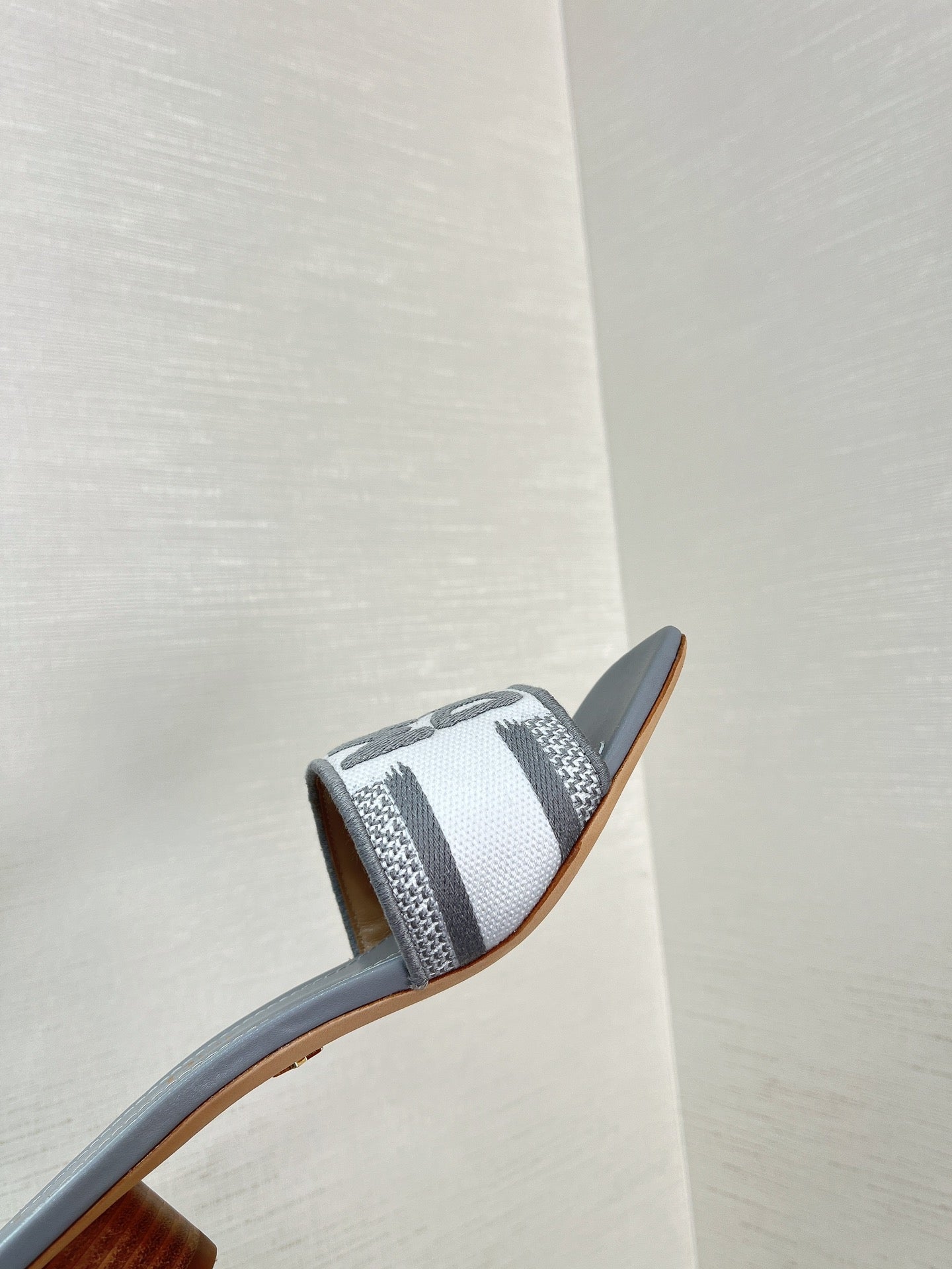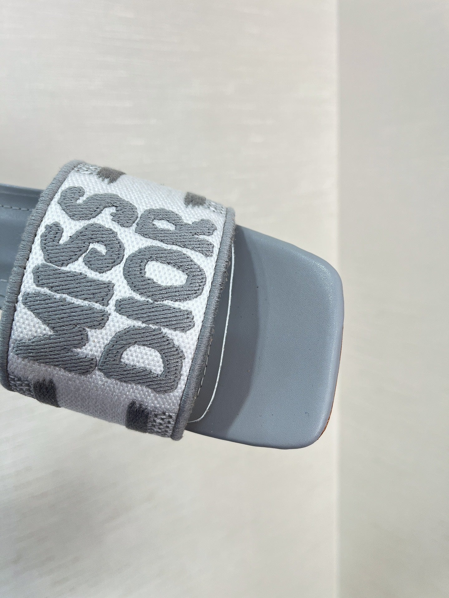 dway heeled slide 35 embroidered cotton grey miss cd alllover motif