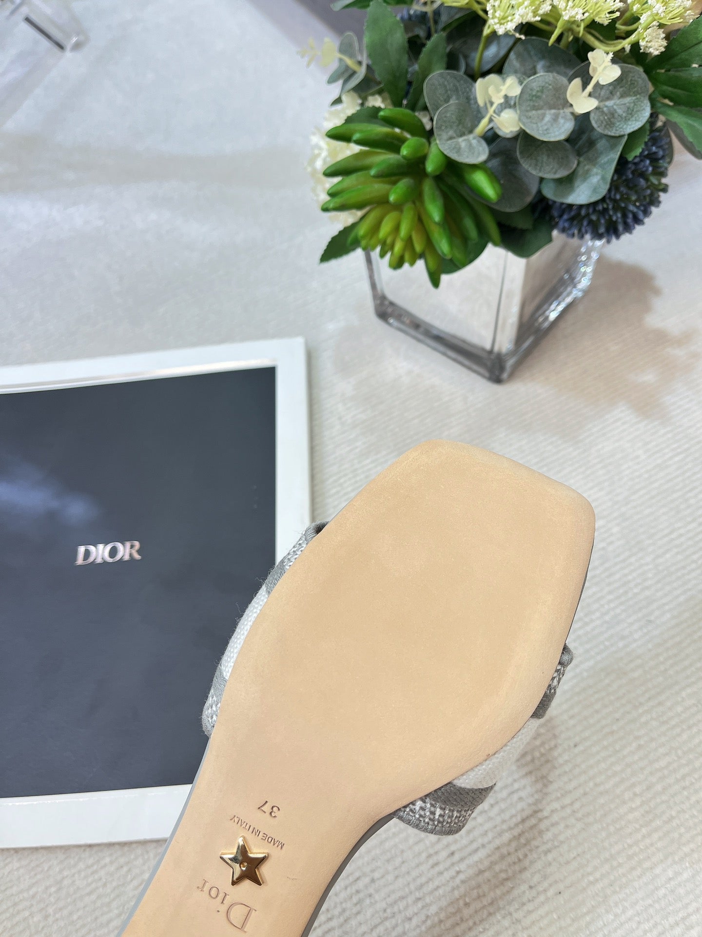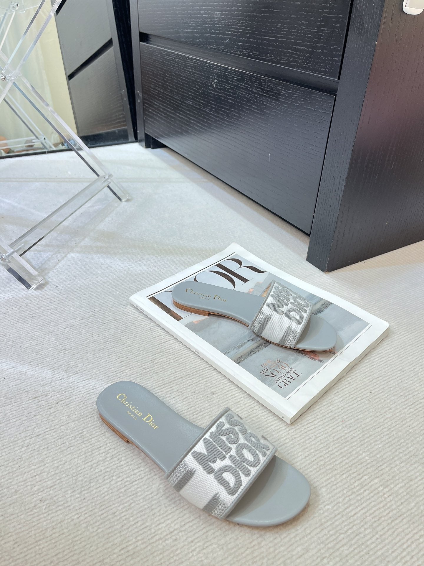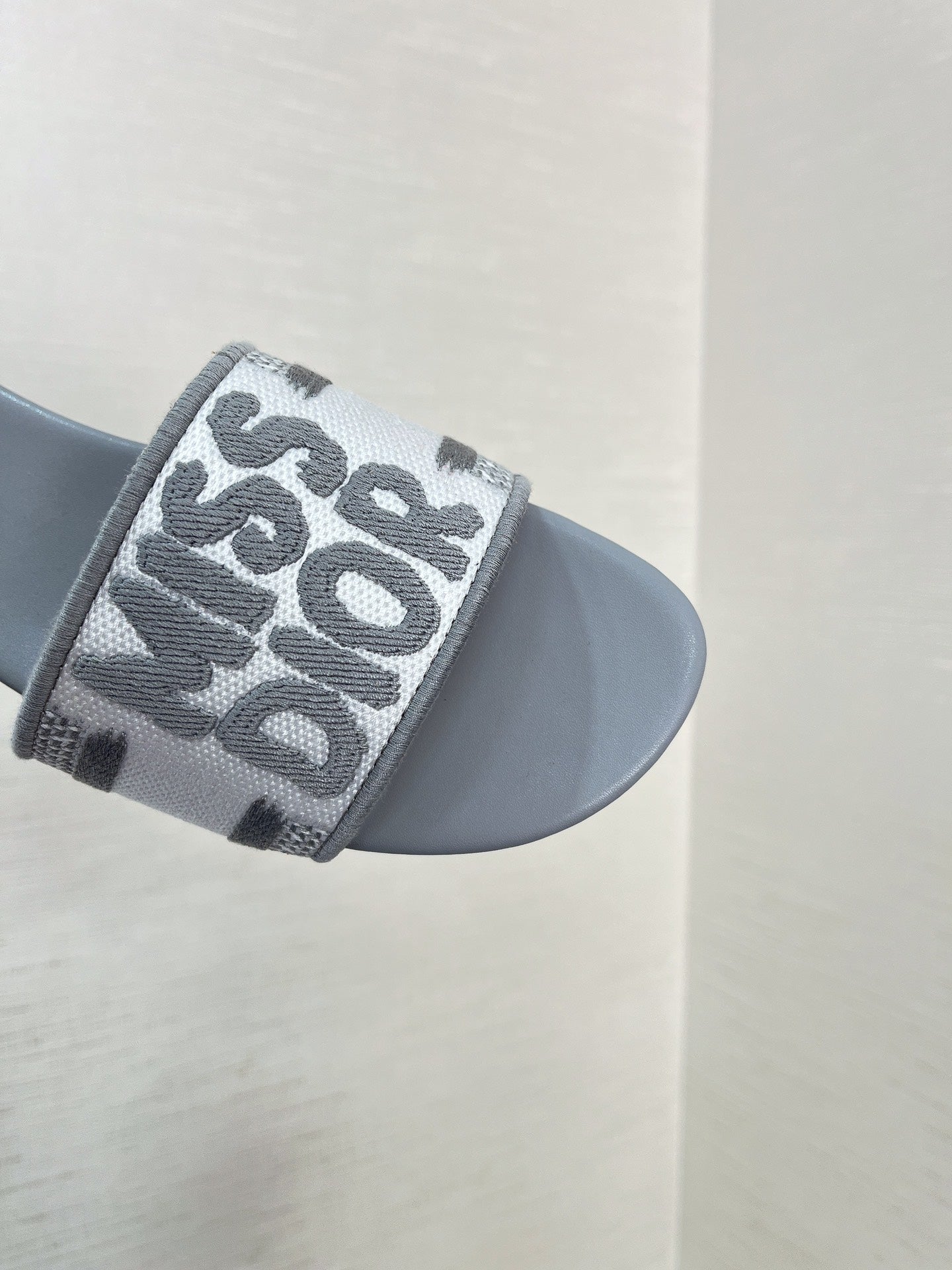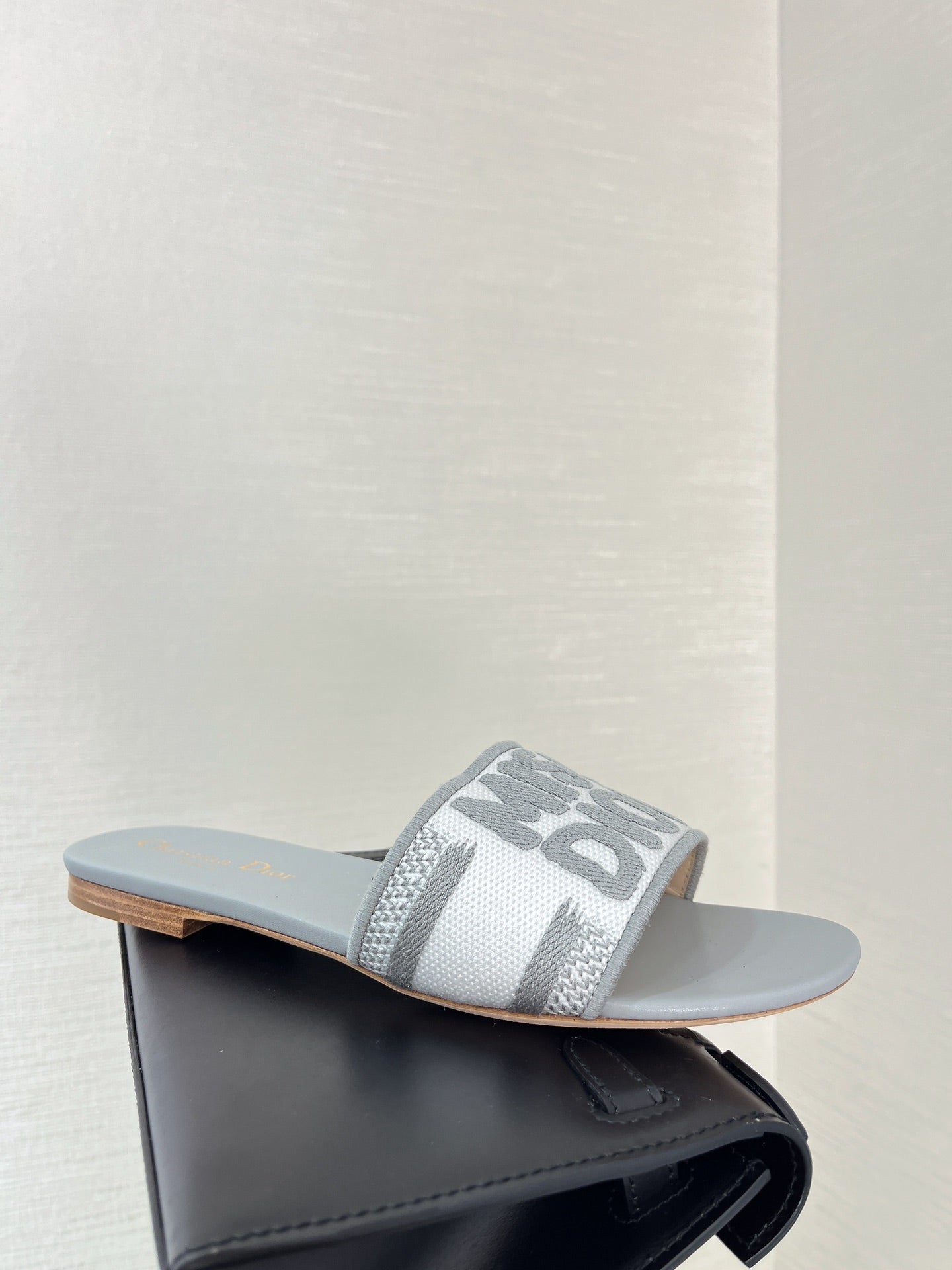 dway heeled slide 35 embroidered cotton grey miss cd alllover motif