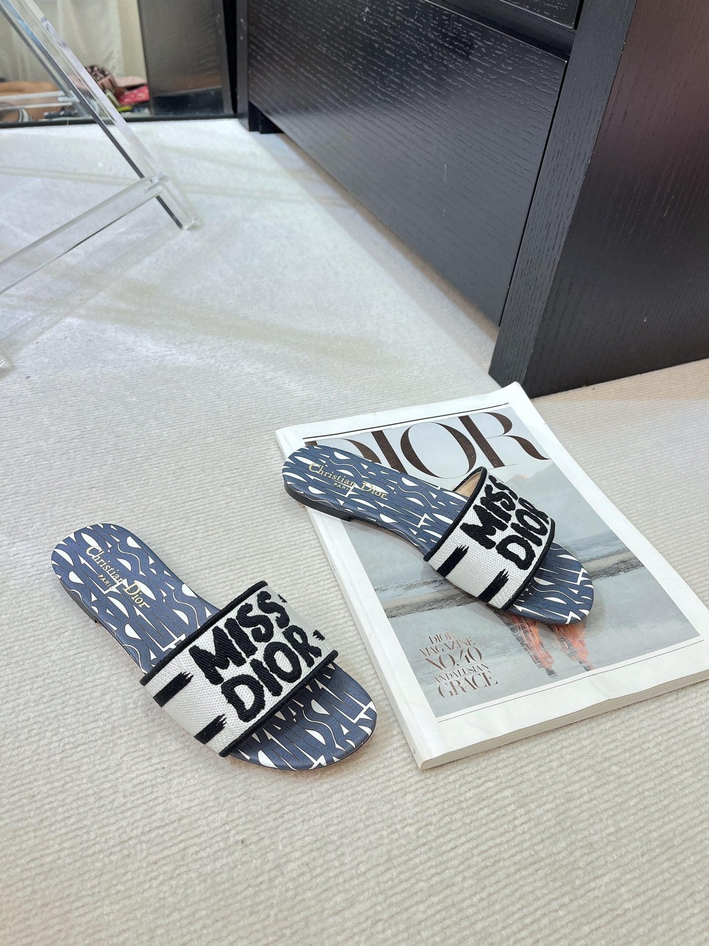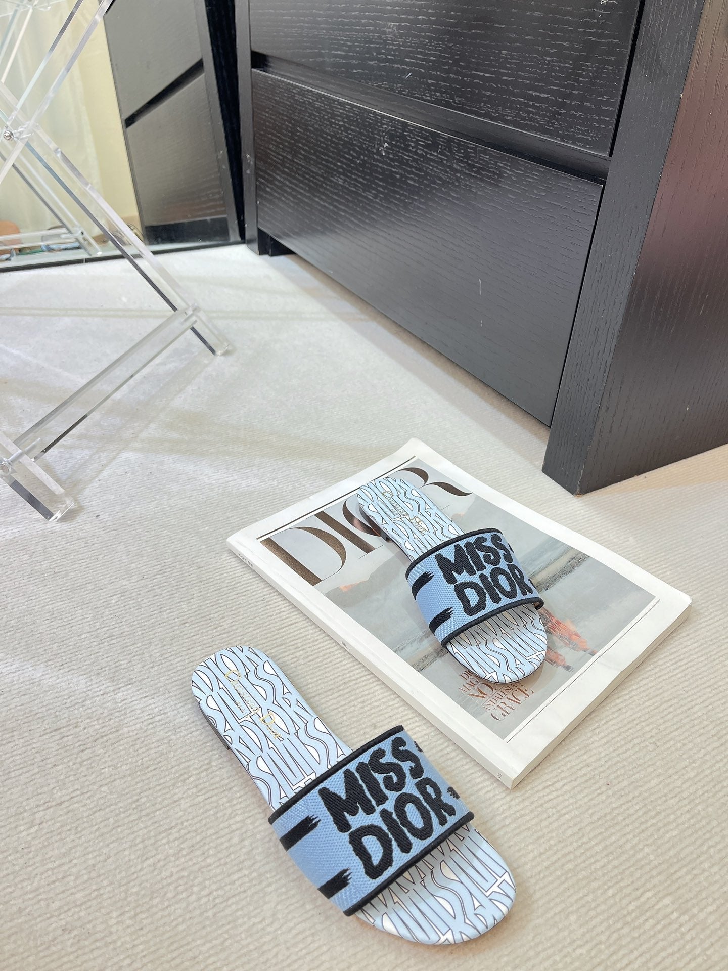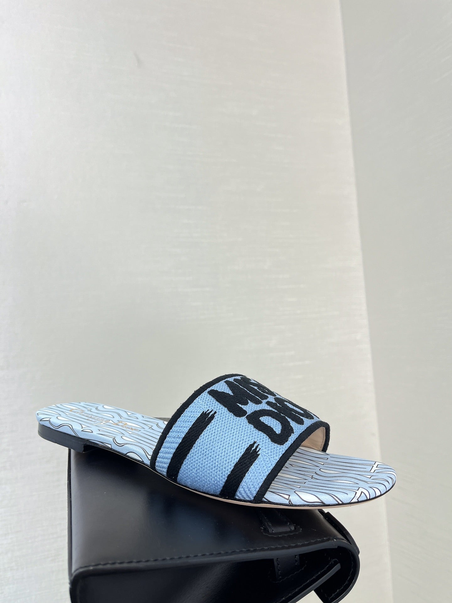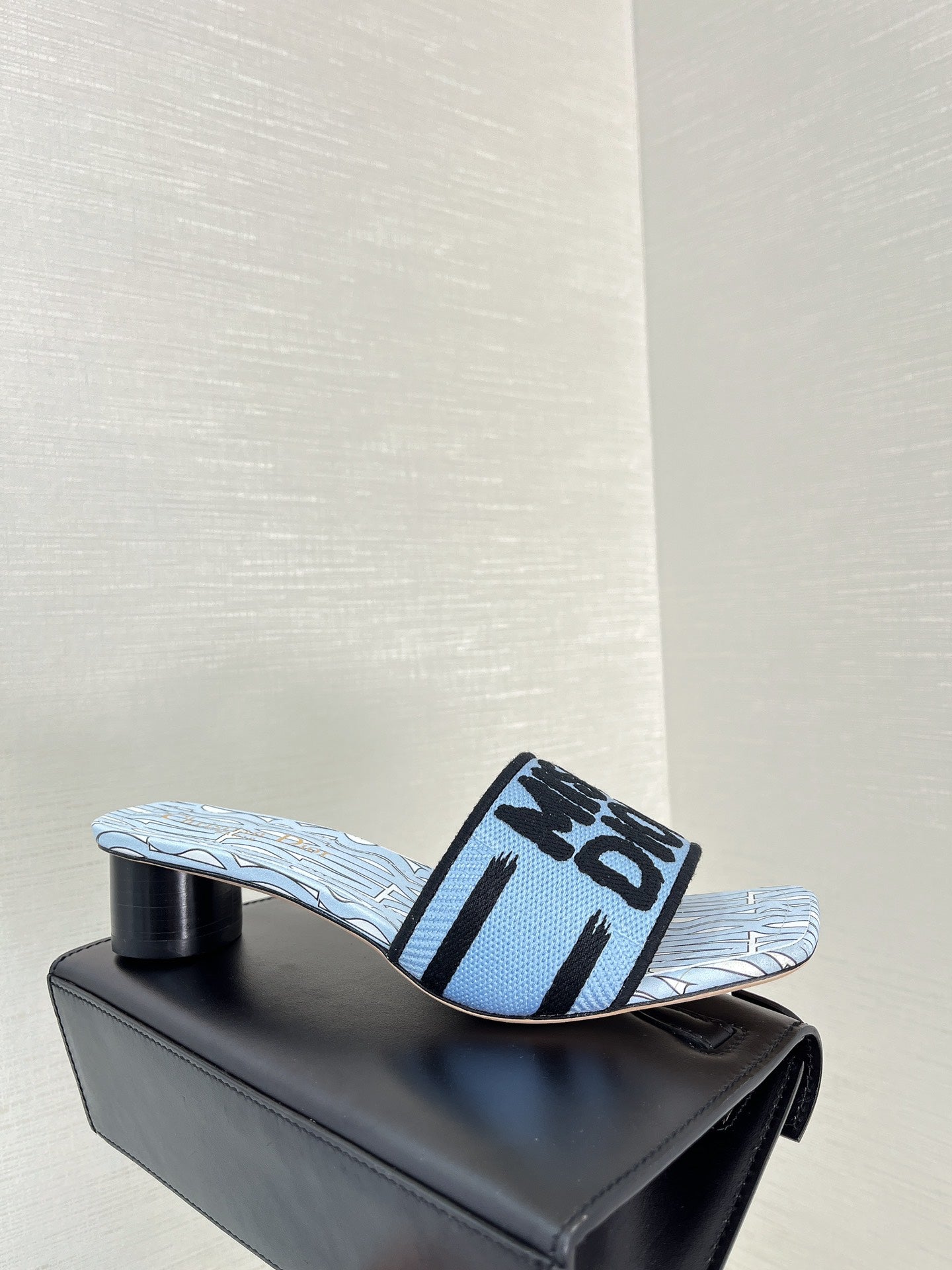dway heeled slide 35 embroidered cotton cloud blue miss cd alllover motif