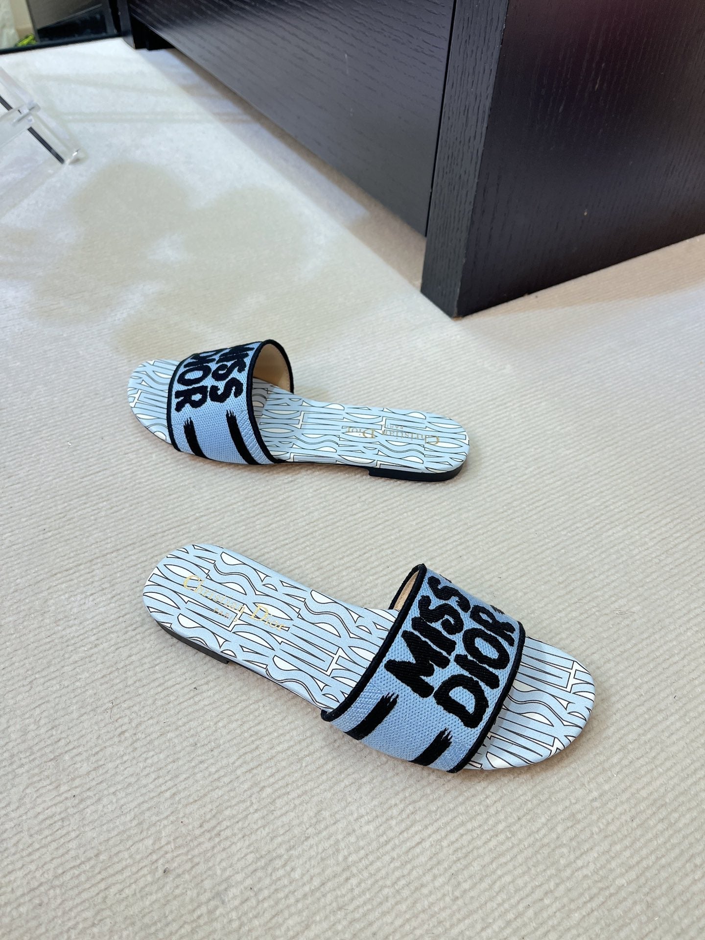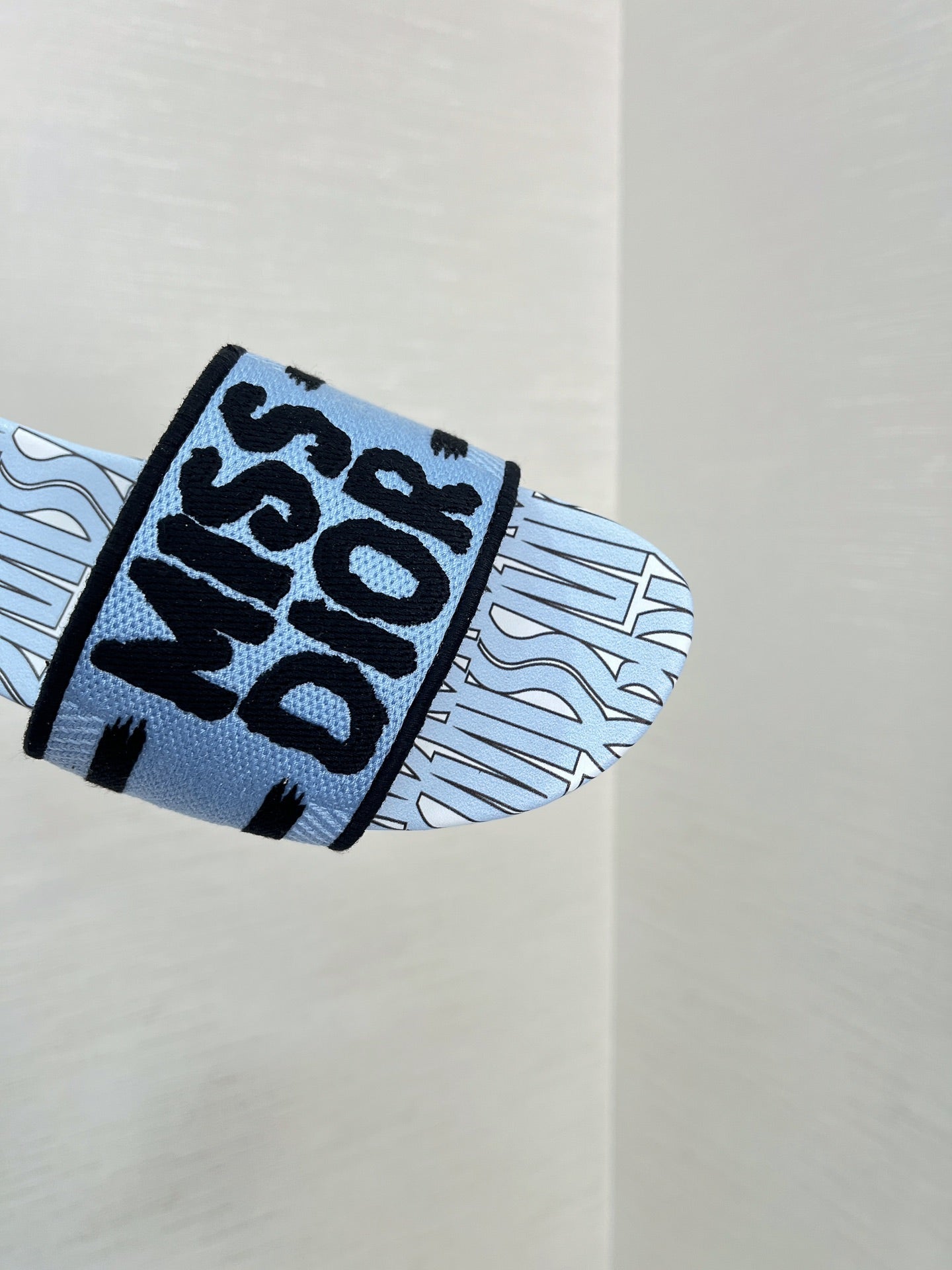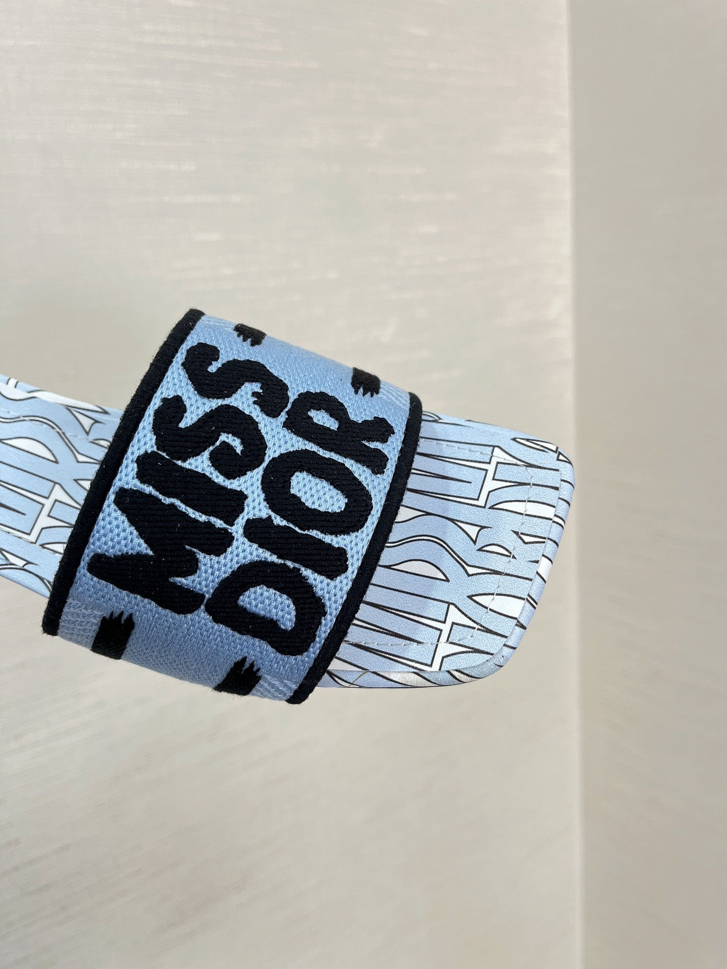 dway slide embroidered cotton cloud blue miss cd alllover motif