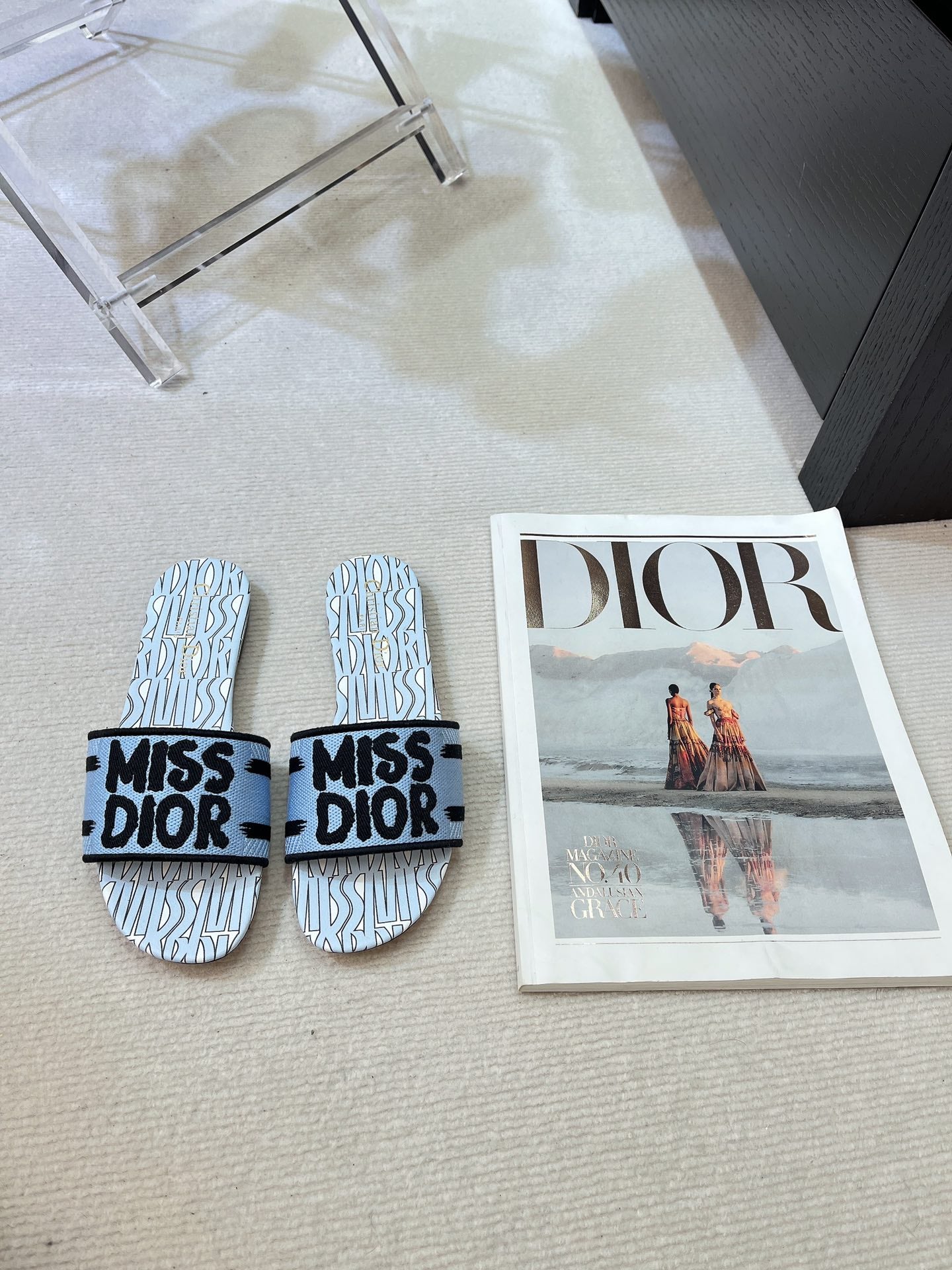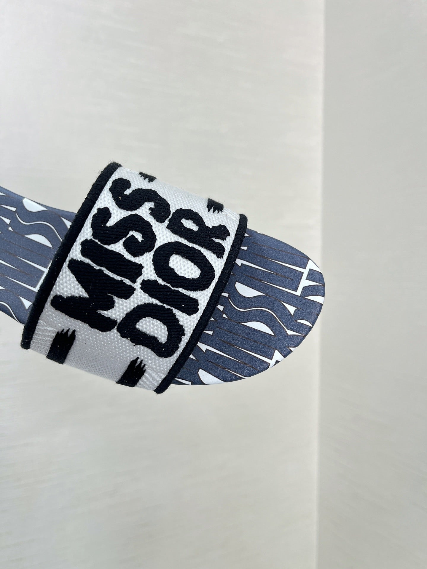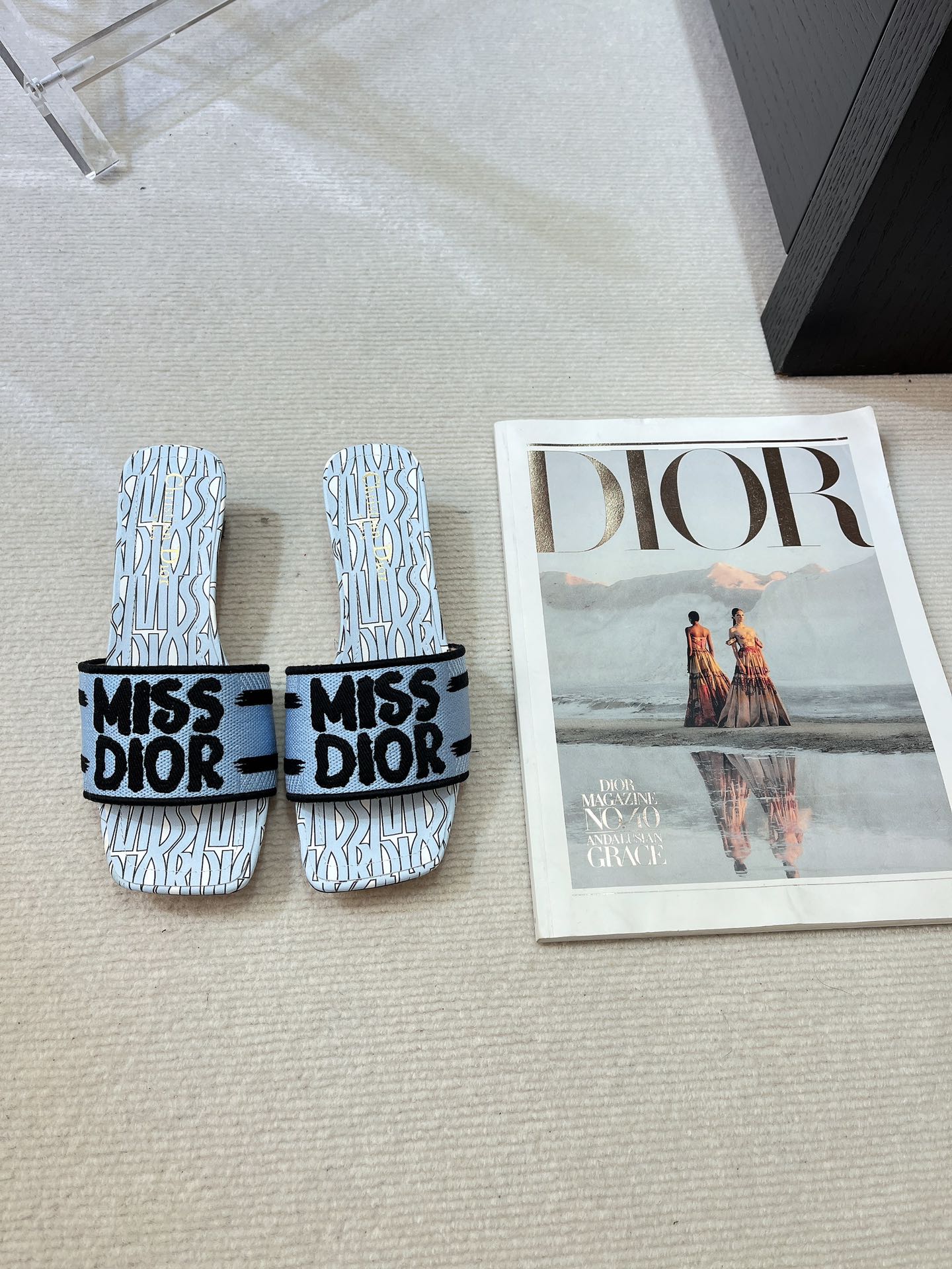dway slide embroidered cotton cloud blue miss cd alllover motif