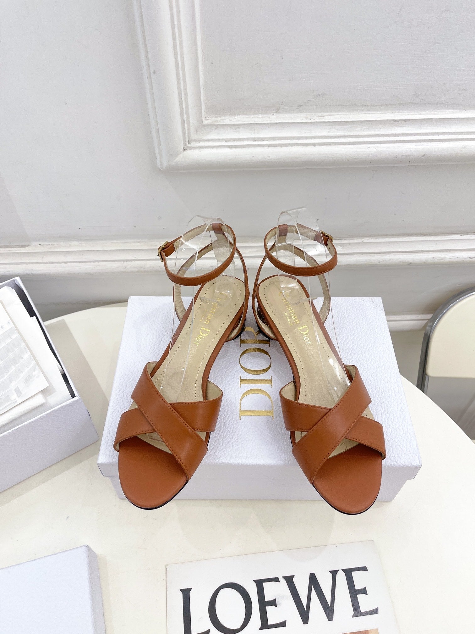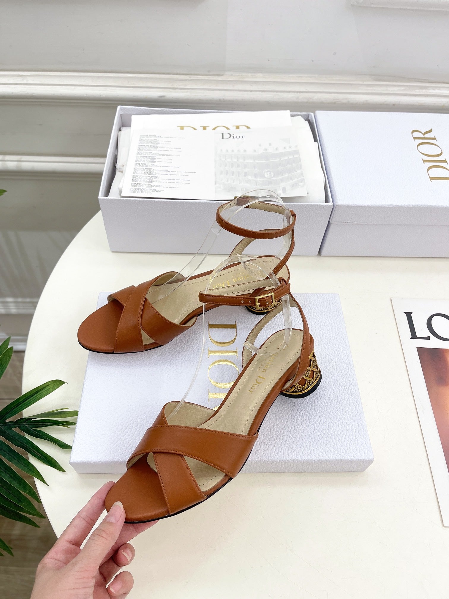 CD Icon Heeled Sandal 40mm Brown Calfskin