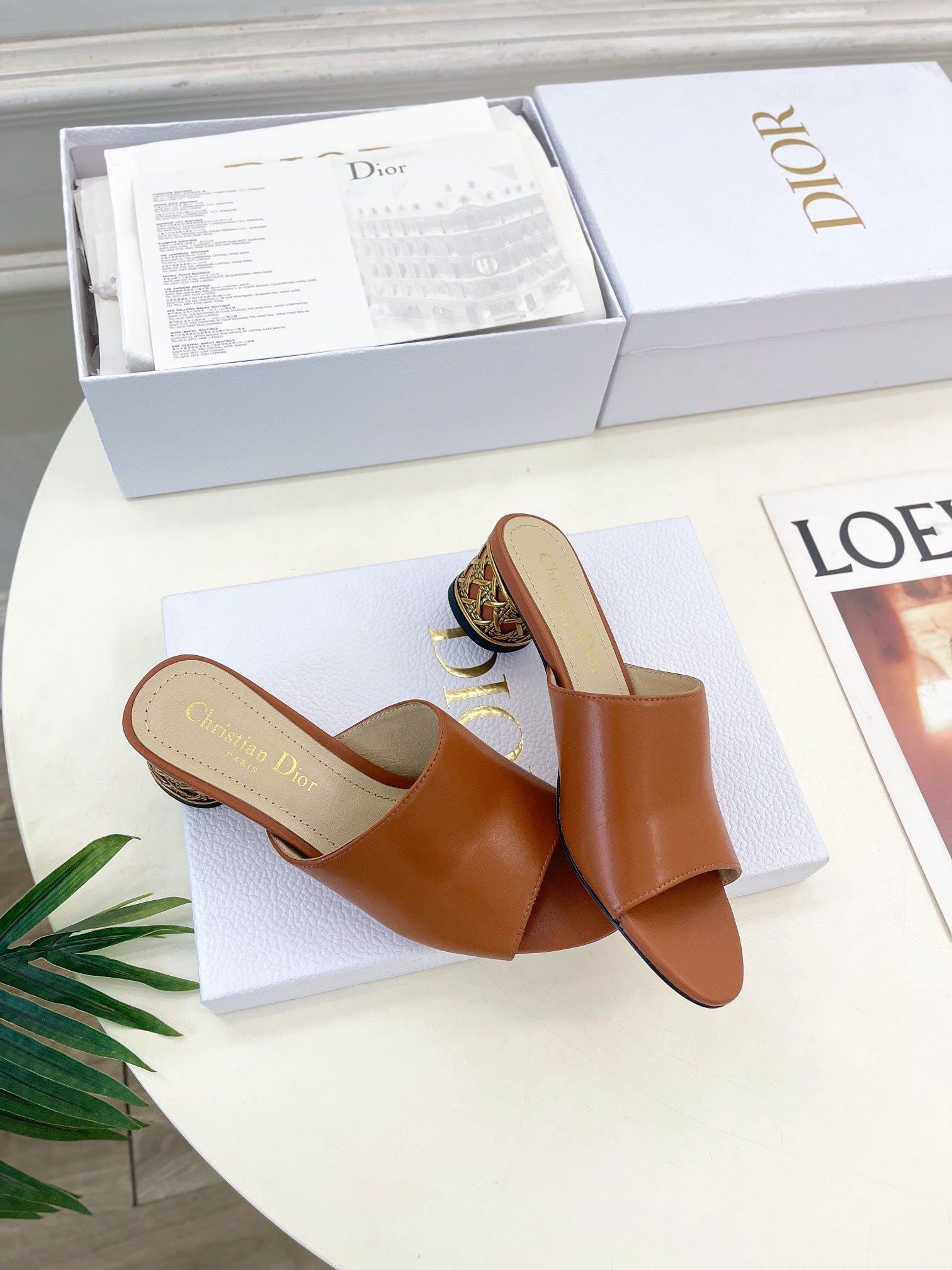 CD Icon Heeled Slide 80mm Brown Calfskin