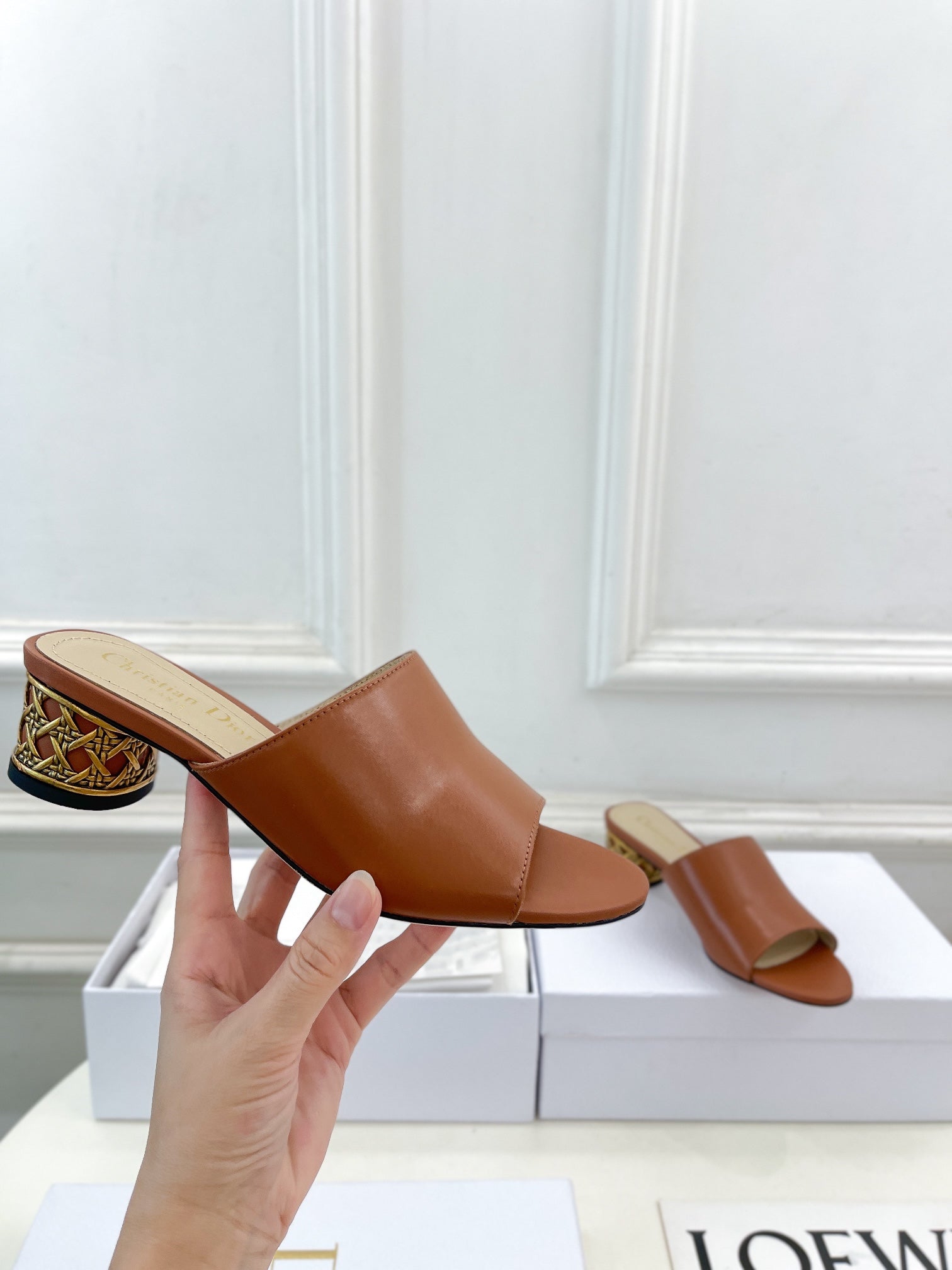 CD Icon Heeled Slide 40mm Brown Calfskin