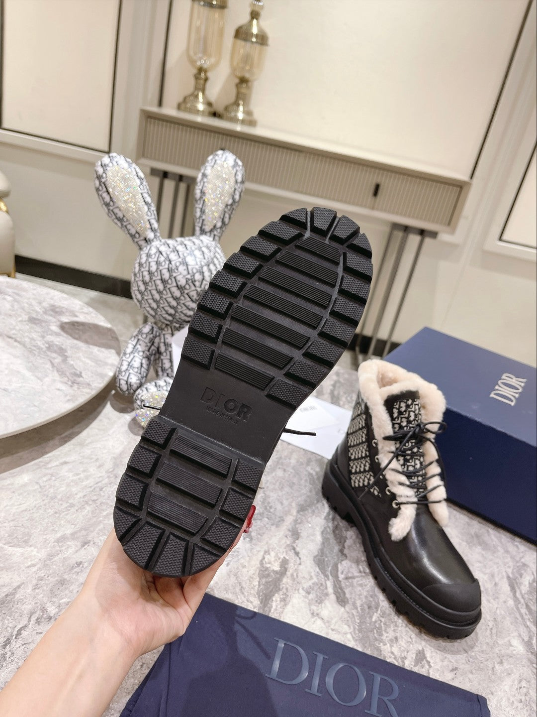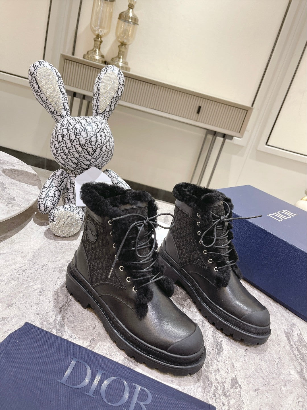 CD- D-Leader Ankle Boot 45mm Black Calfskin And Fleece Lining