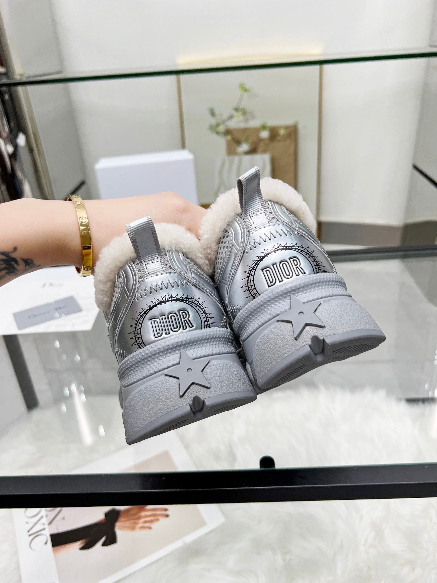 CD Chrono Sneaker Grey Wool Lining Mesh Fabric And Calfskin