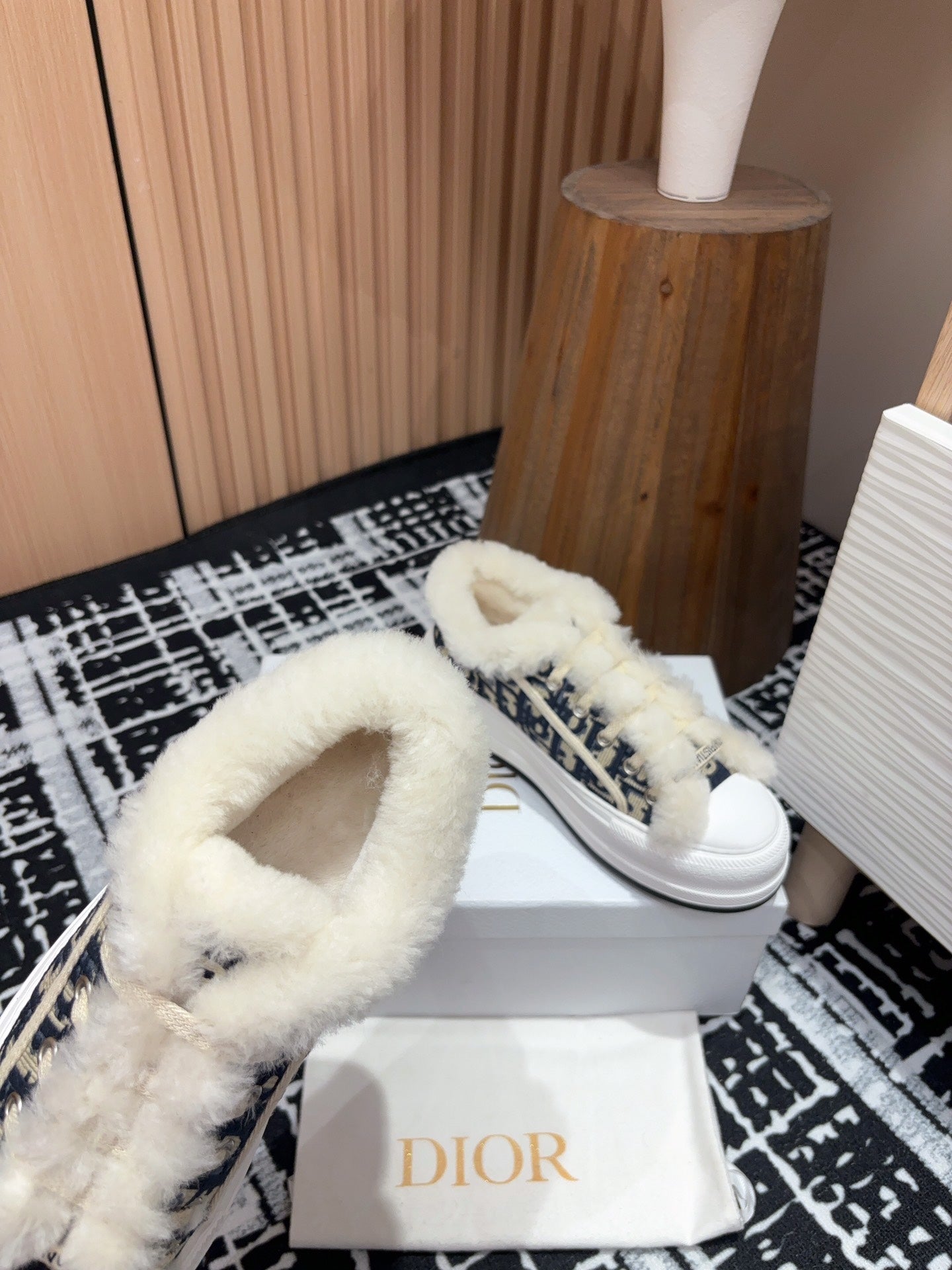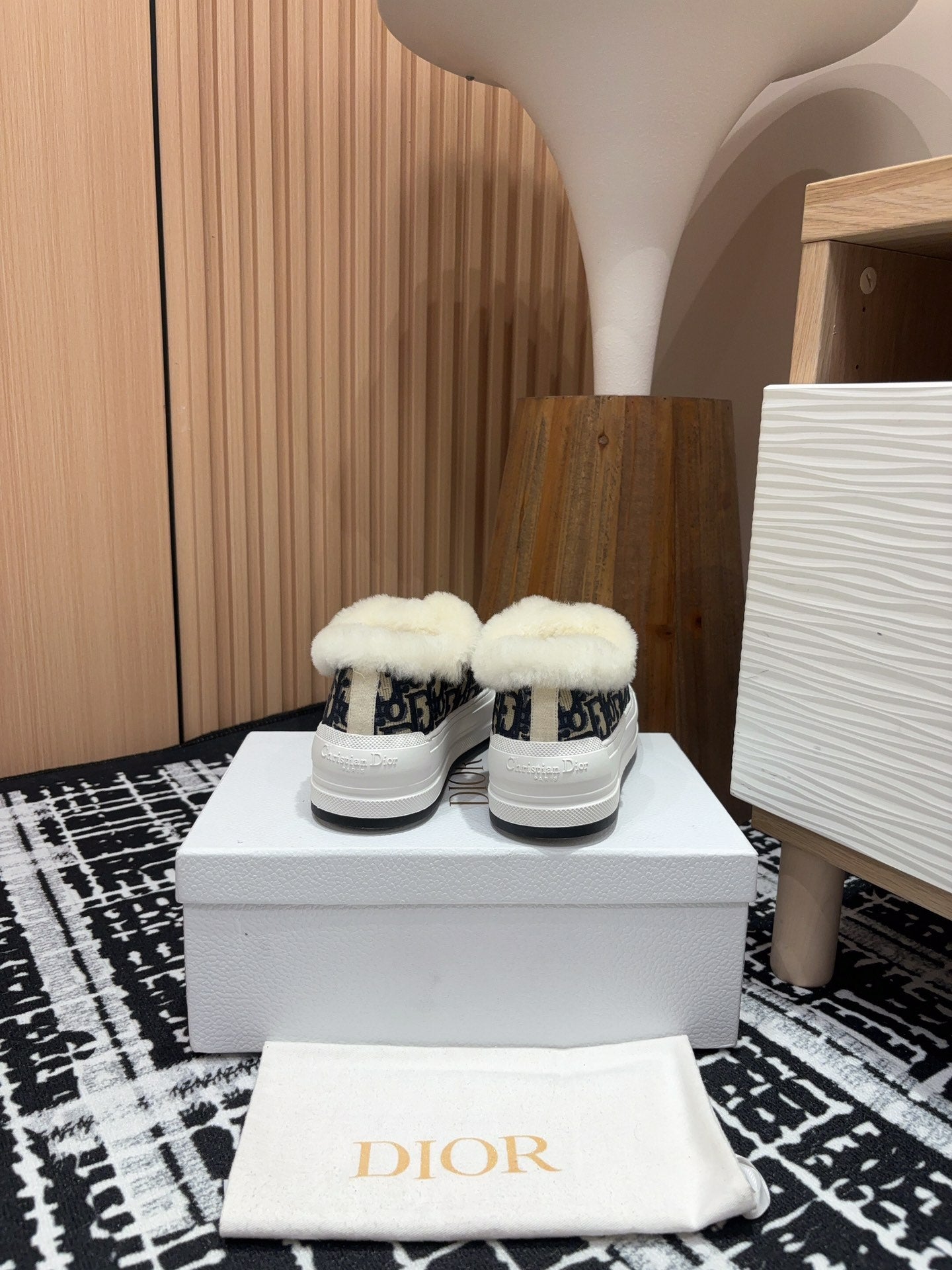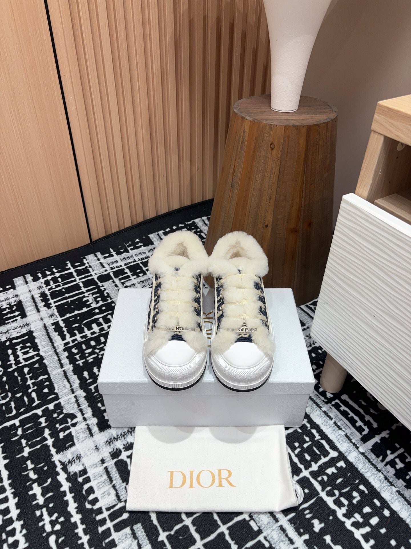 CD Explorer Ankle Boot 50mm Black White Fleece Lining Oblique Jacquard Fabric And Cowhide