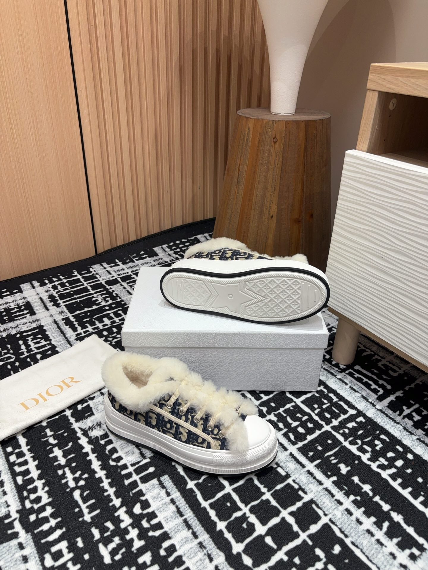 CD Walk'n'Dior Platform Sneaker Black Mix charcoal Blue Oblique Jacquard And Fleece Lining