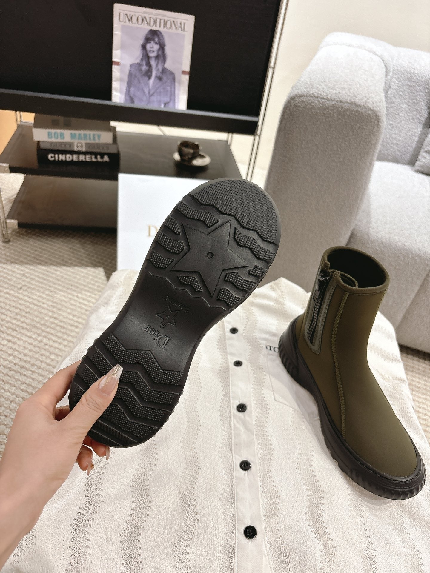 CD Ankle Boots Yellow Beige Elastic Fabric