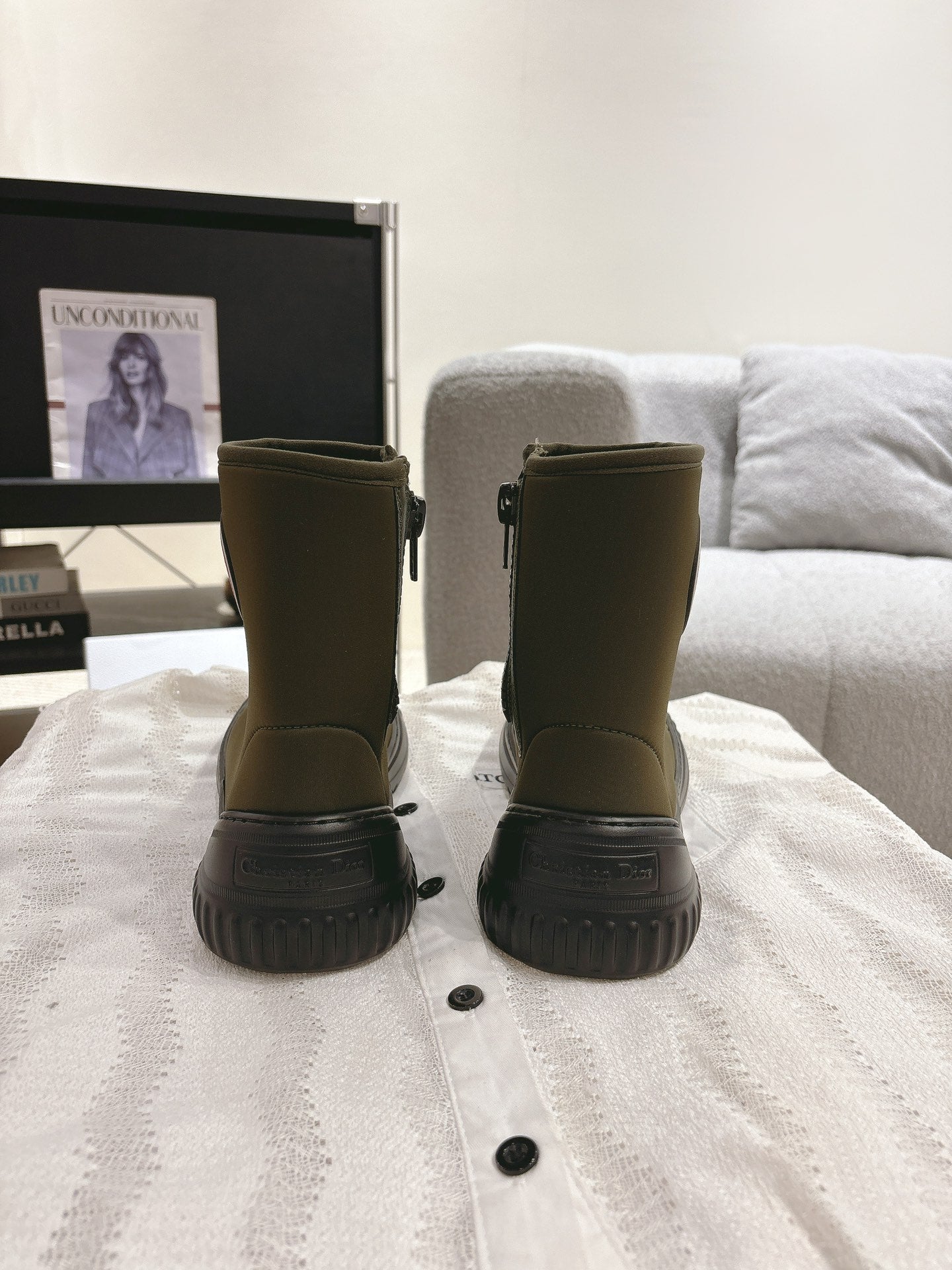 CD Ankle Boots Brown Moss Green Elastic Fabric