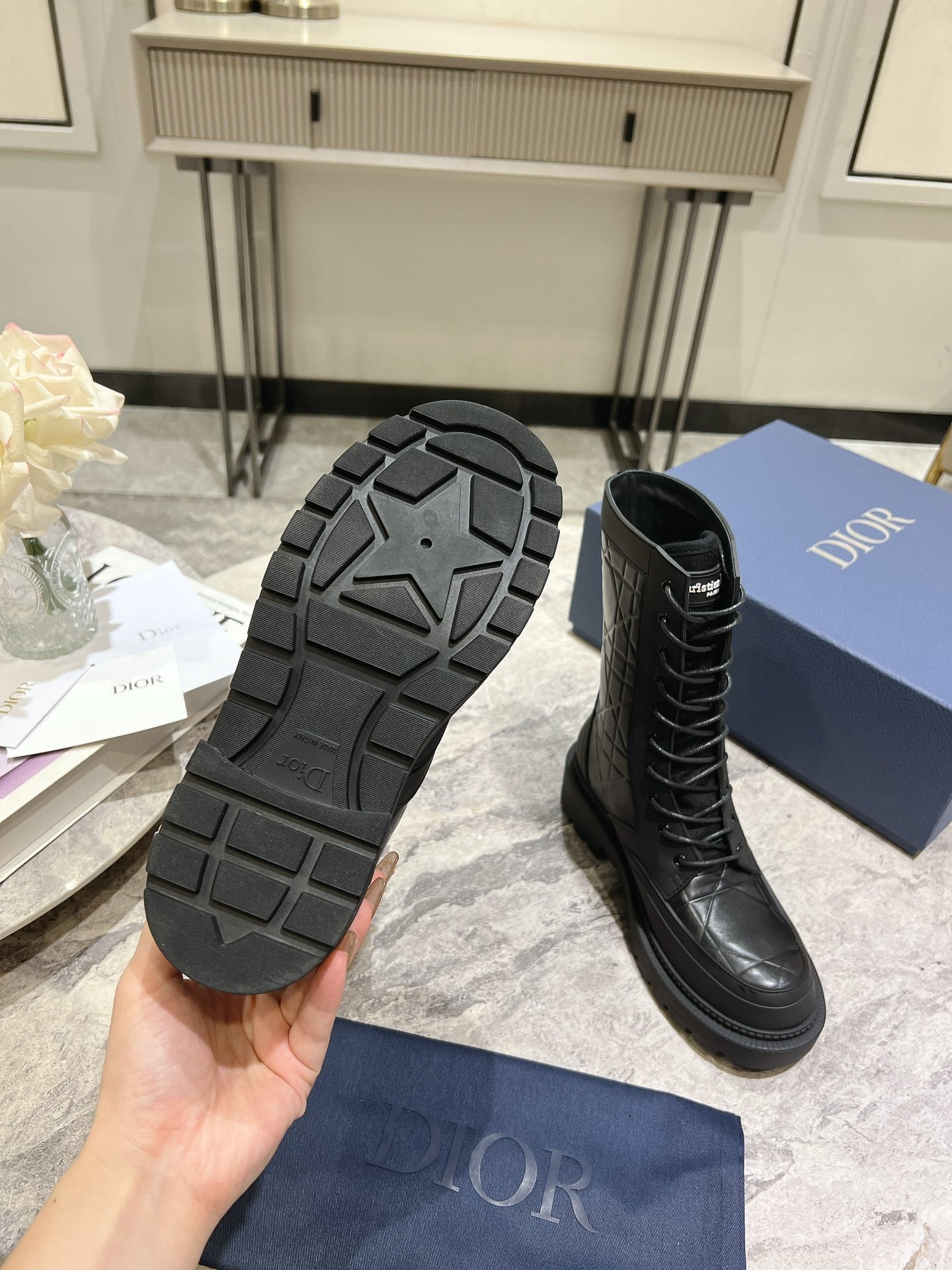 CD D-Major Boot Black Mix Beige Calfskin And Canvas