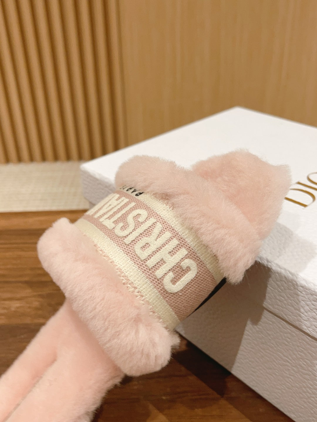 CD Dway Slide White Pink Fleece Lining And Canvas Fabric