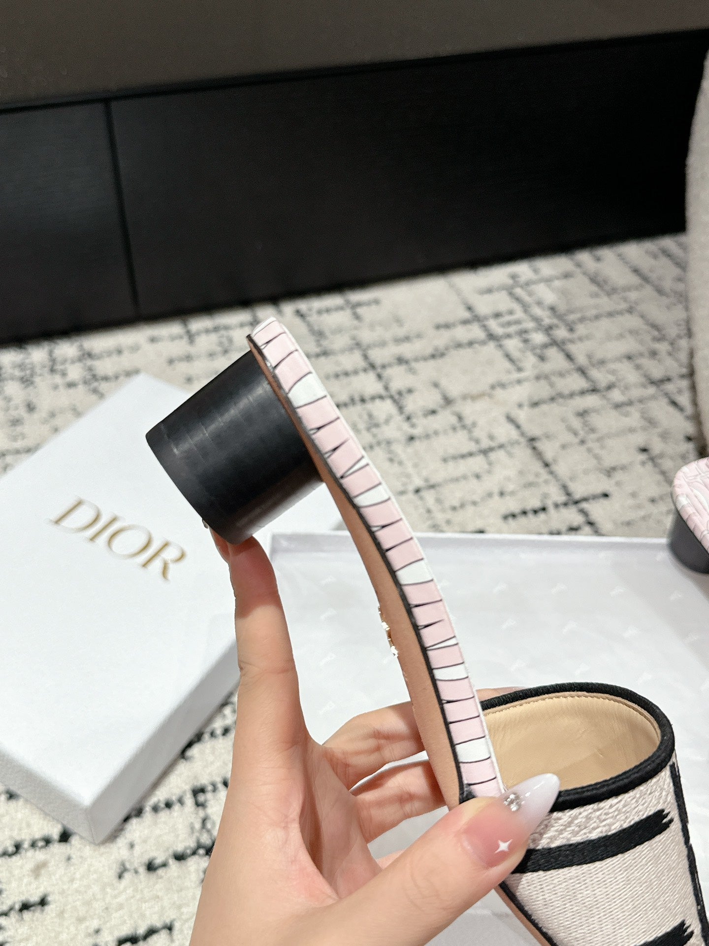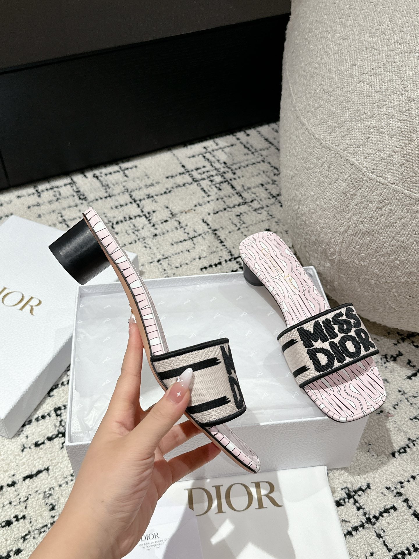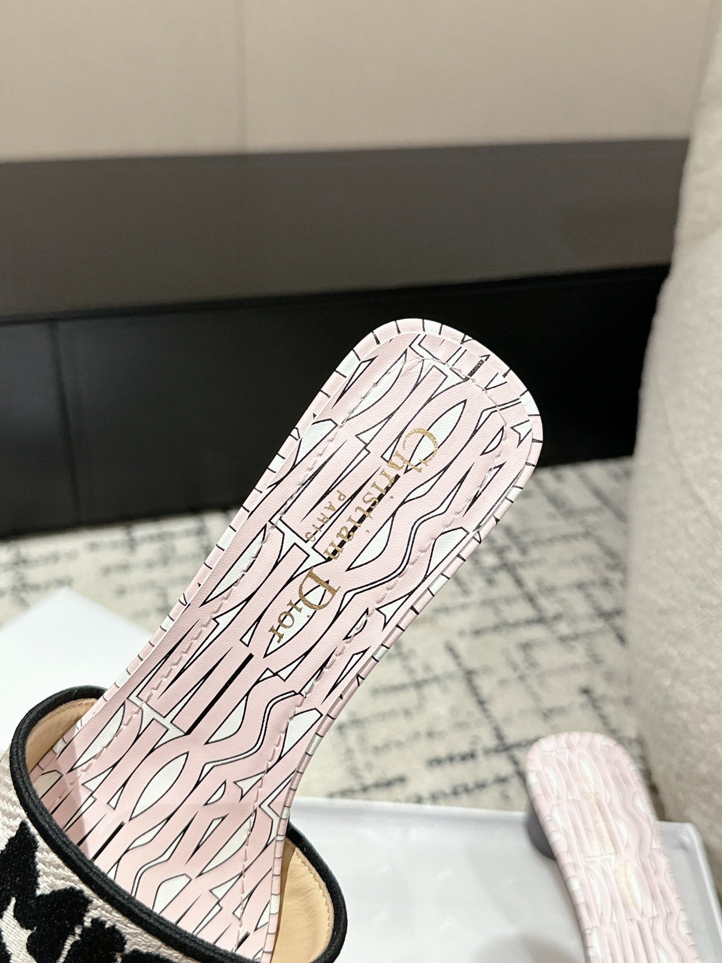 CD Dway Heeled Slide Light Pink Black Embroidered Cotton