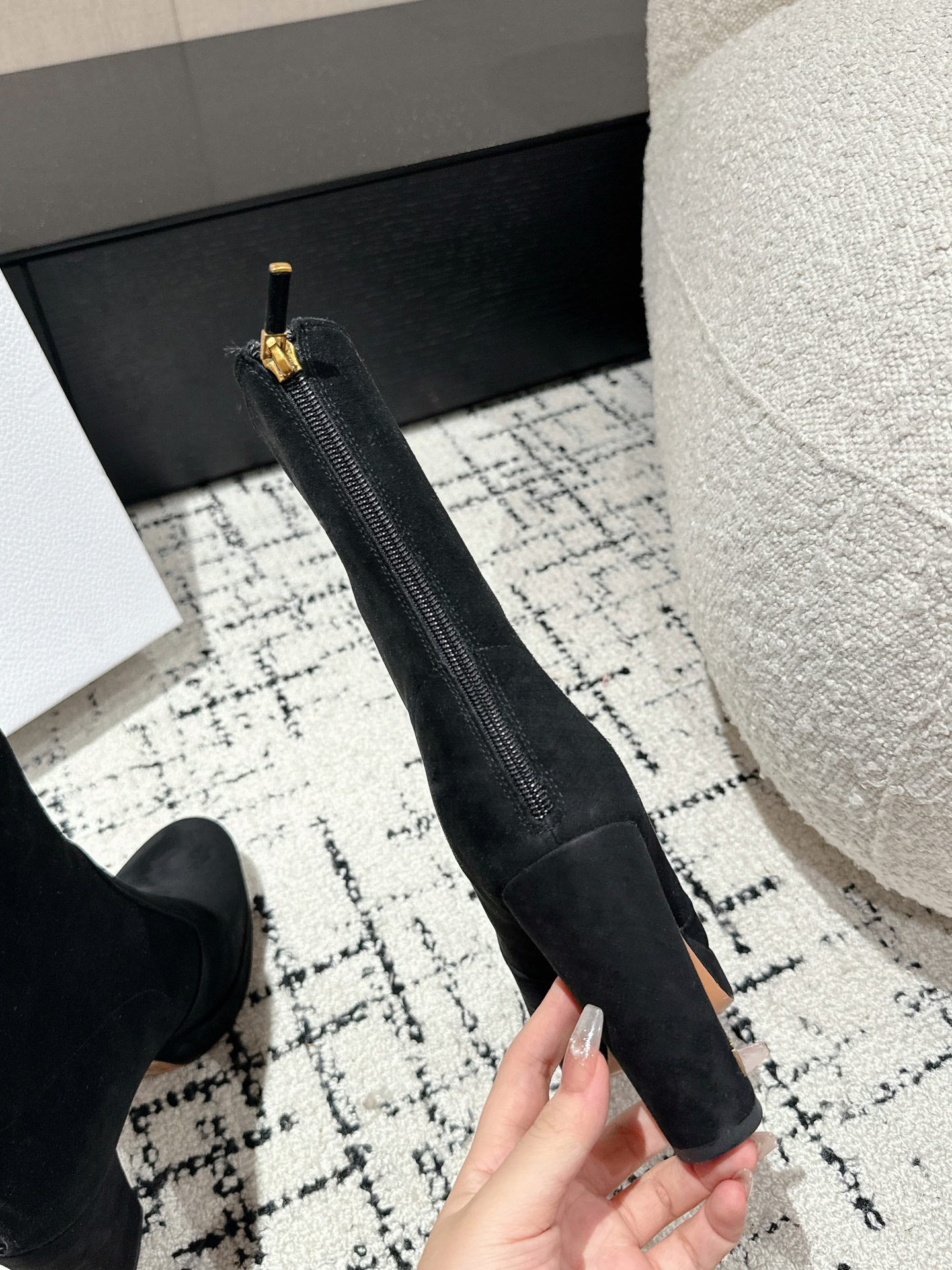 CD Naughtily-D Heeled High Boots Black Transparent Mesh Roses Embroidery And Suede