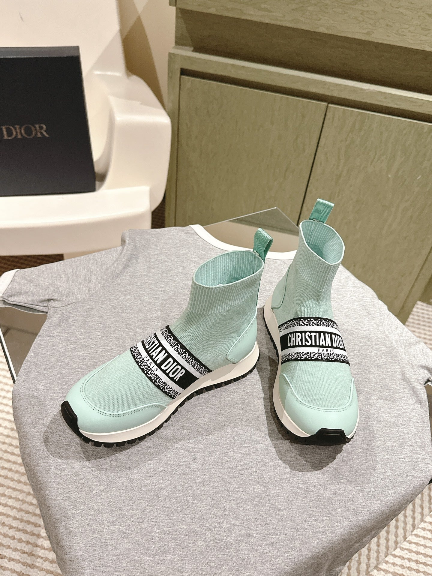 CD High-Top Sneaker 40mm Jade Green Stretch Wool And Lambskin