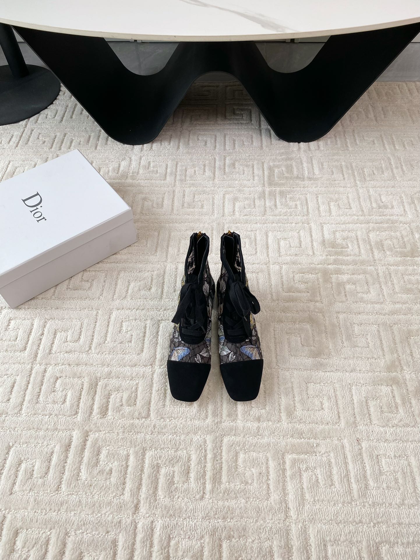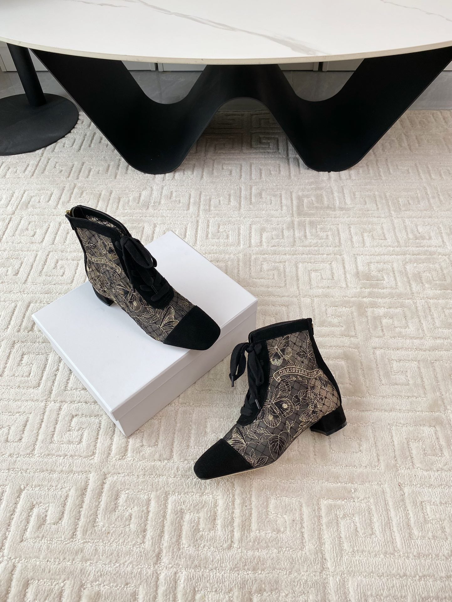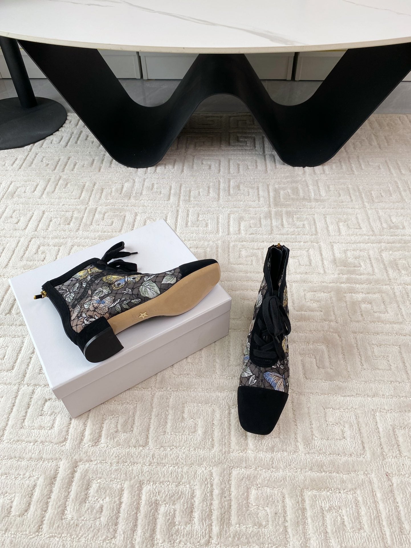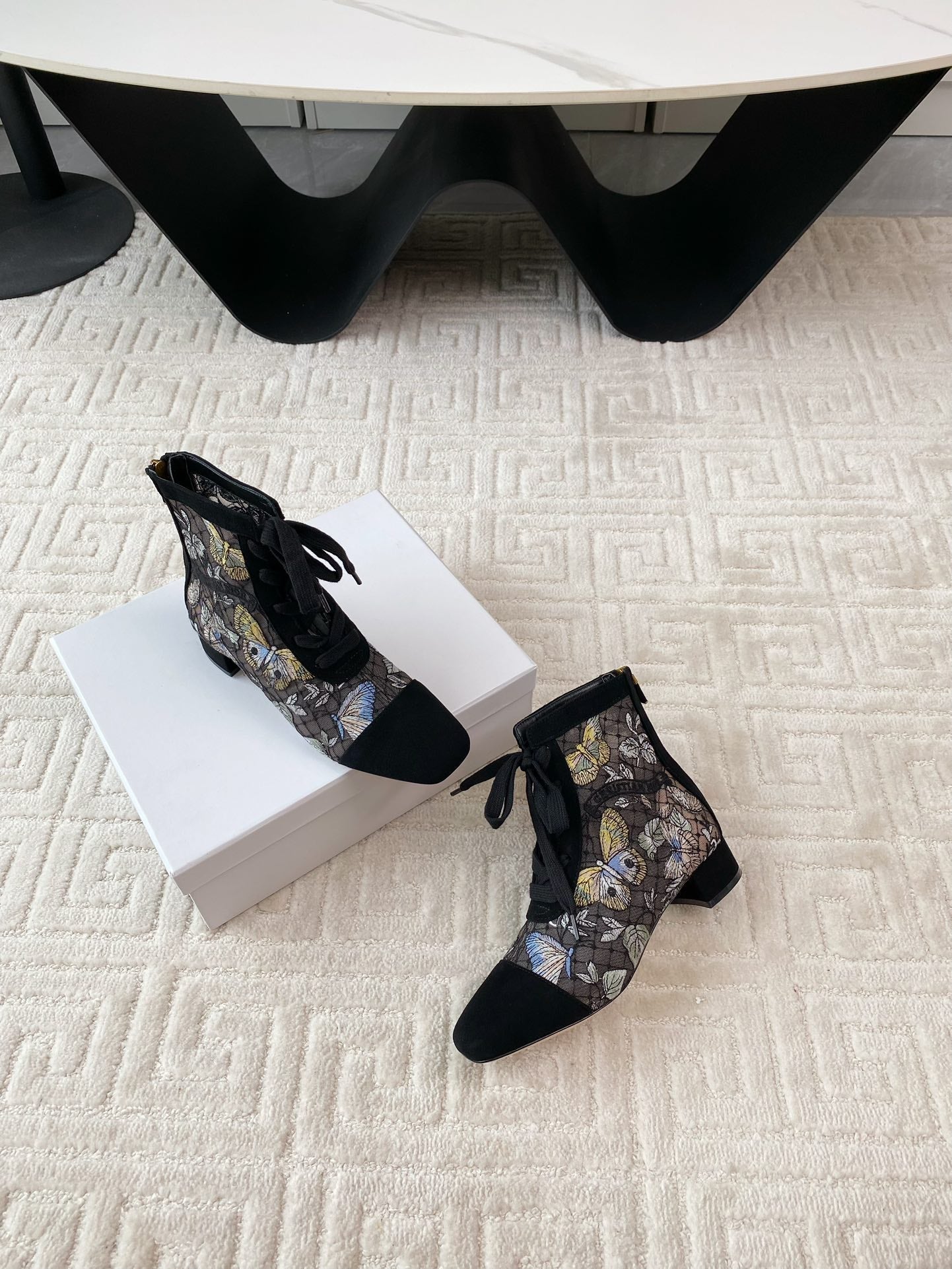CD Naughtily-D Heeled Ankle Boot Black Transparent Mesh Butterfly And Suede