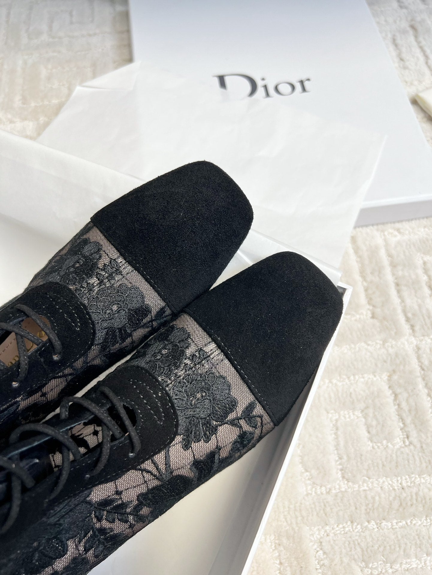 CD Naughtily-D Heeled Ankle Boot Black Transparent Mesh Roses Embroidery And Suede
