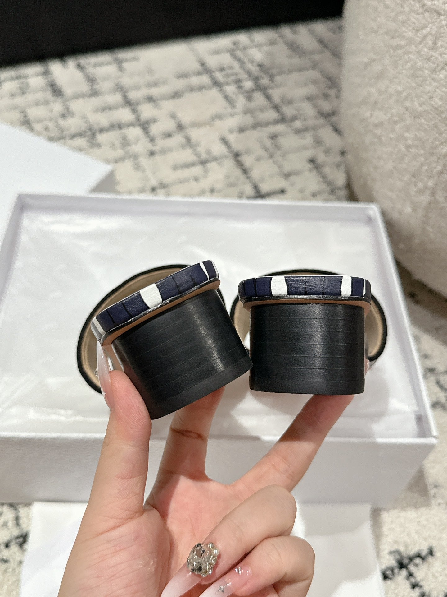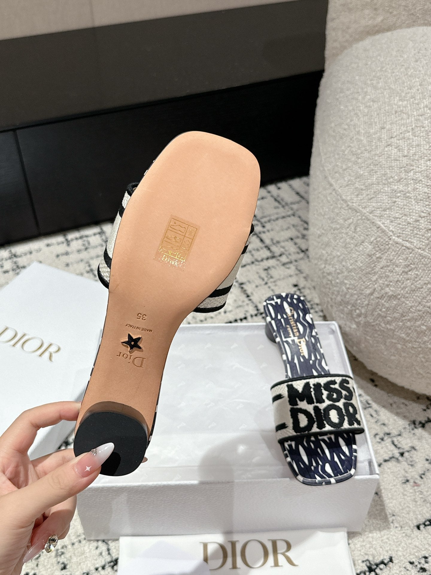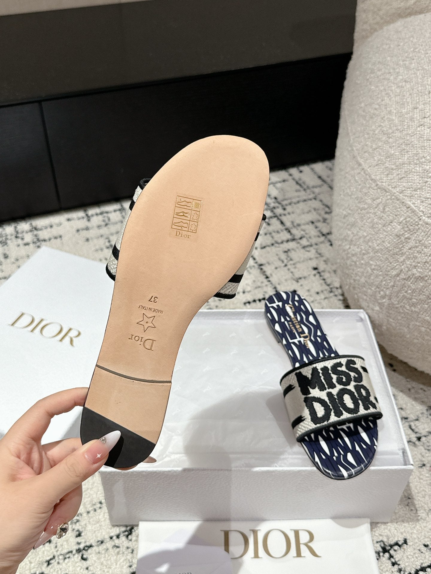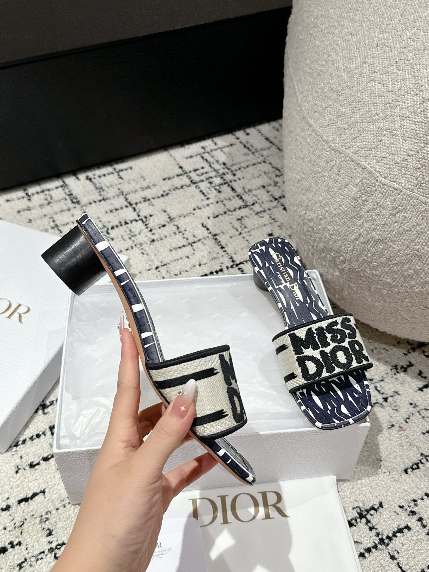 CD Dway Slide Deep Blue Mix White Black Embroidered Cotton