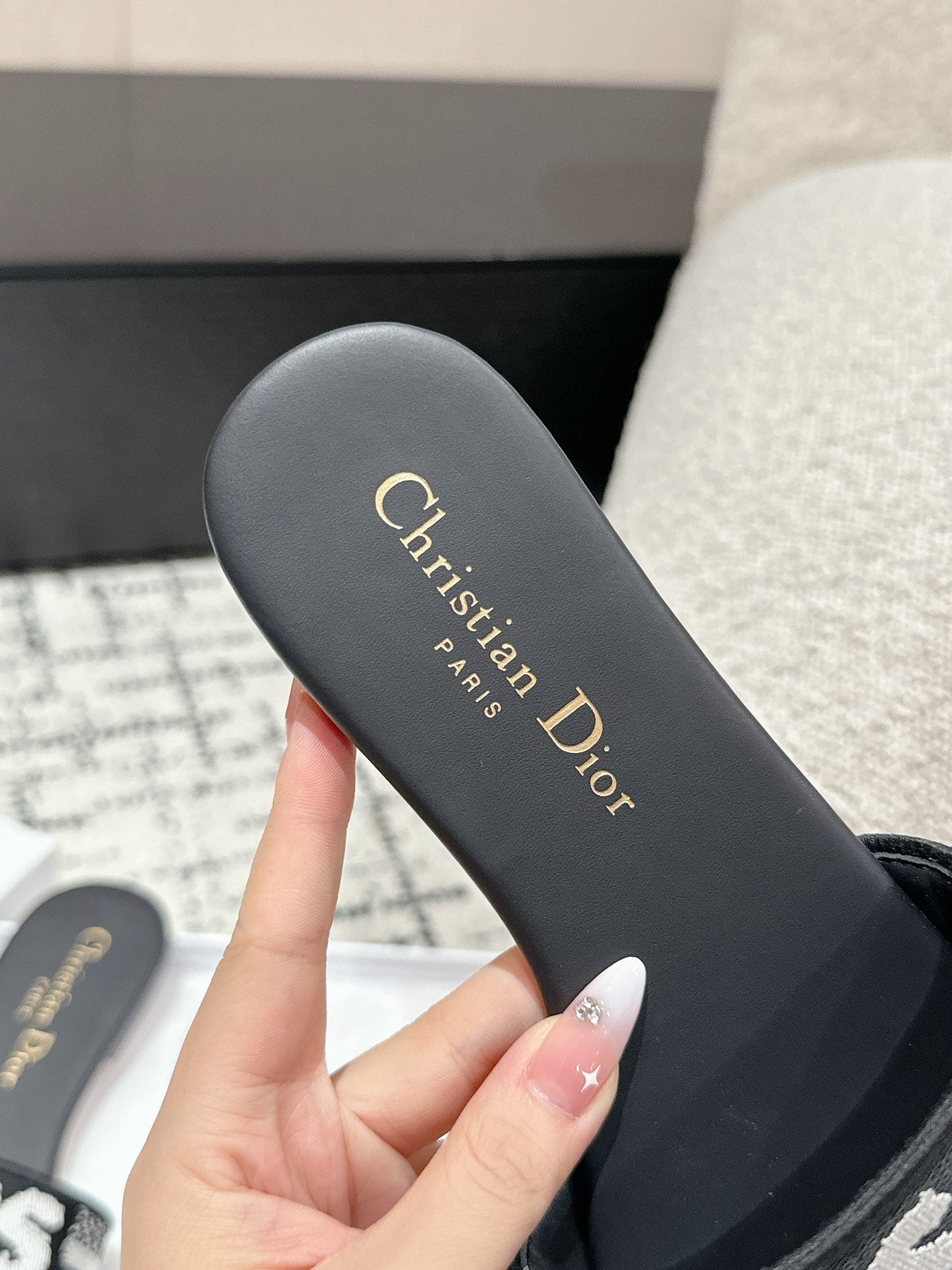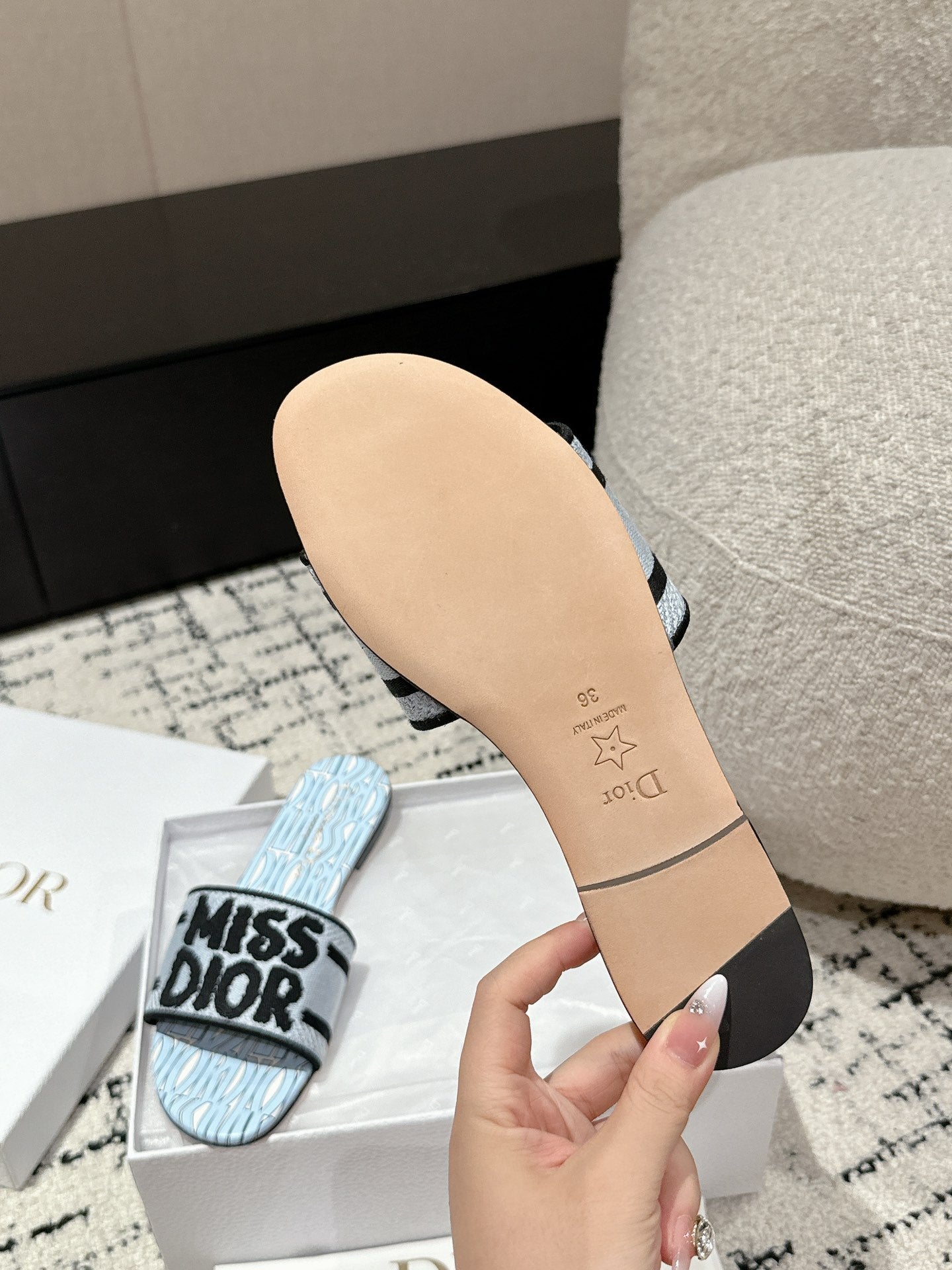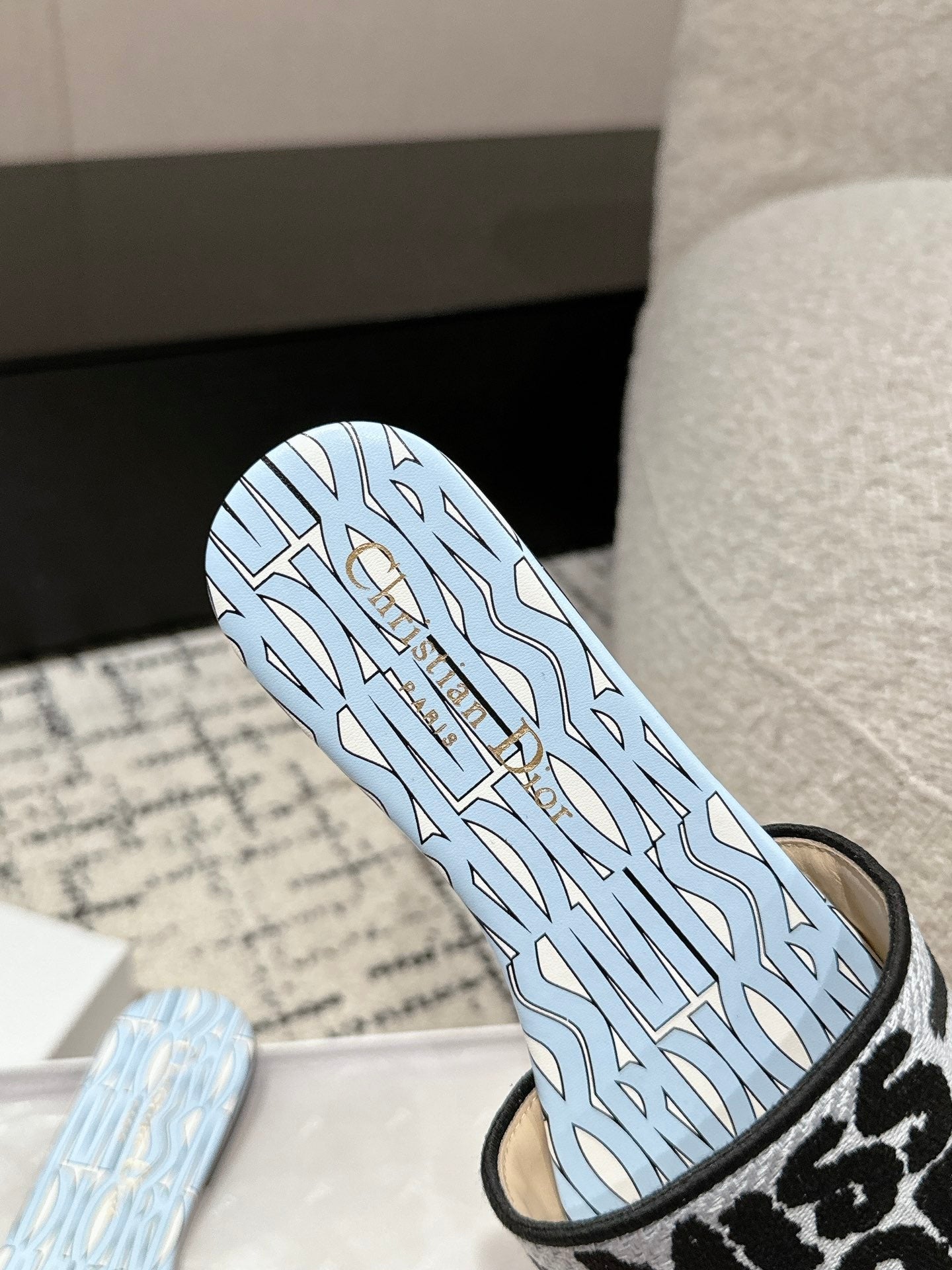 CD Dway Slide Blue Black Embroidered Cotton