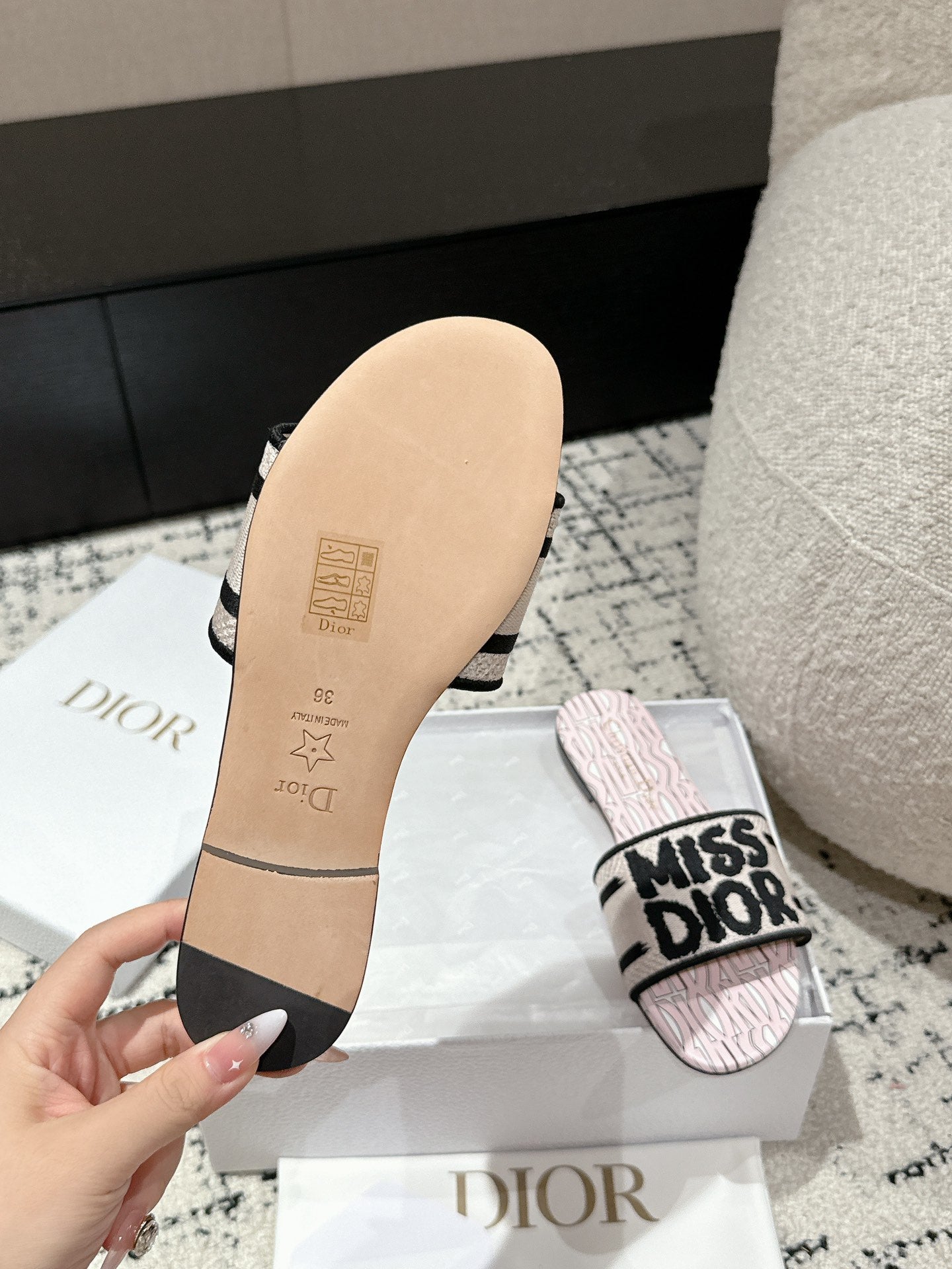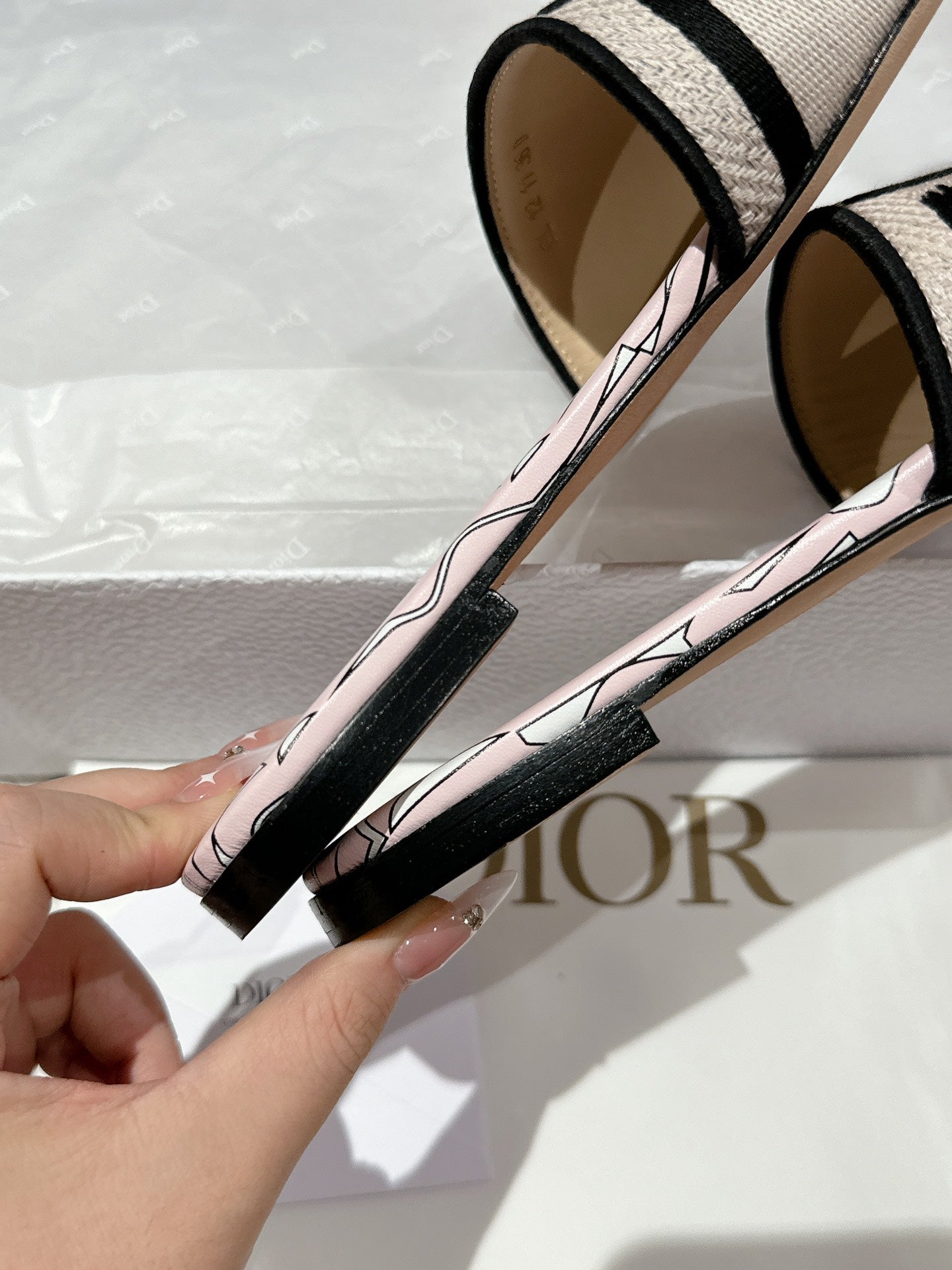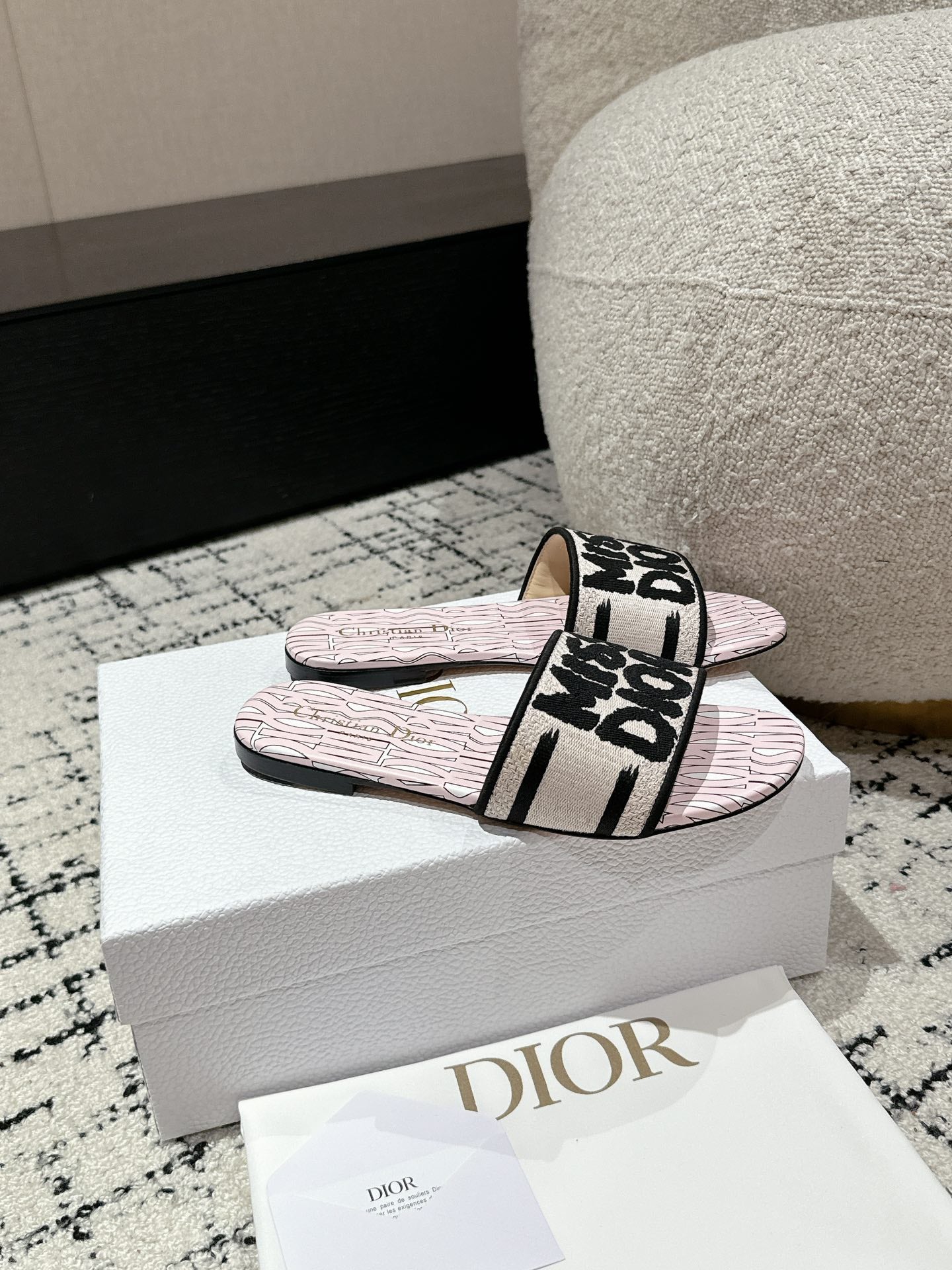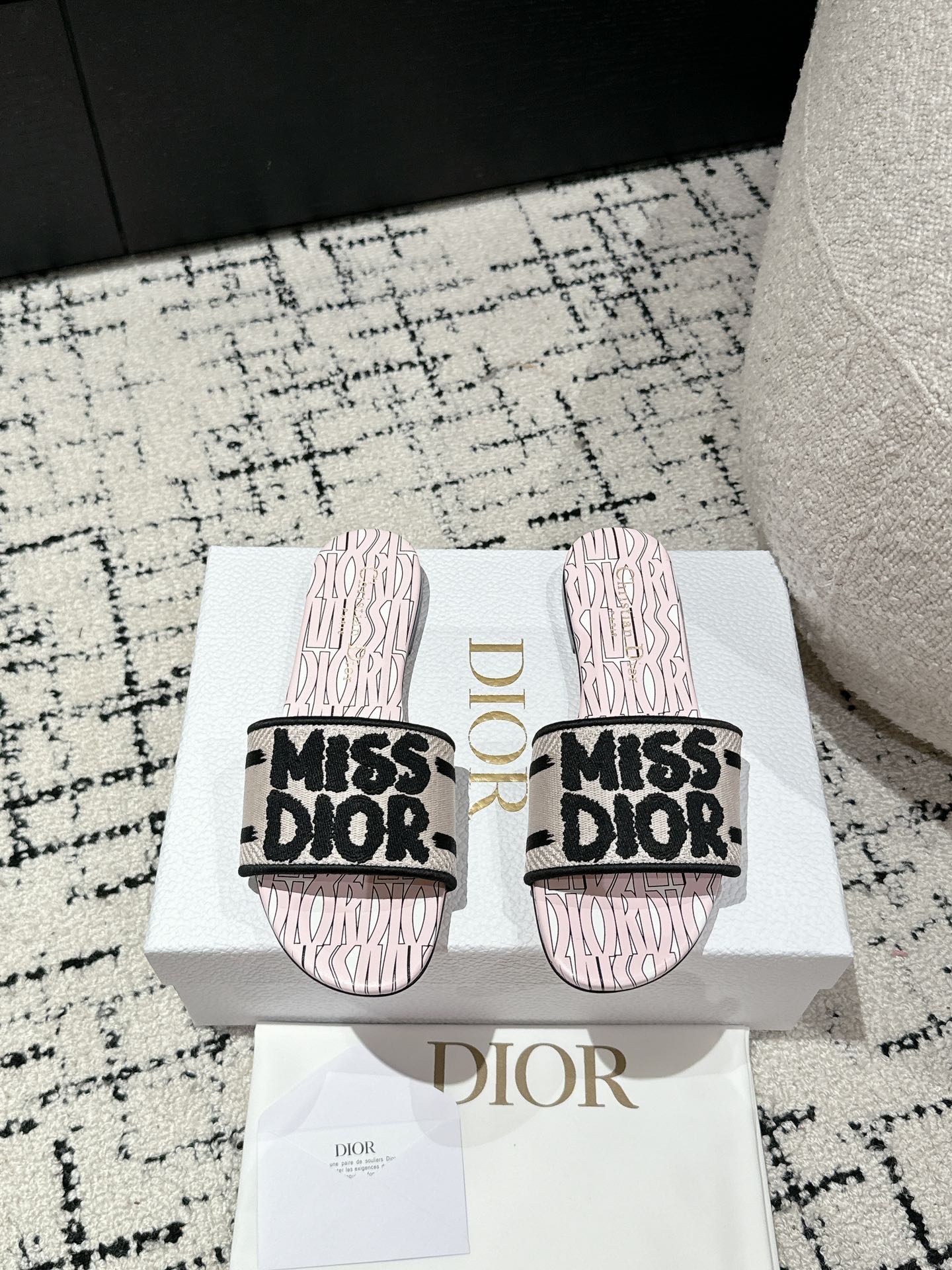 CD Dway Slide Pink Mix Black Embroidered Cotton