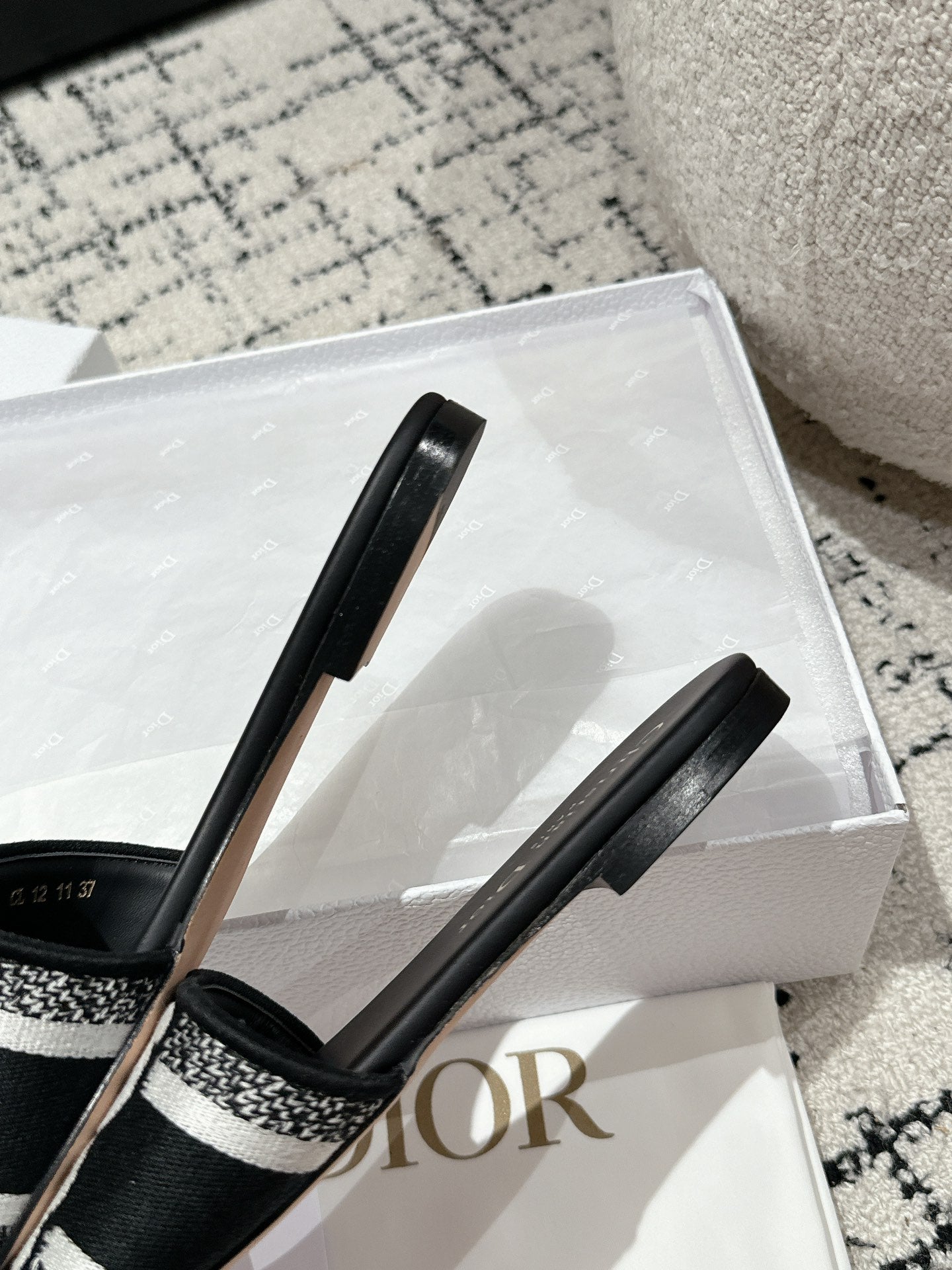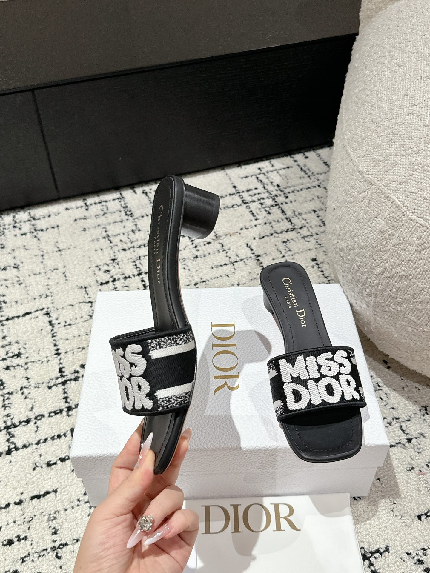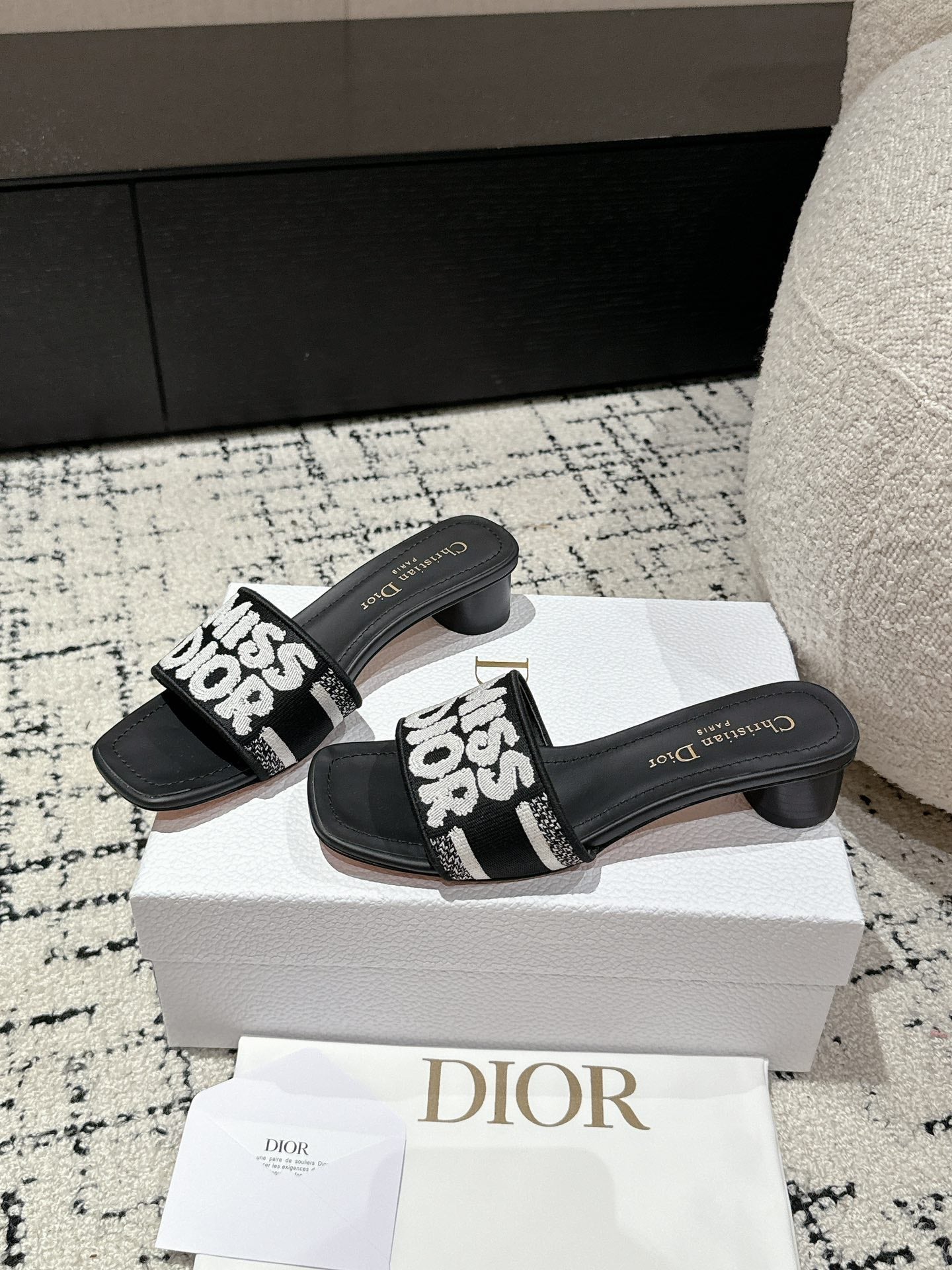 CD Dway Slide Black Mix White Embroidered Cotton