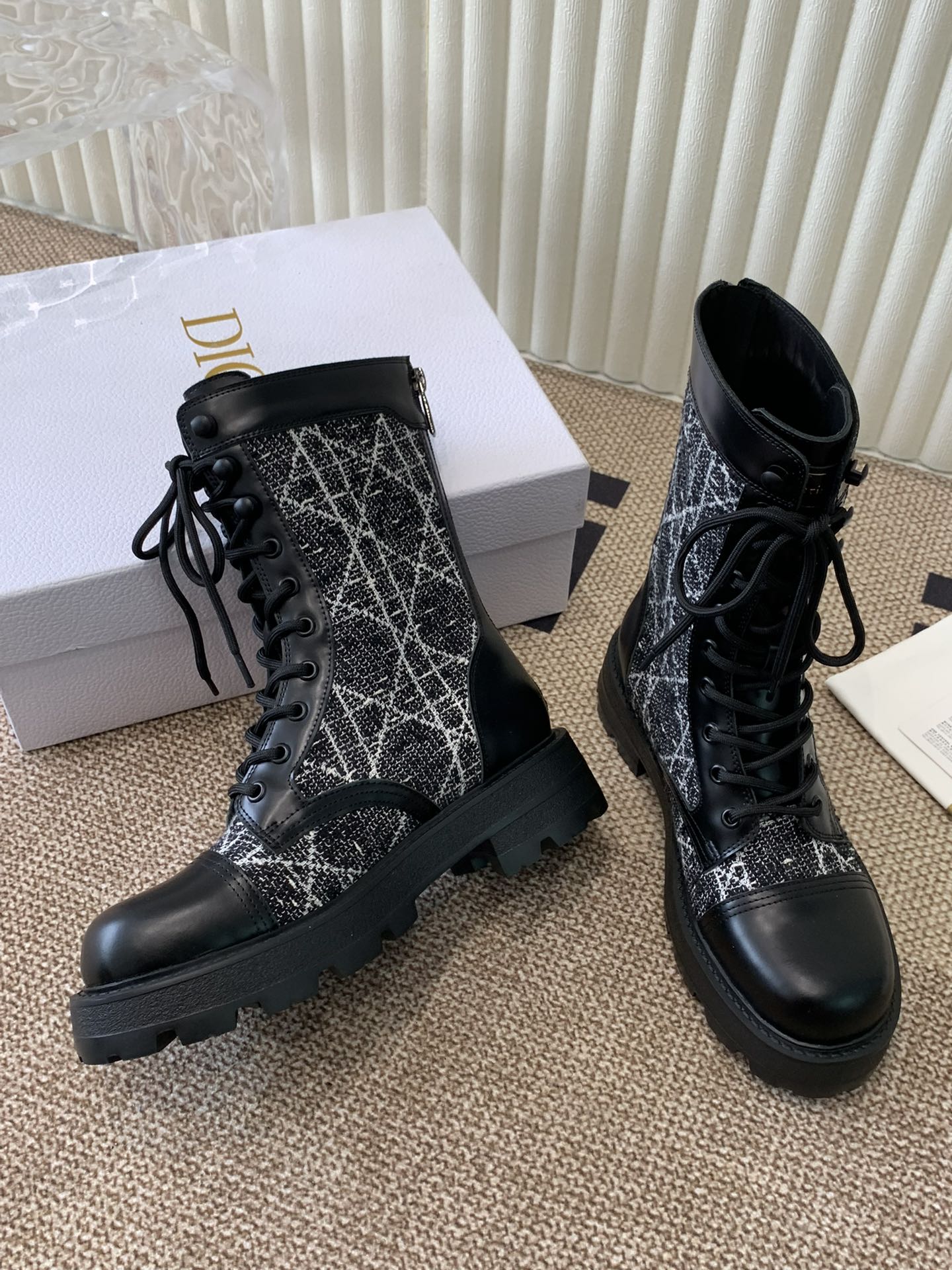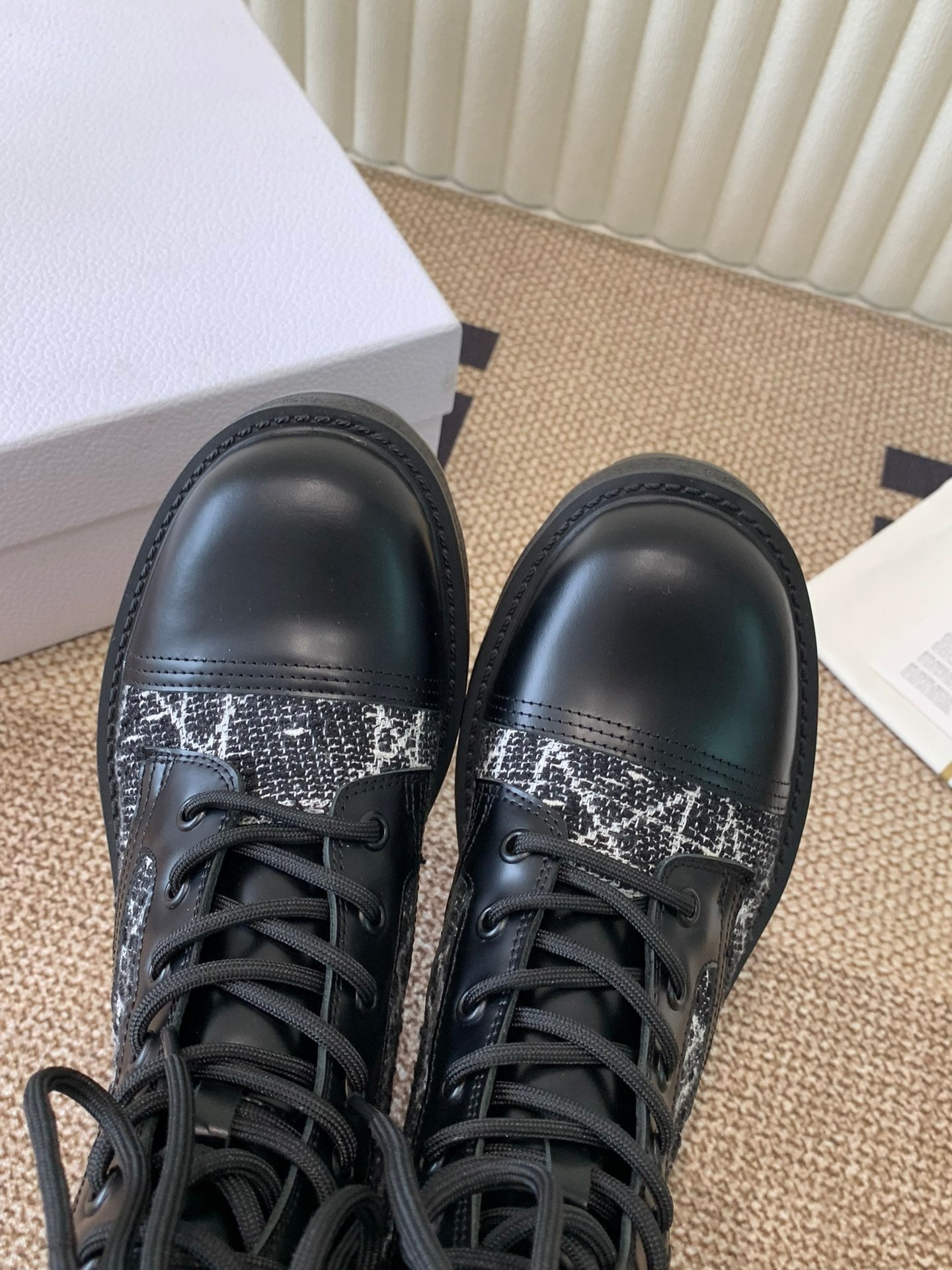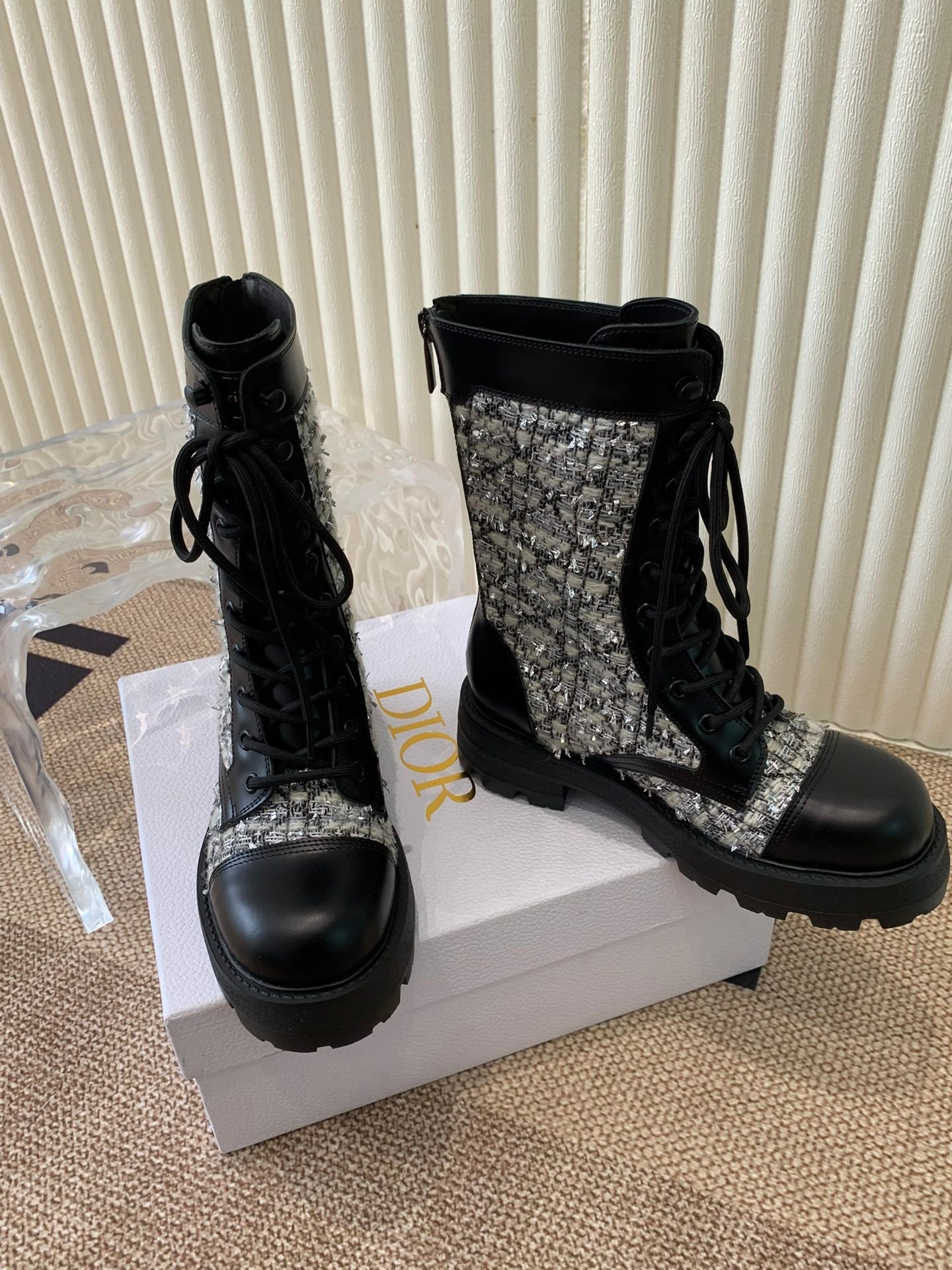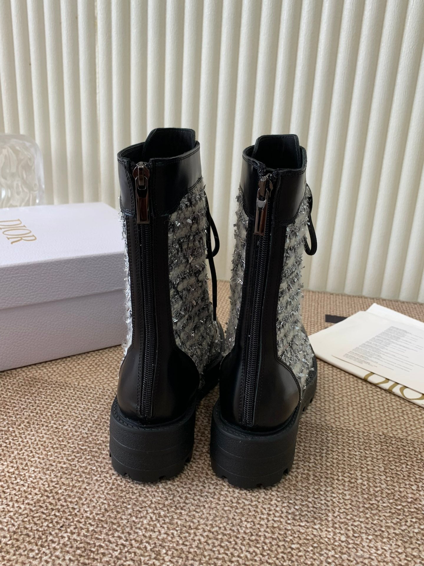 CD D-Unit Ankle Boot In Beige Mix Black Tweed Fabric And Cowhide 113478