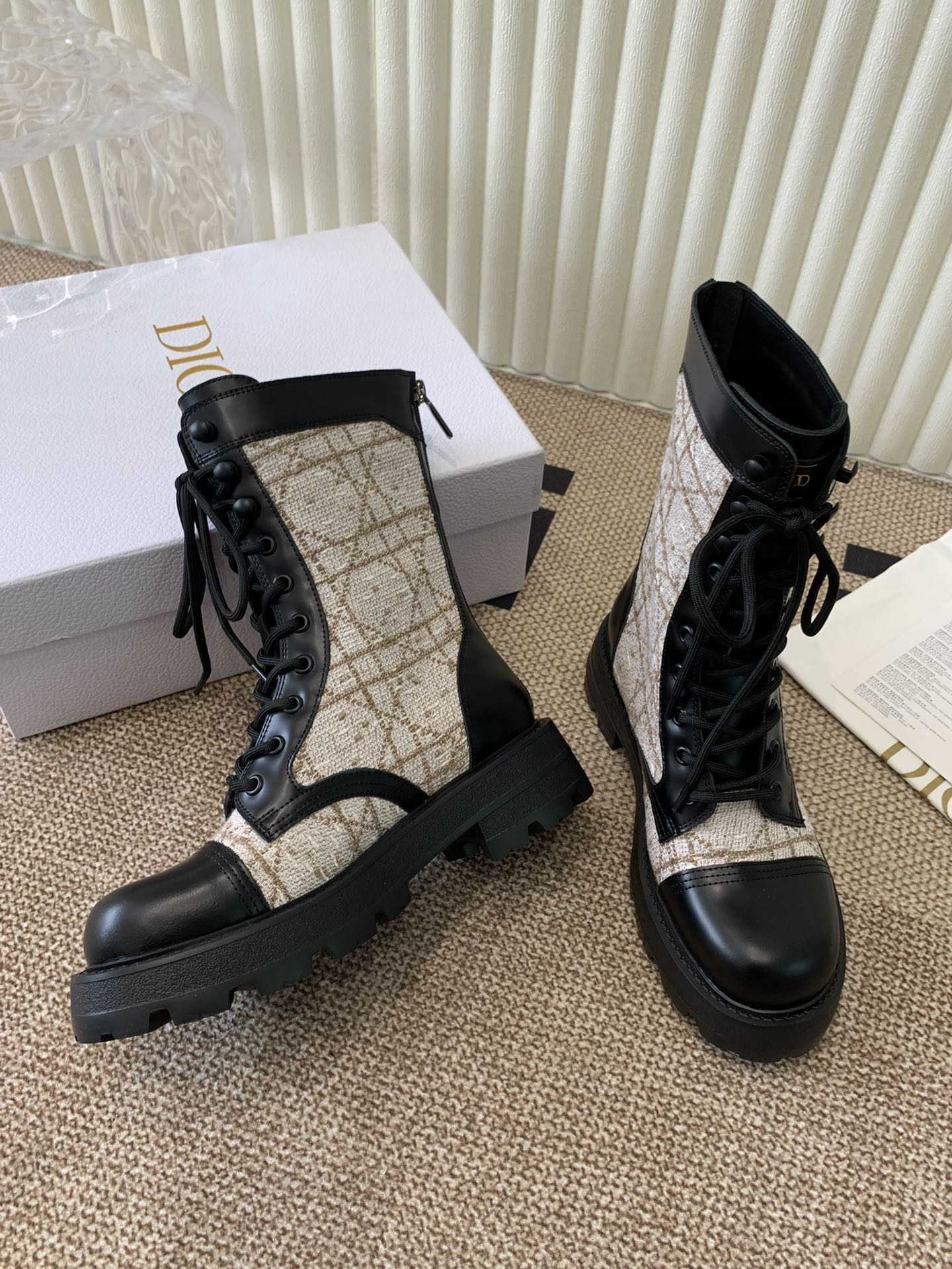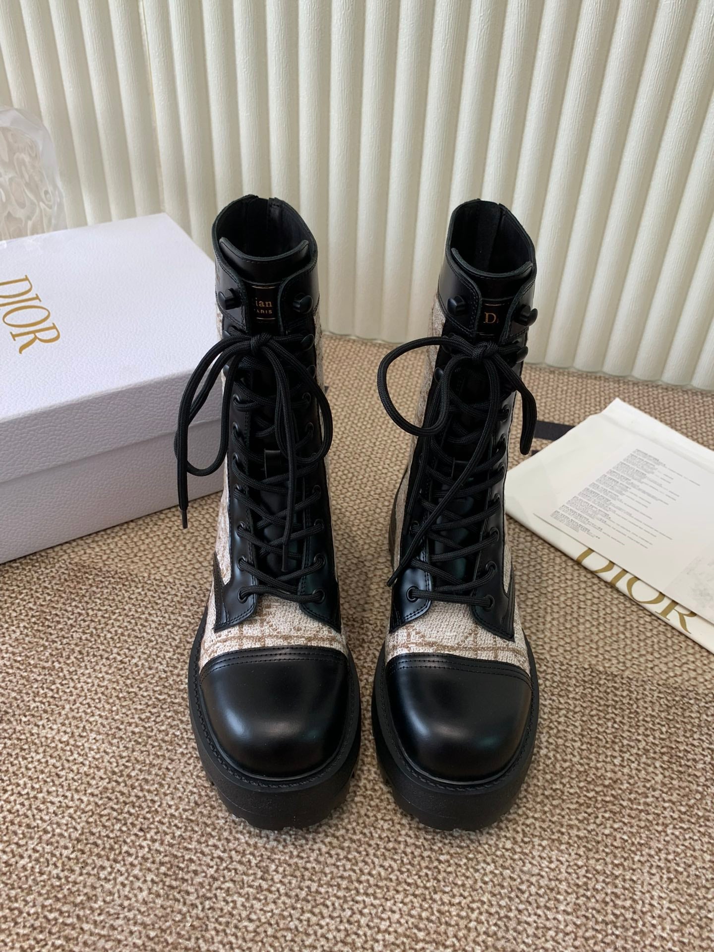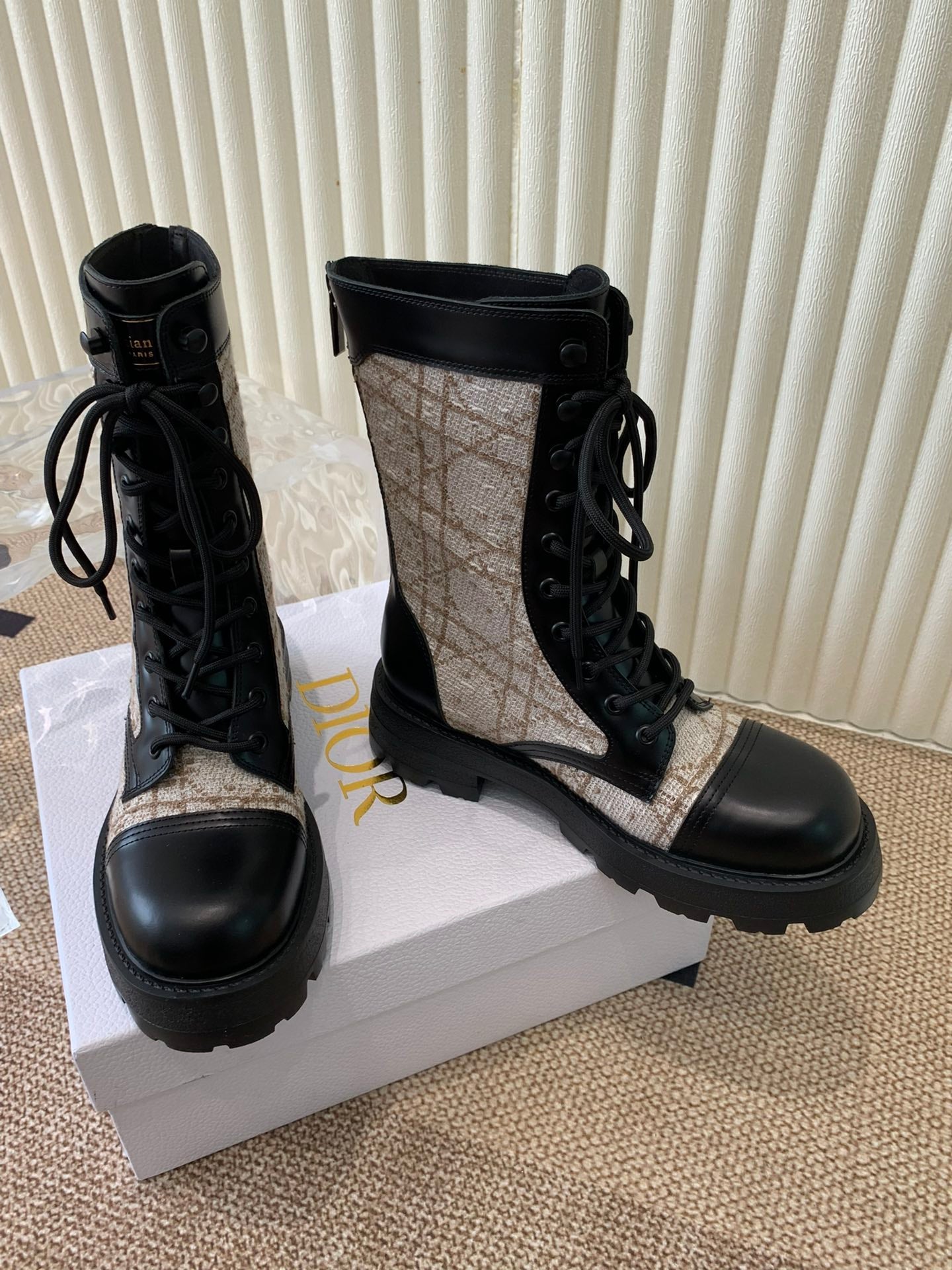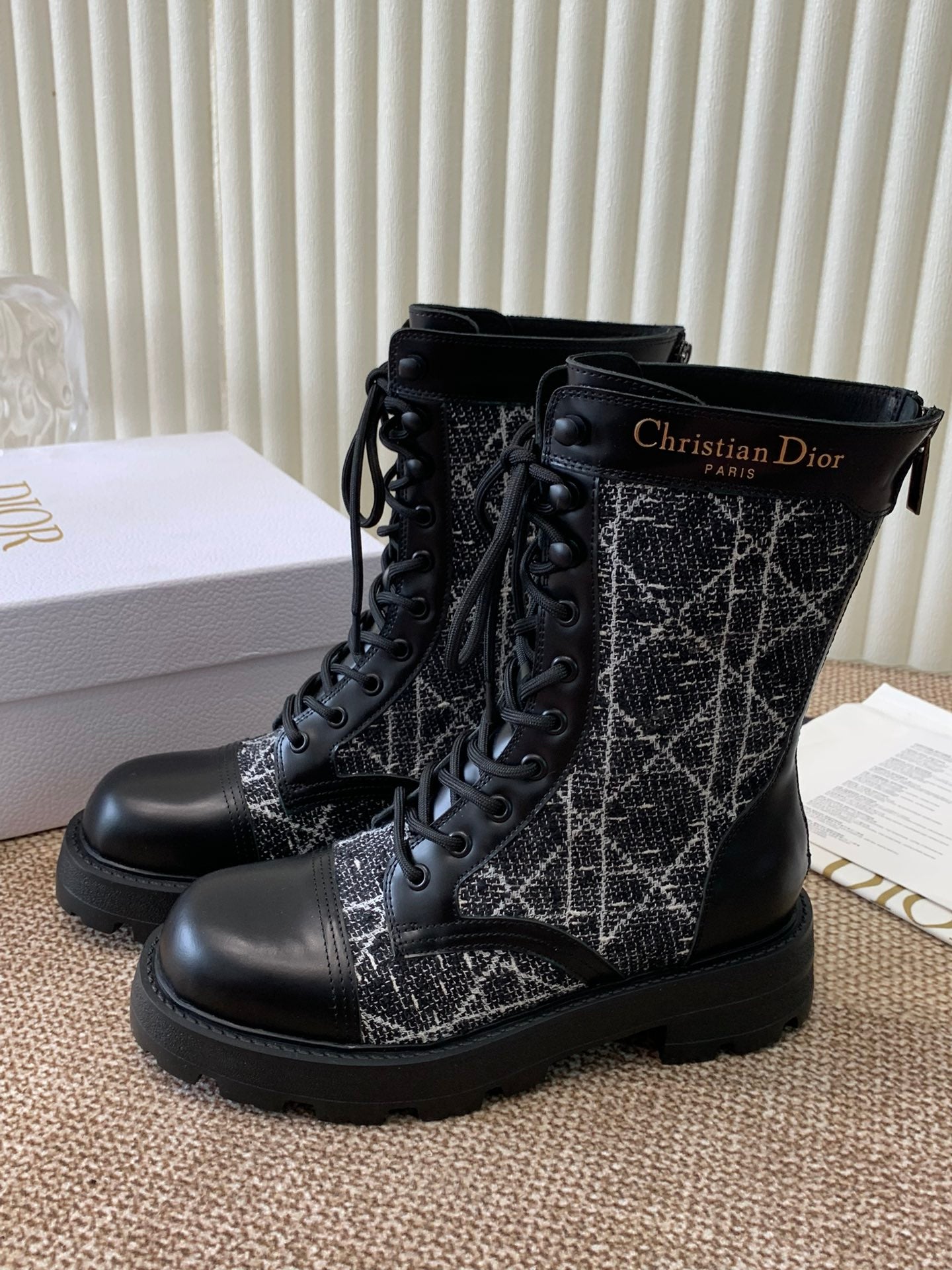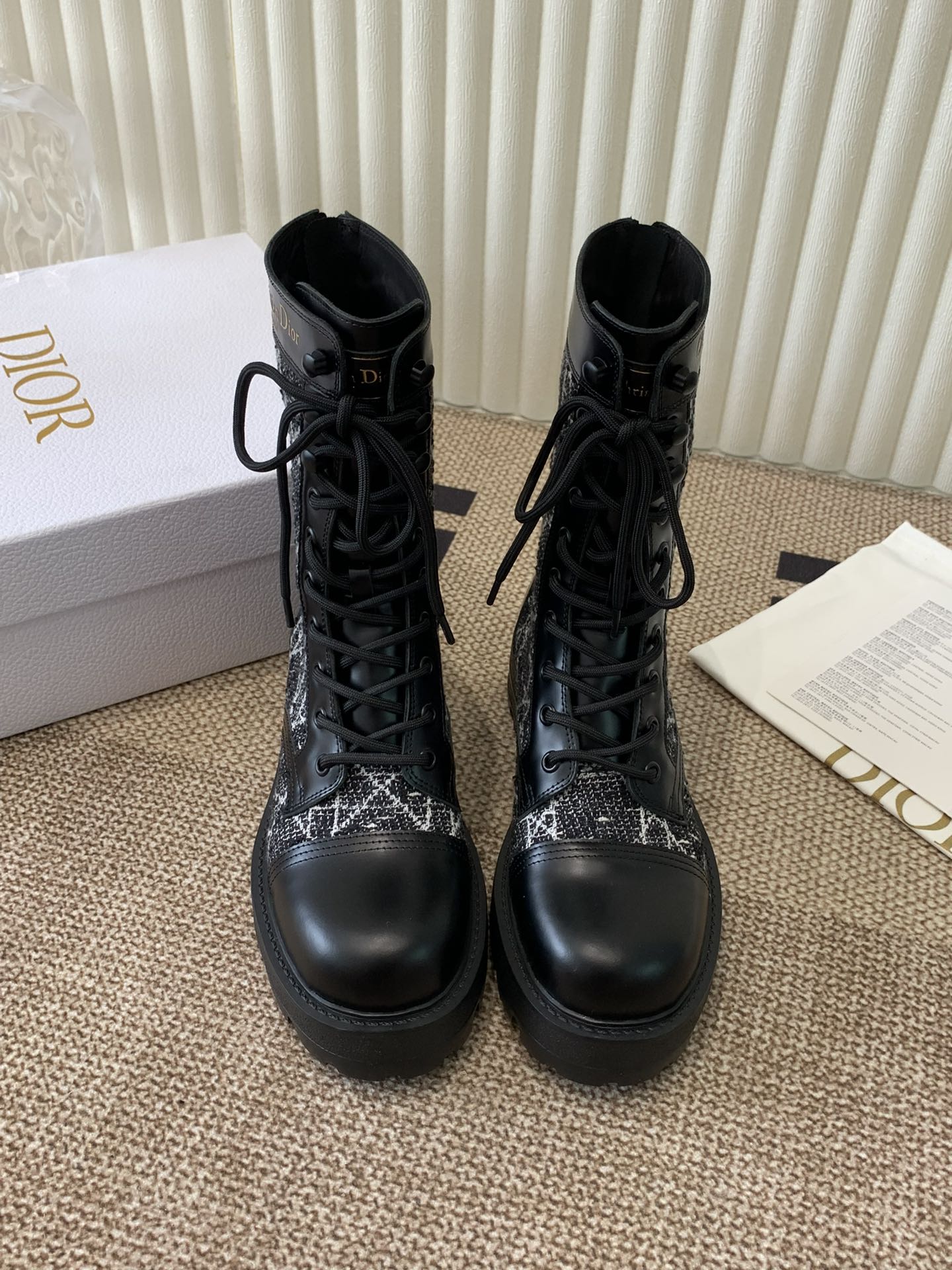 CD D-Unit Ankle Boot In Beige Mix Black Tweed Fabric And Cowhide 113478