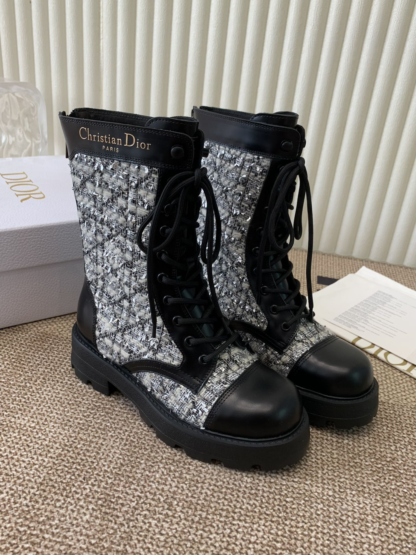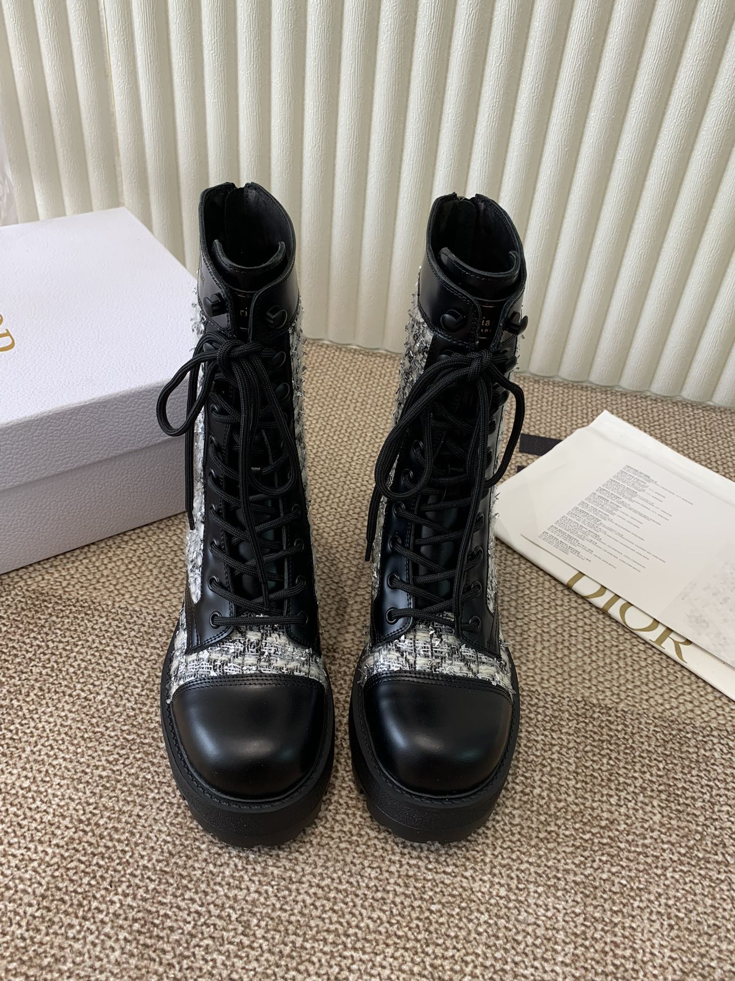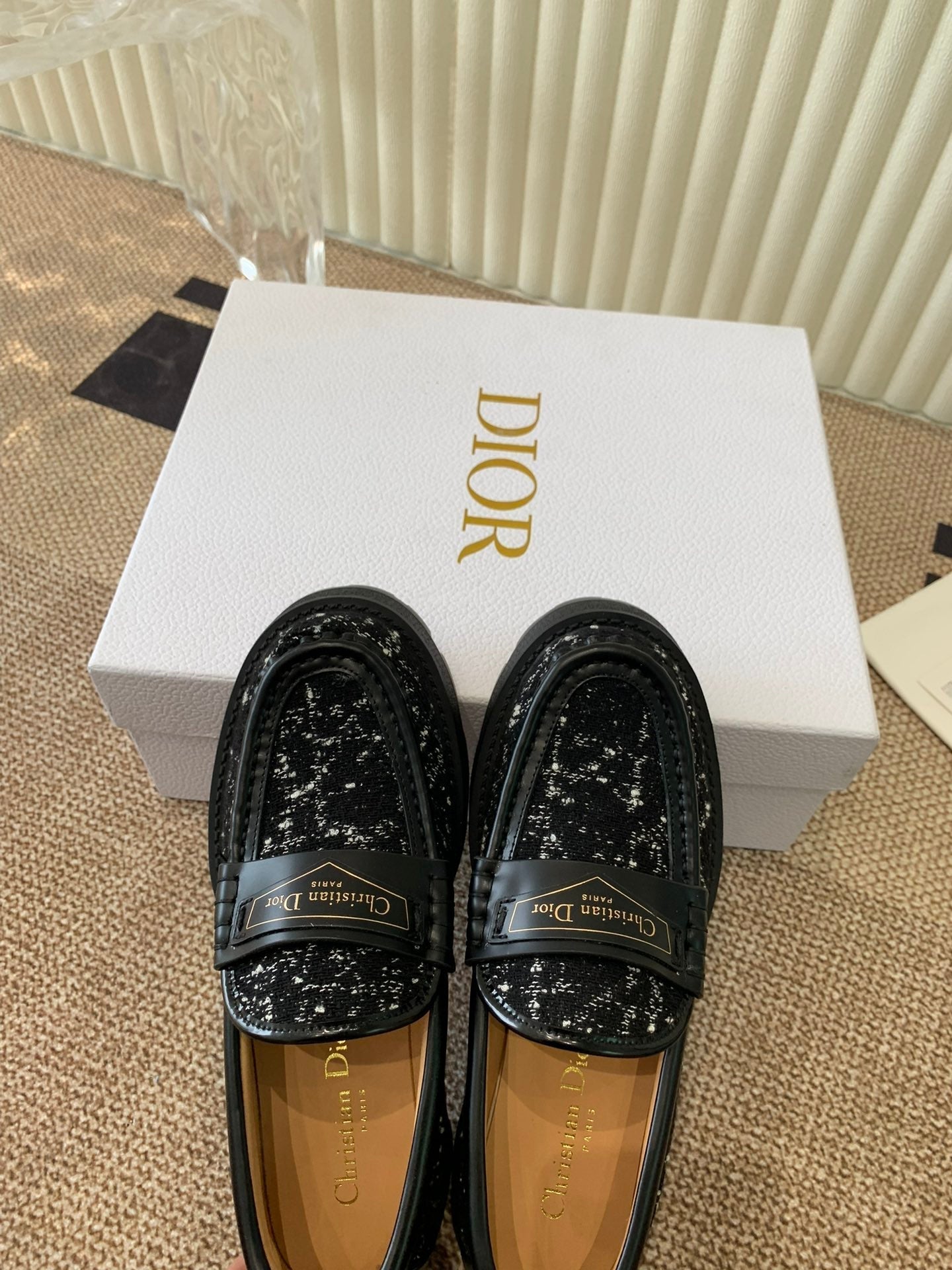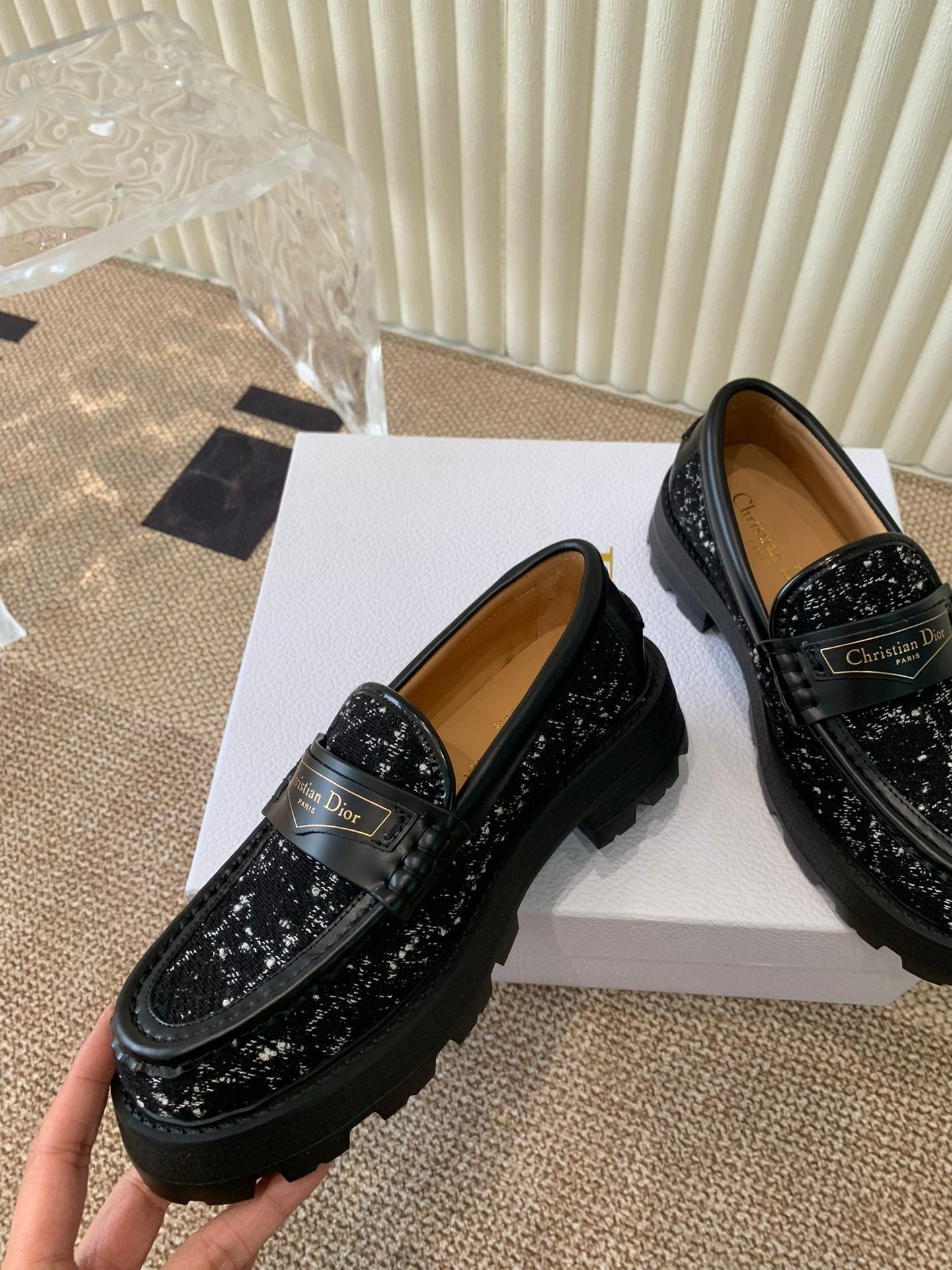 CD Boy Platform Loafer In Black Mix White Tweed Fabric And Cowhide 113485