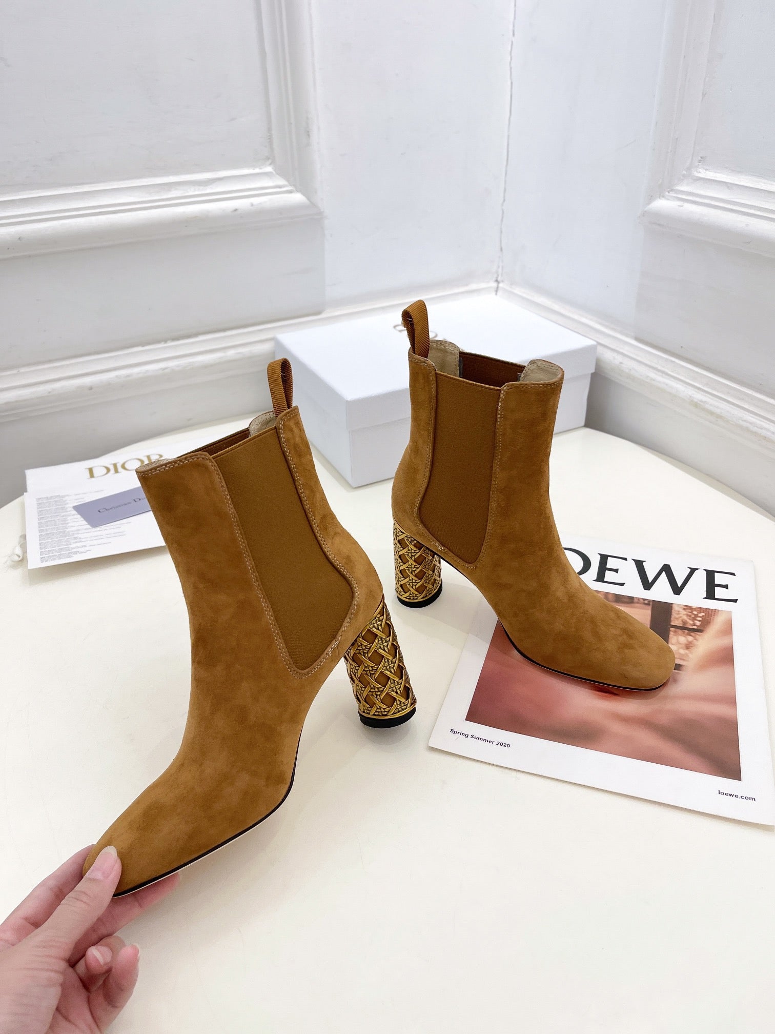 CD Icon Heeled Ankle Boot 80mm Brown Orange Suede