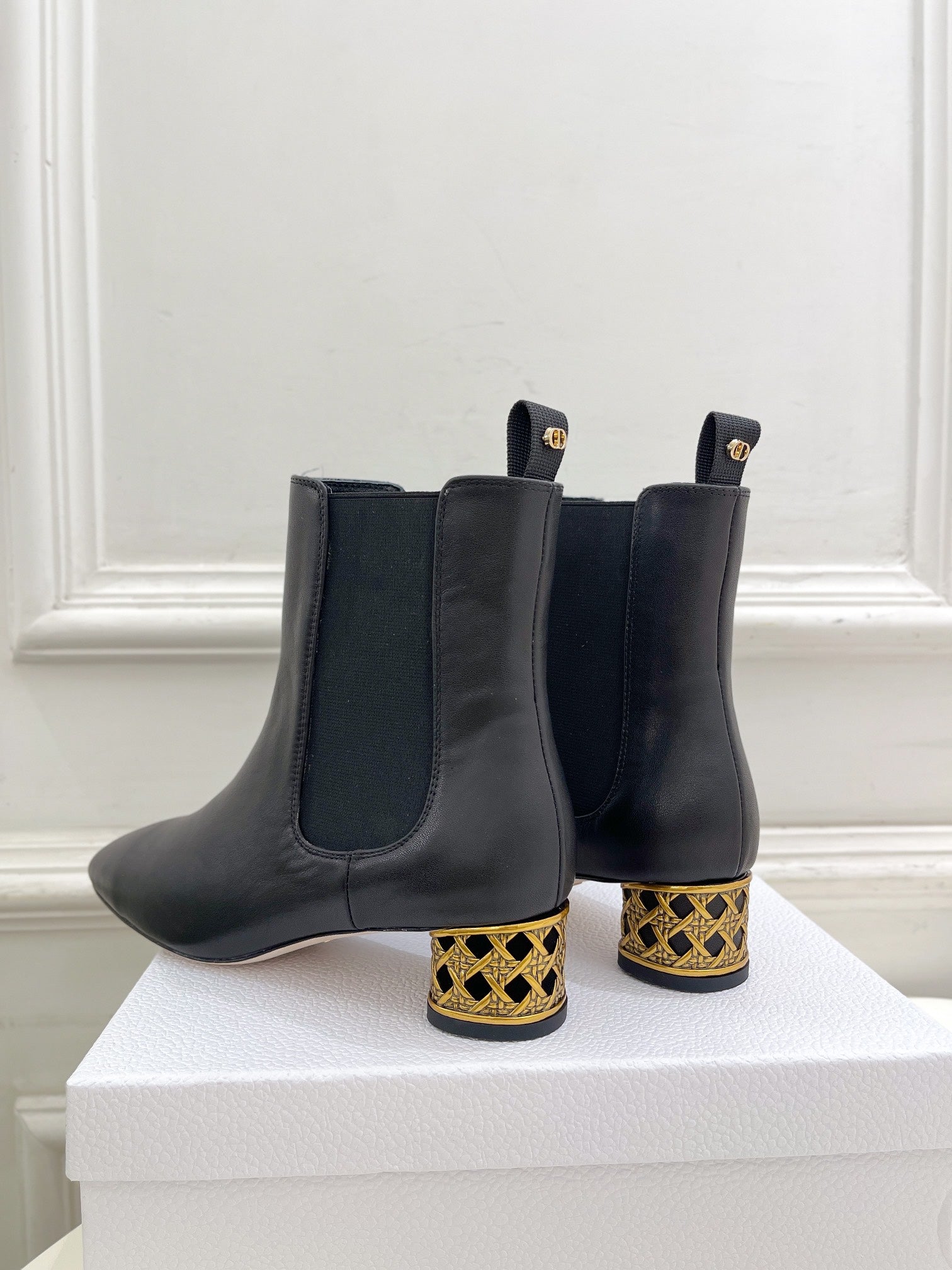 CD Icon Heeled Ankle Boot 80mm In Glossy Black Cowhide 111384