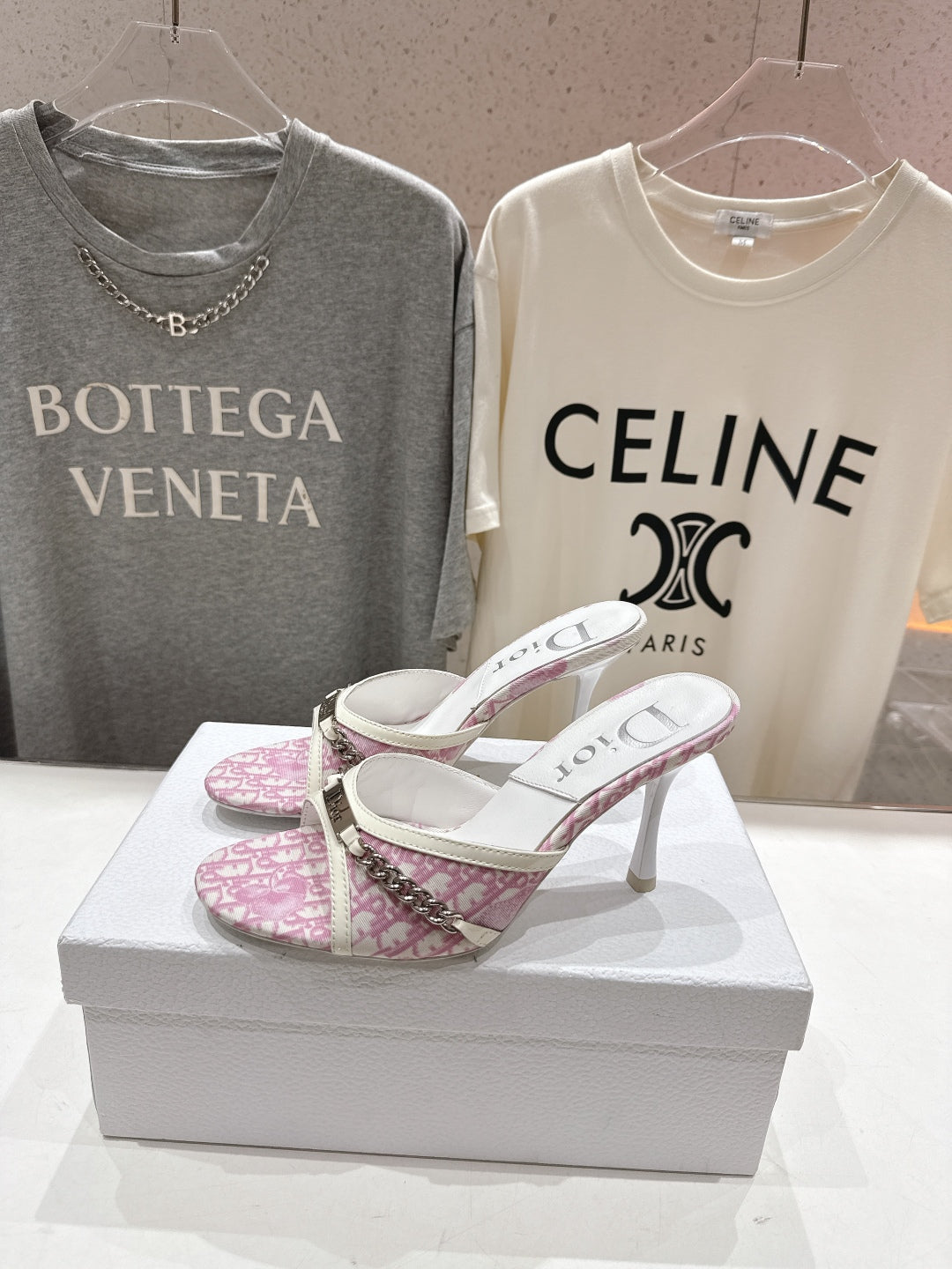 Dior Sandal Pink mix White Canvas Sheepskin 174103