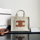 SMALL CABAS THAIS 25.5 CREAM STRIPED FABRIC TRIOMPHE CALFSKIN
