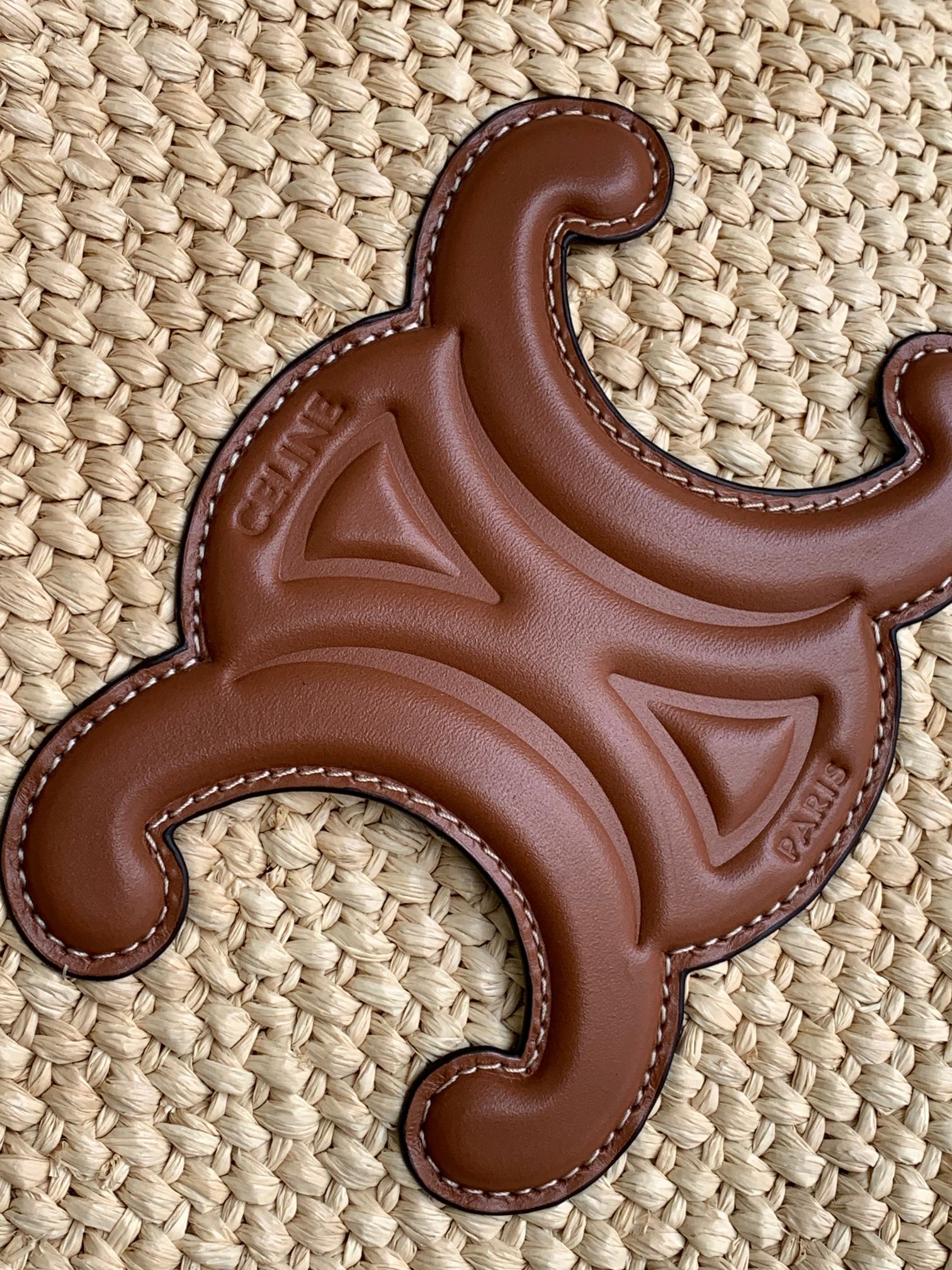 teen triomphe straw bucket bag 23cm raffia brown calfskin
