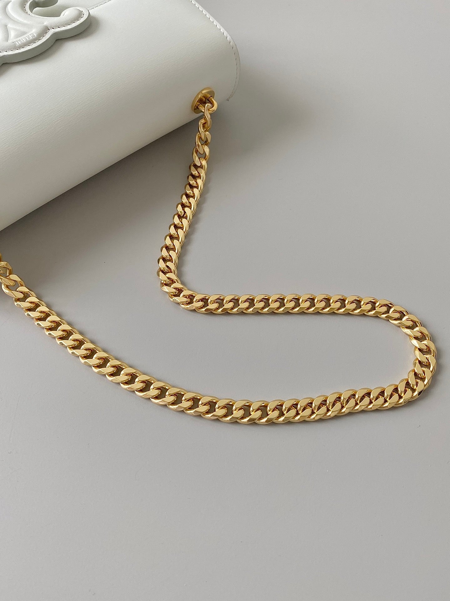DENIM LEATHER 24 CHAIN SHOUDER BAG