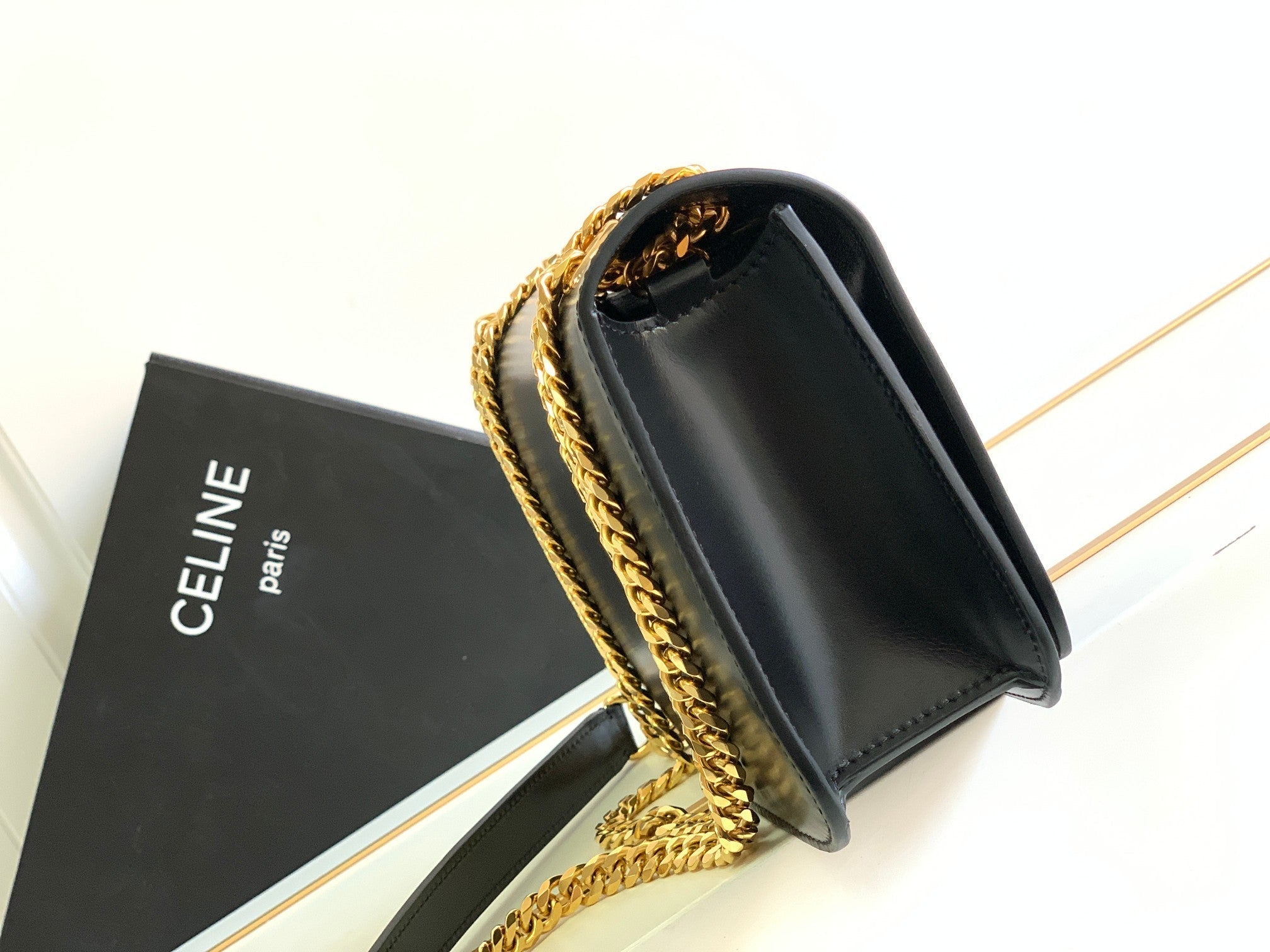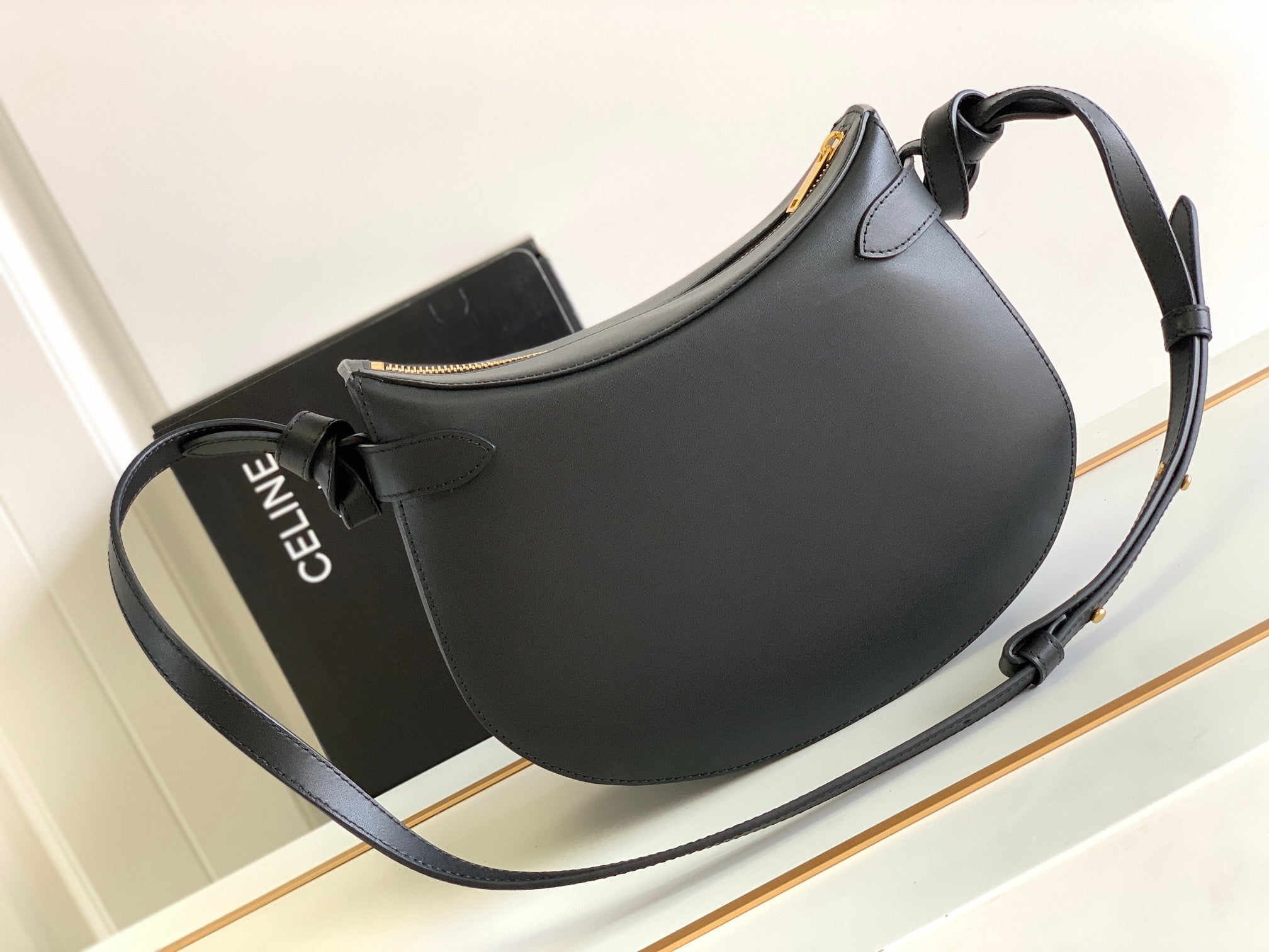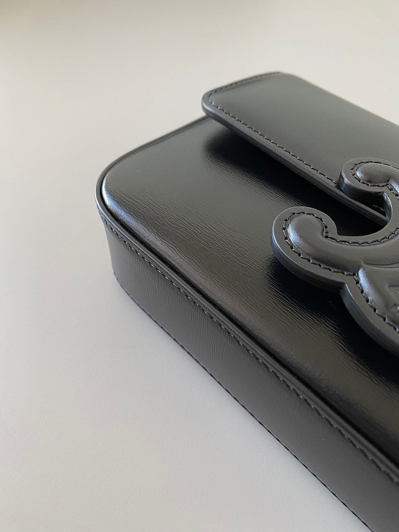 BESACE TRIPHOME 24 BLACK GLOSSY CALFSKIN