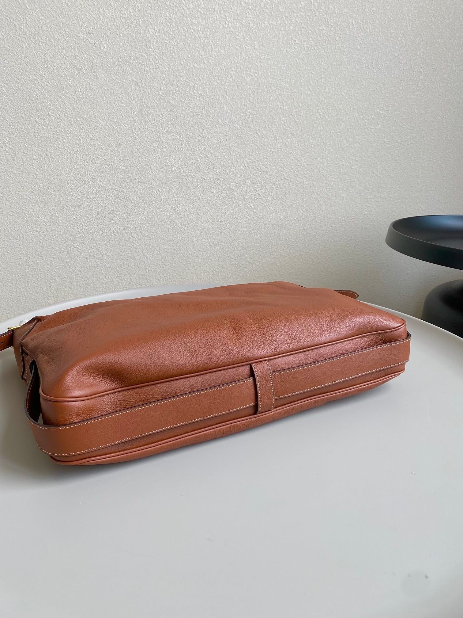 SMOOTH CALFSKIN 20 OVAL CINNAMON BROWN BAG