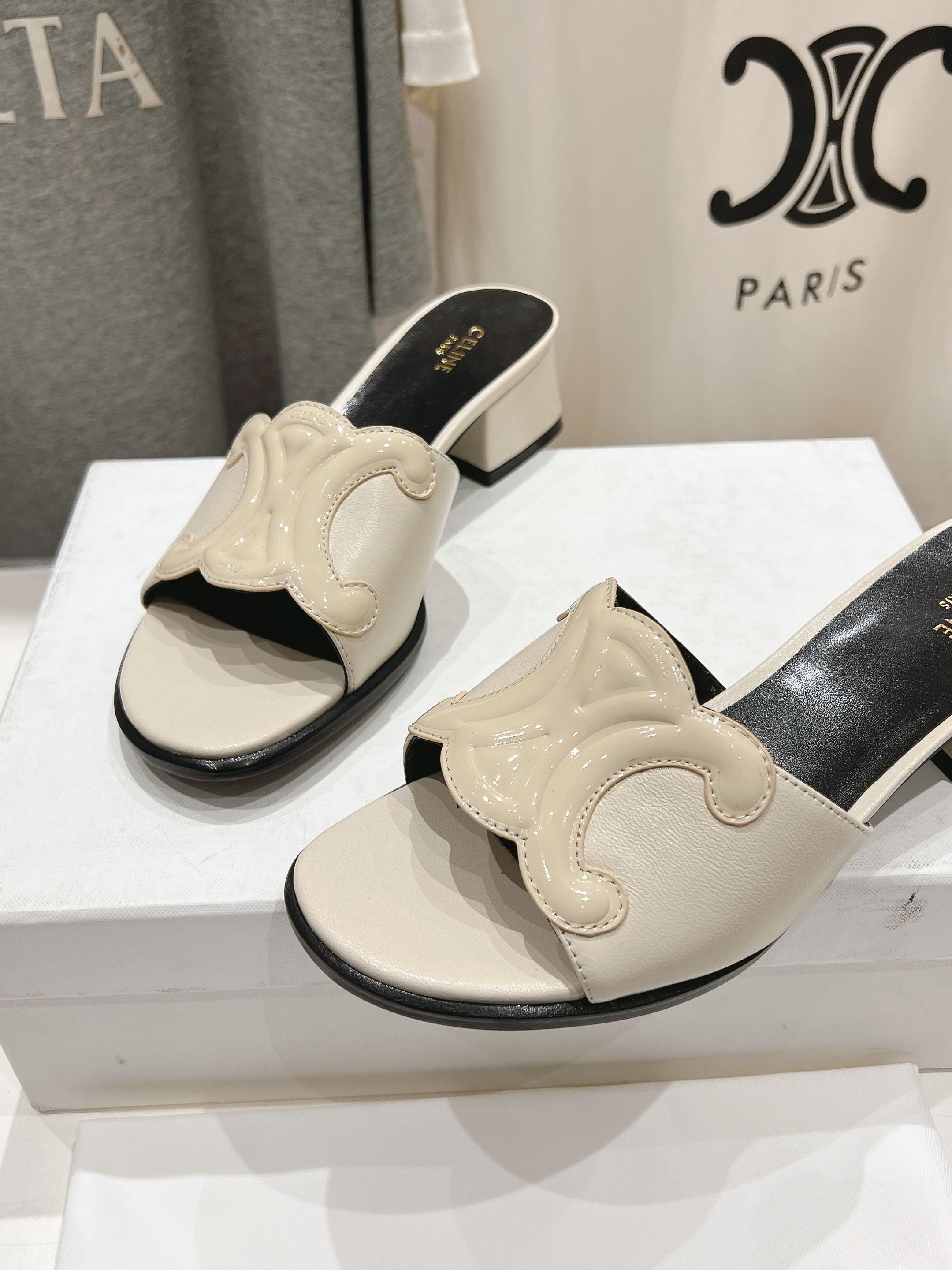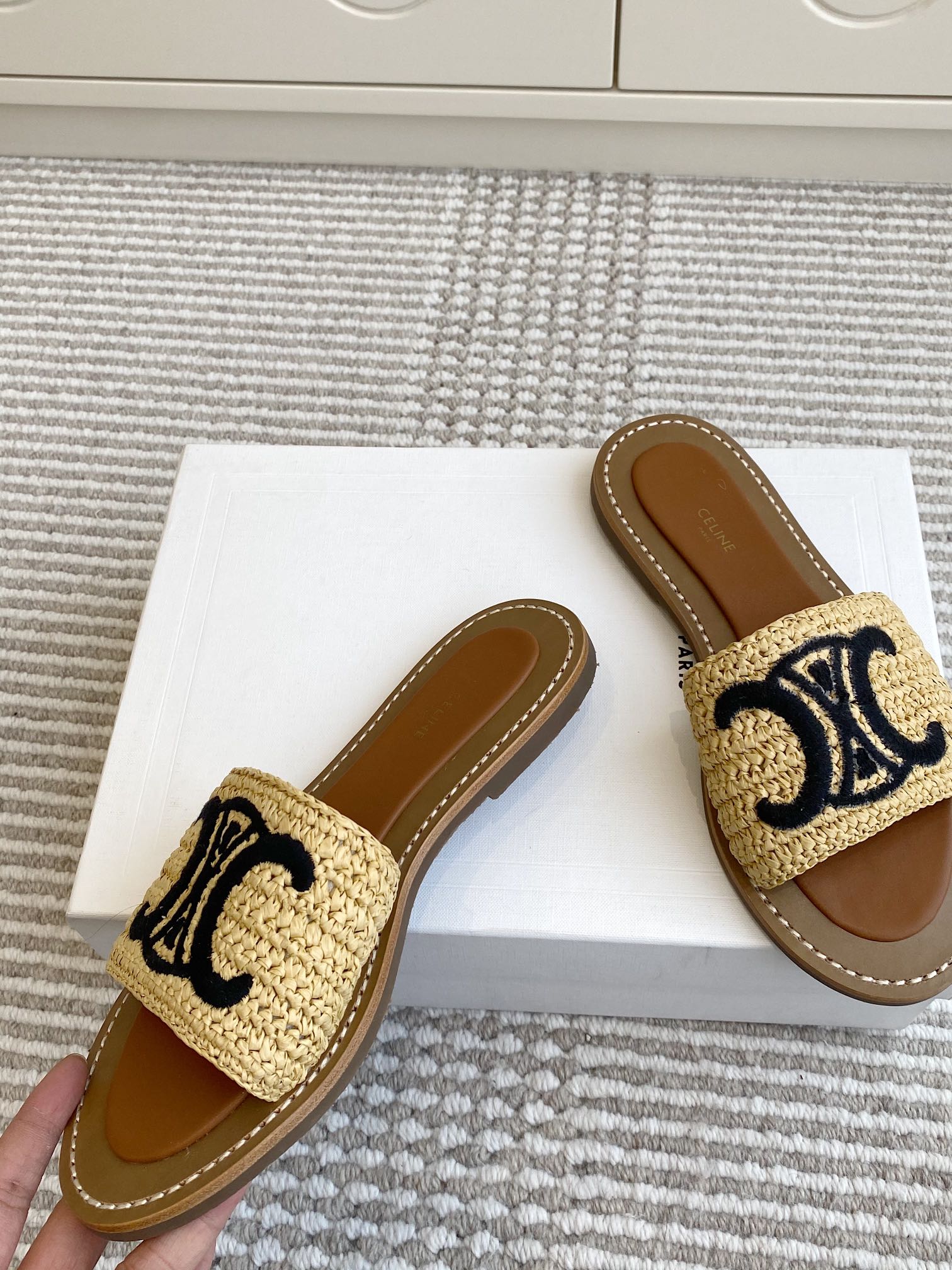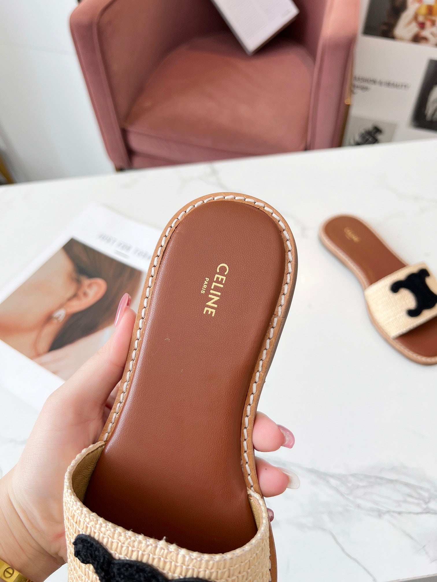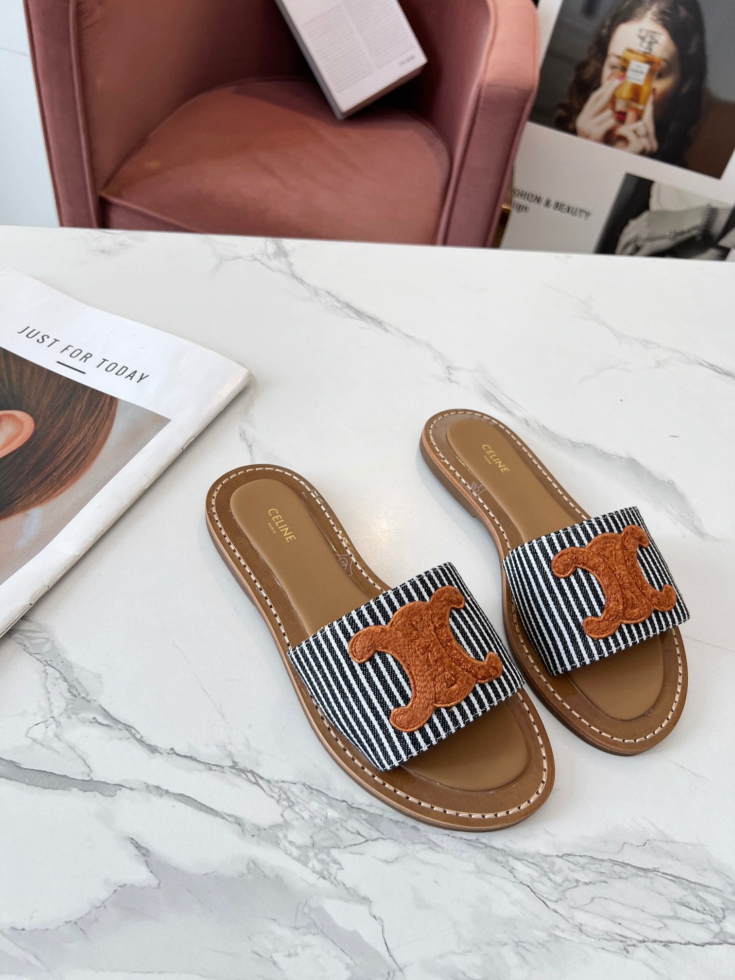 Celine 25C Slippers Beige Fabric with Calfskin 238154