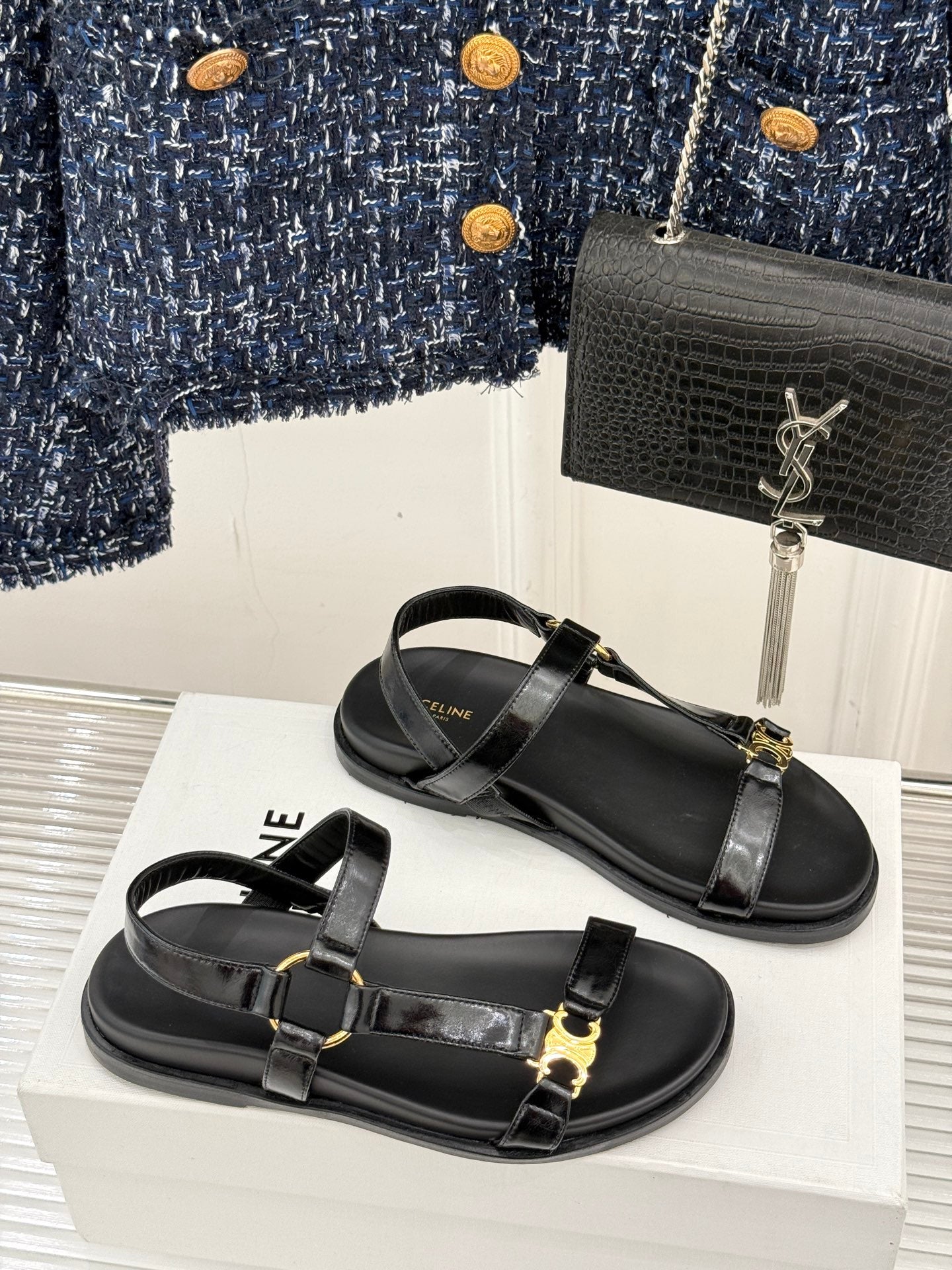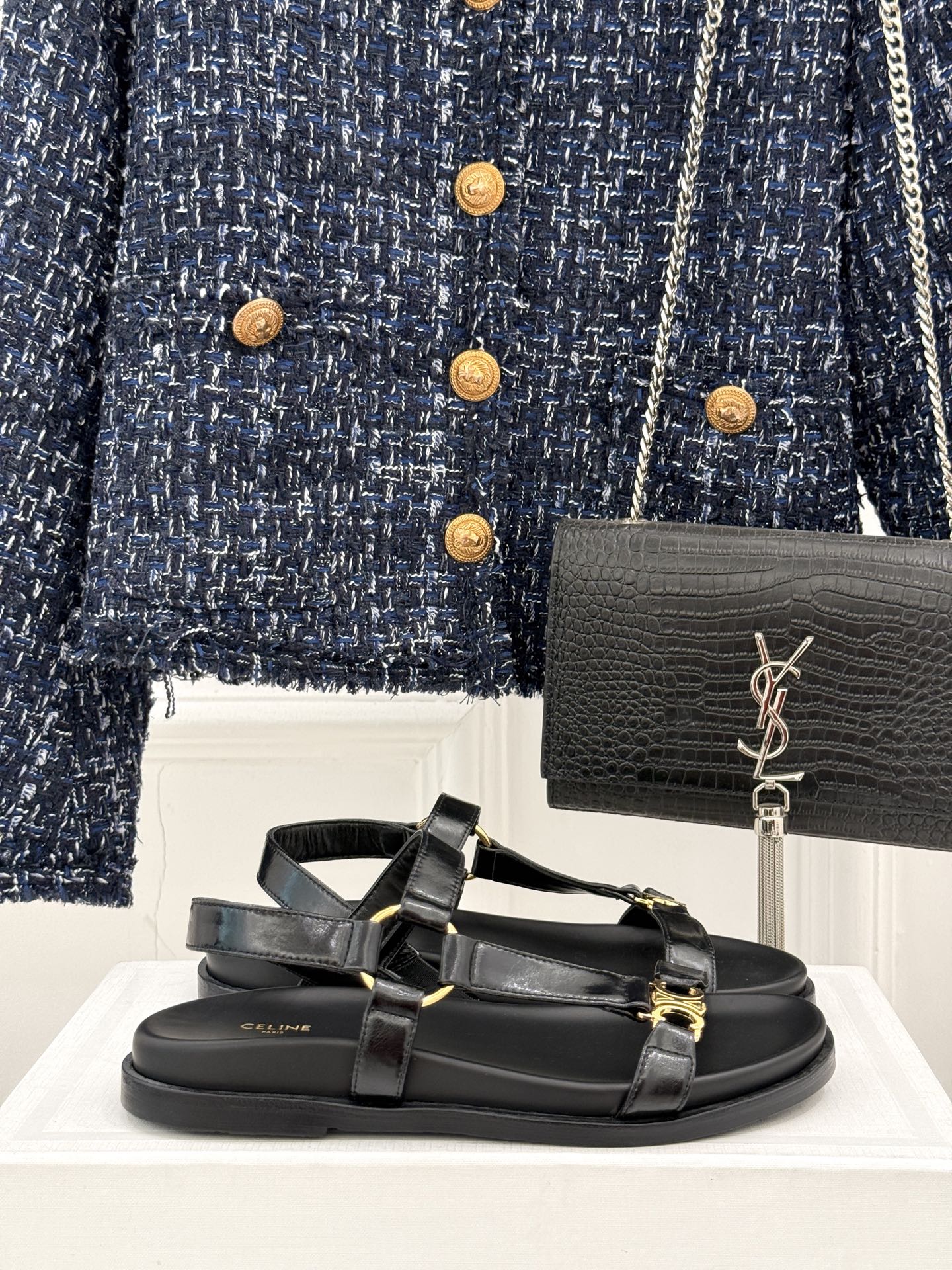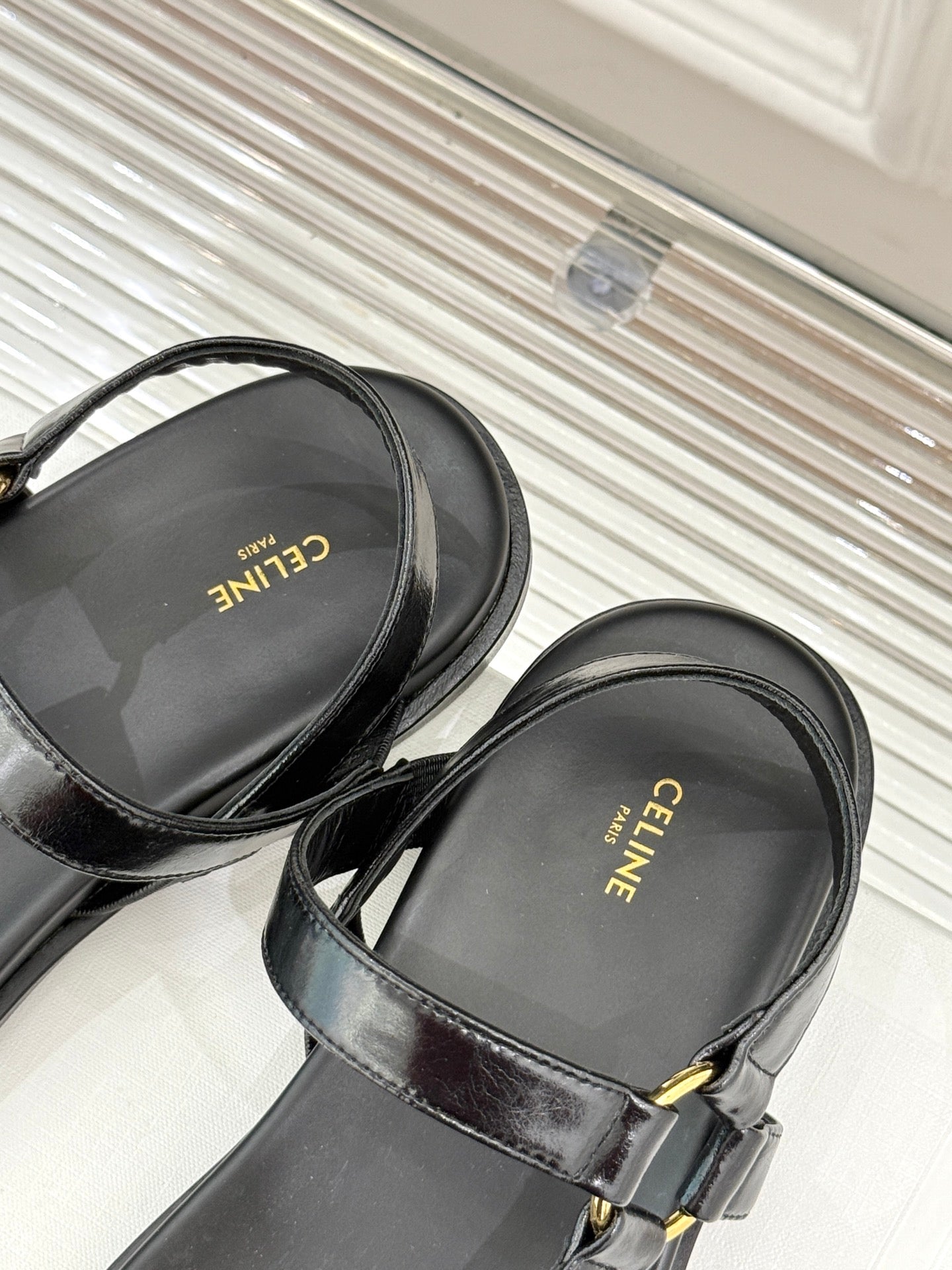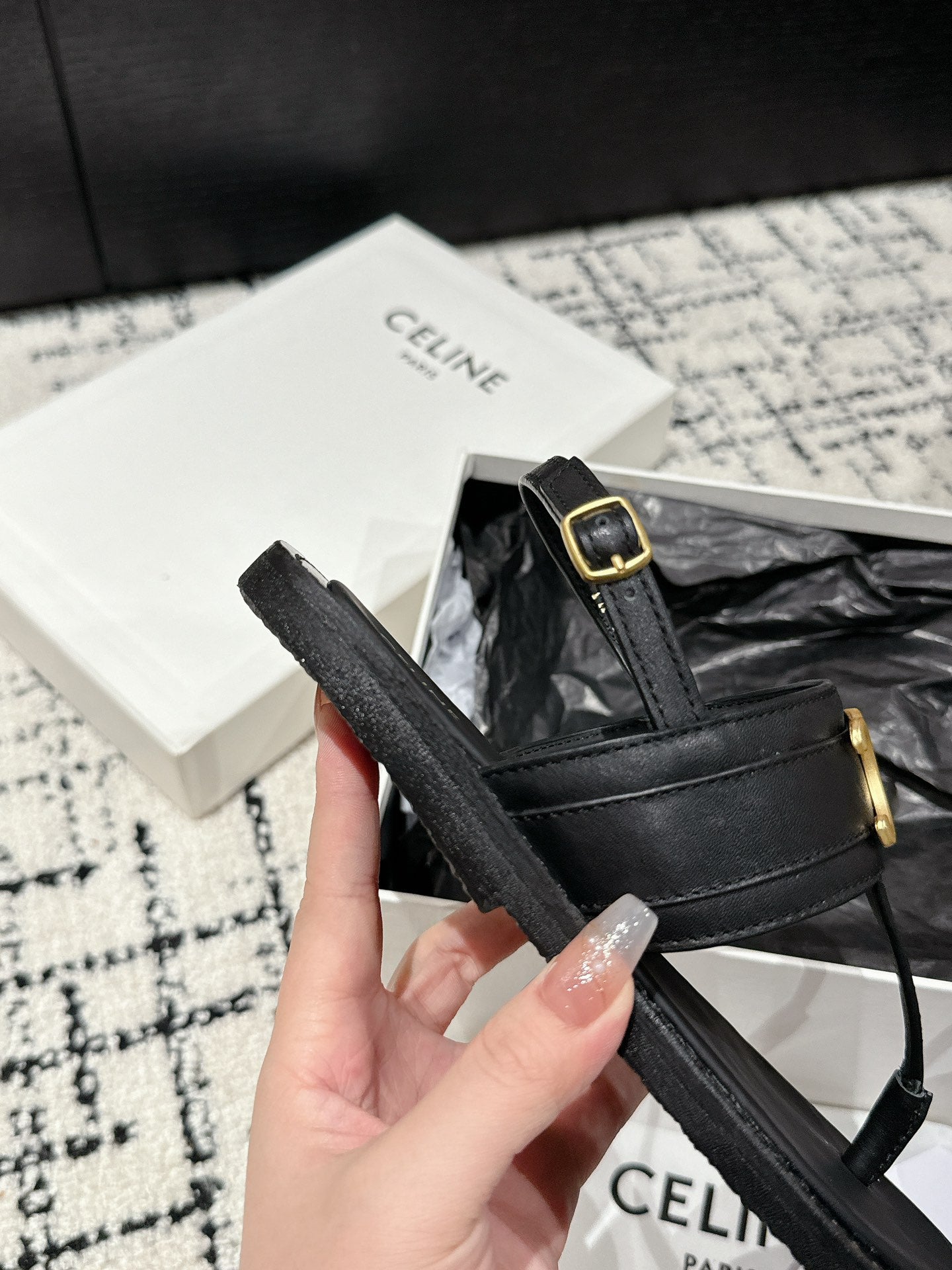 CELINE 25 Sline Sandal Black Sheepskin 285910